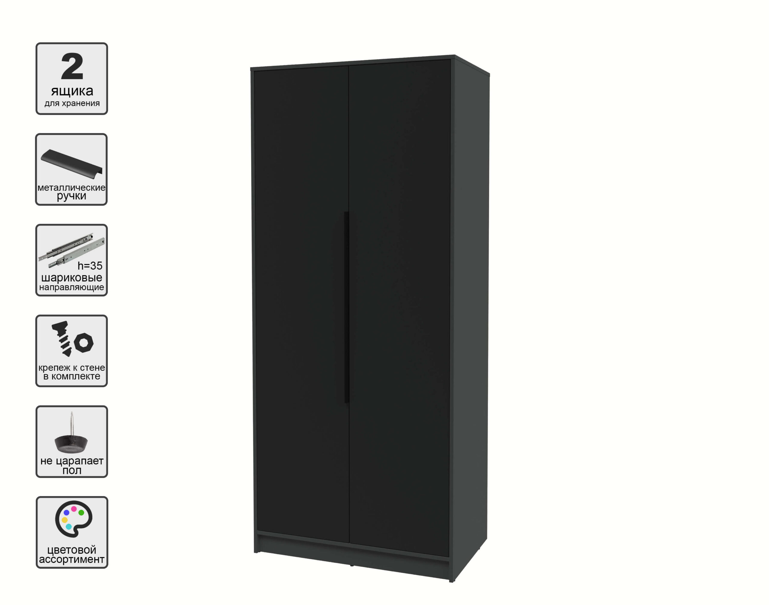 ШКАФ РАСПАШНОЙ КТ-Ш2 (АНТРАЦИТ ЛДСП/ ЧЕРНЫЙ ЛДСП) Ш918 В2128 Г547 - Yuta.by