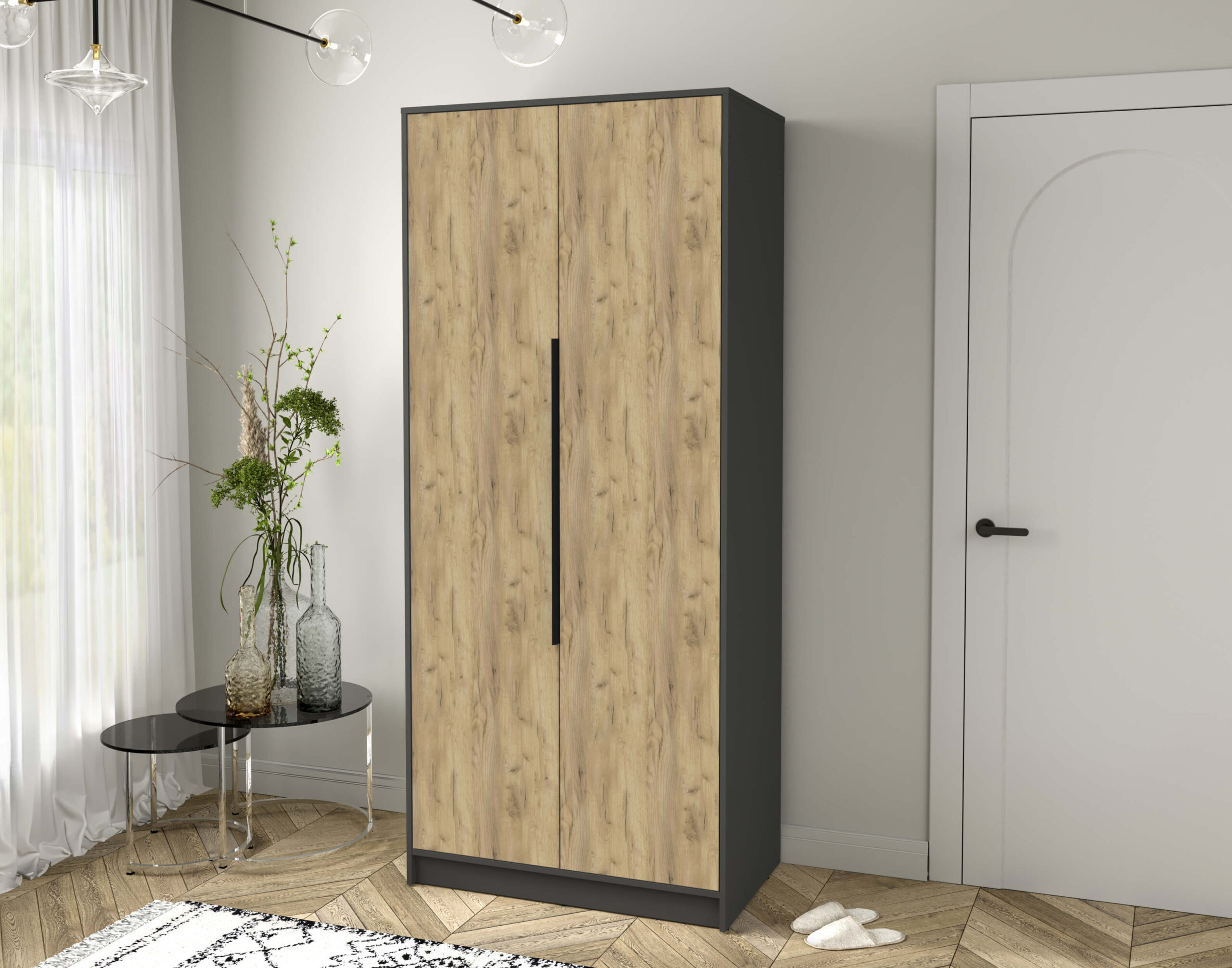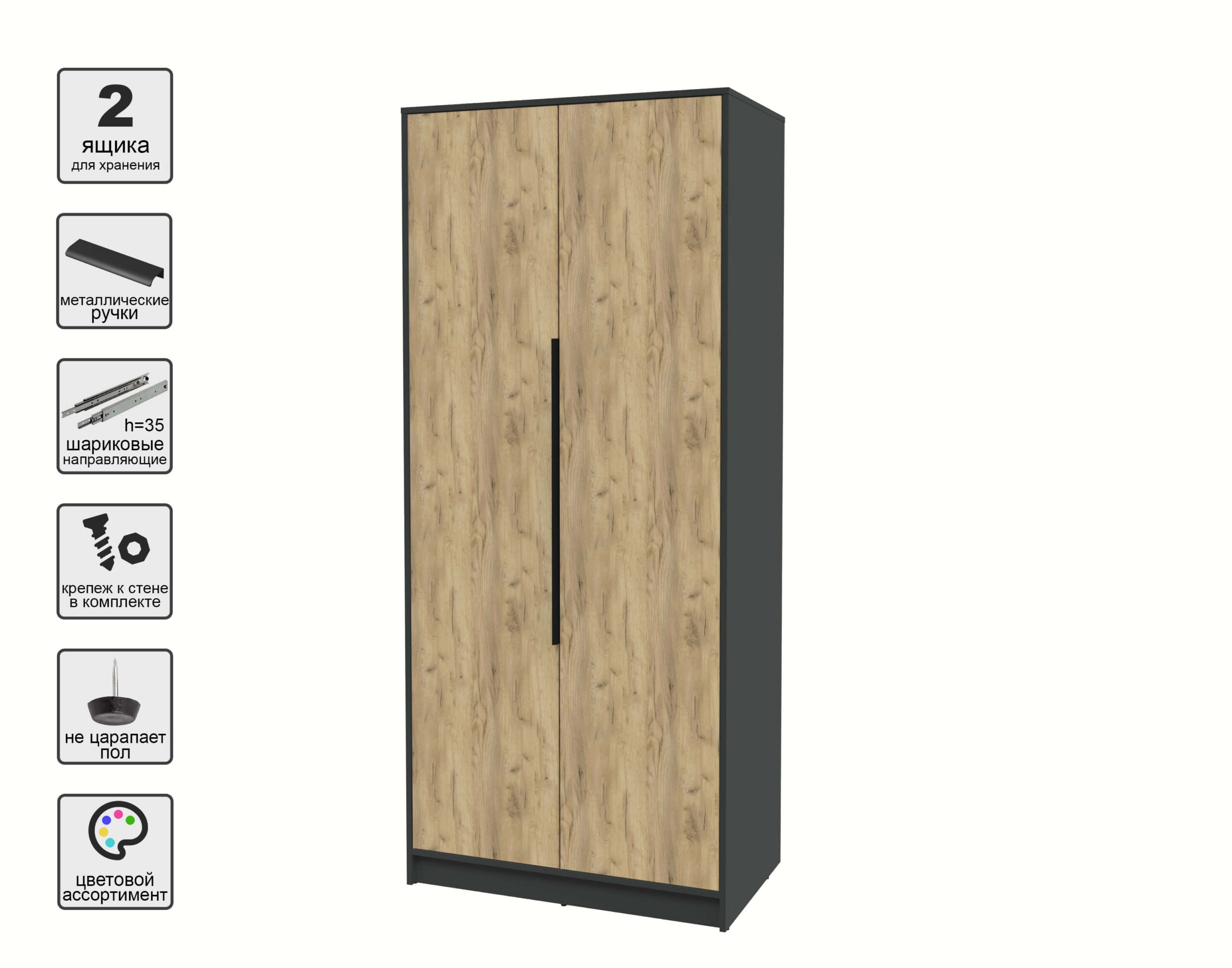 ШКАФ РАСПАШНОЙ КТ-Ш2 (АНТРАЦИТ ЛДСП/ ДУБ ЗОЛОТОЙ ЛДСП) Ш918 В2128 Г547 - Yuta.by