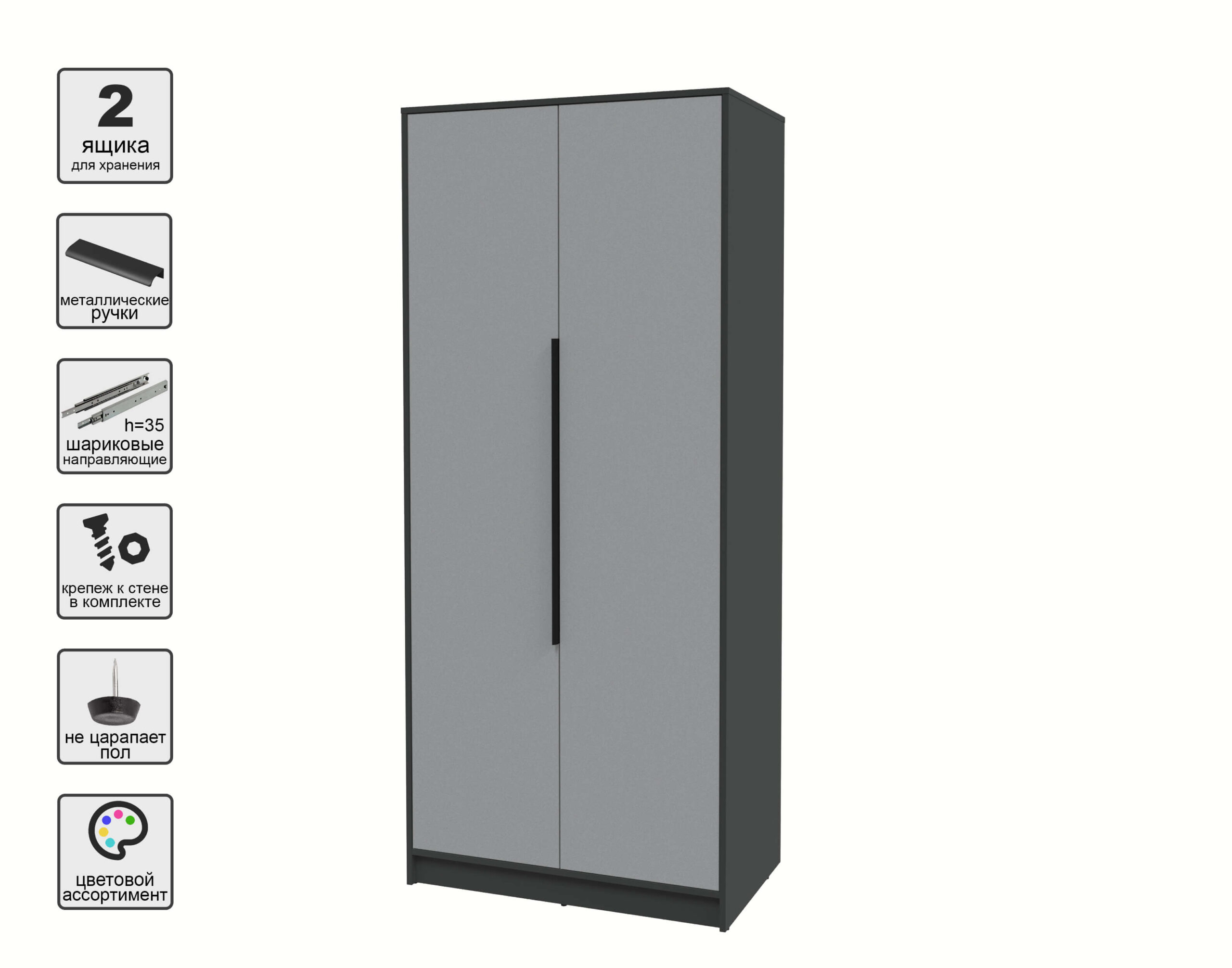 ШКАФ РАСПАШНОЙ КТ-Ш2 (АНТРАЦИТ ЛДСП/ СЕРЕБРО ЛДСП) Ш918 В2128 Г547 - Yuta.by
