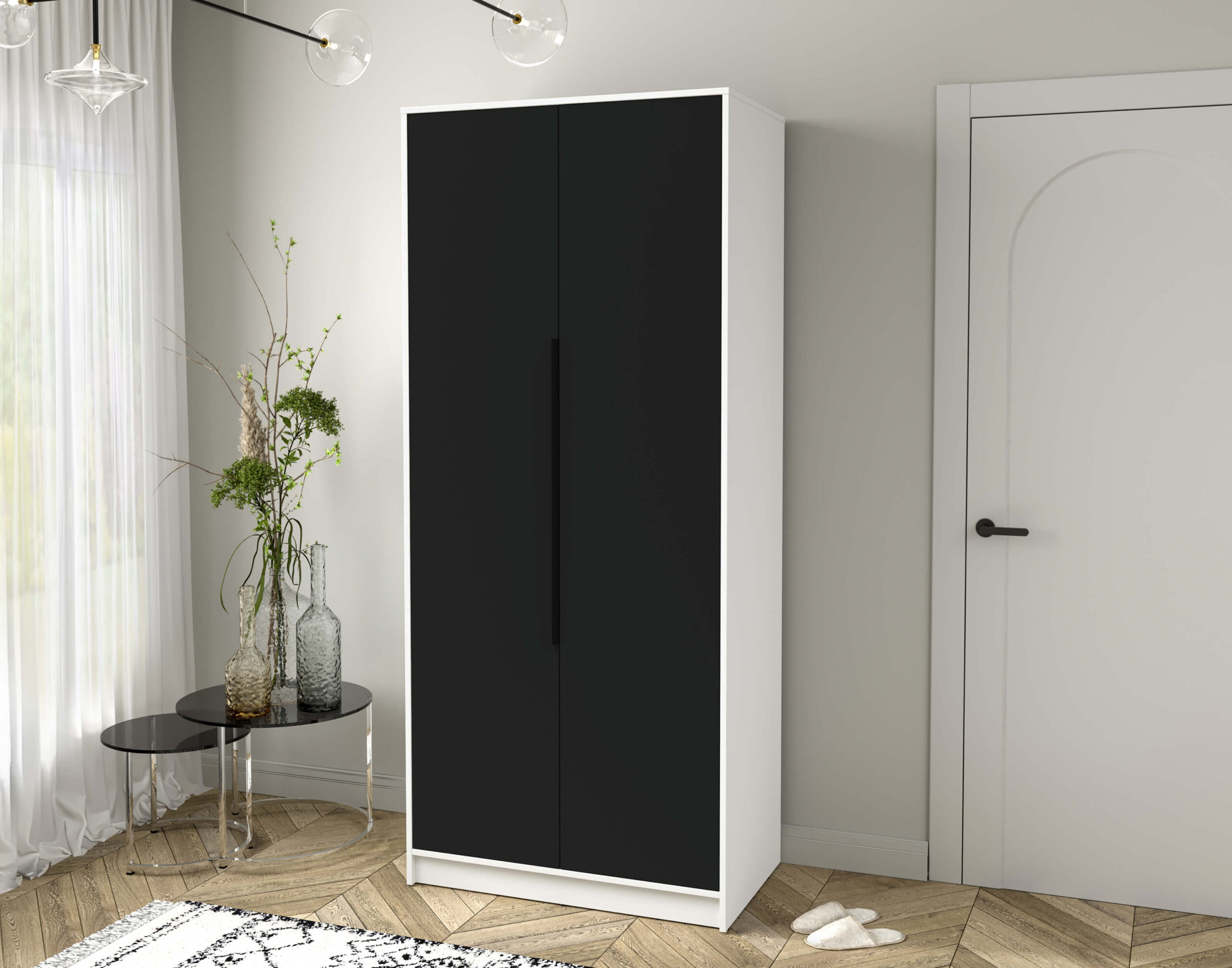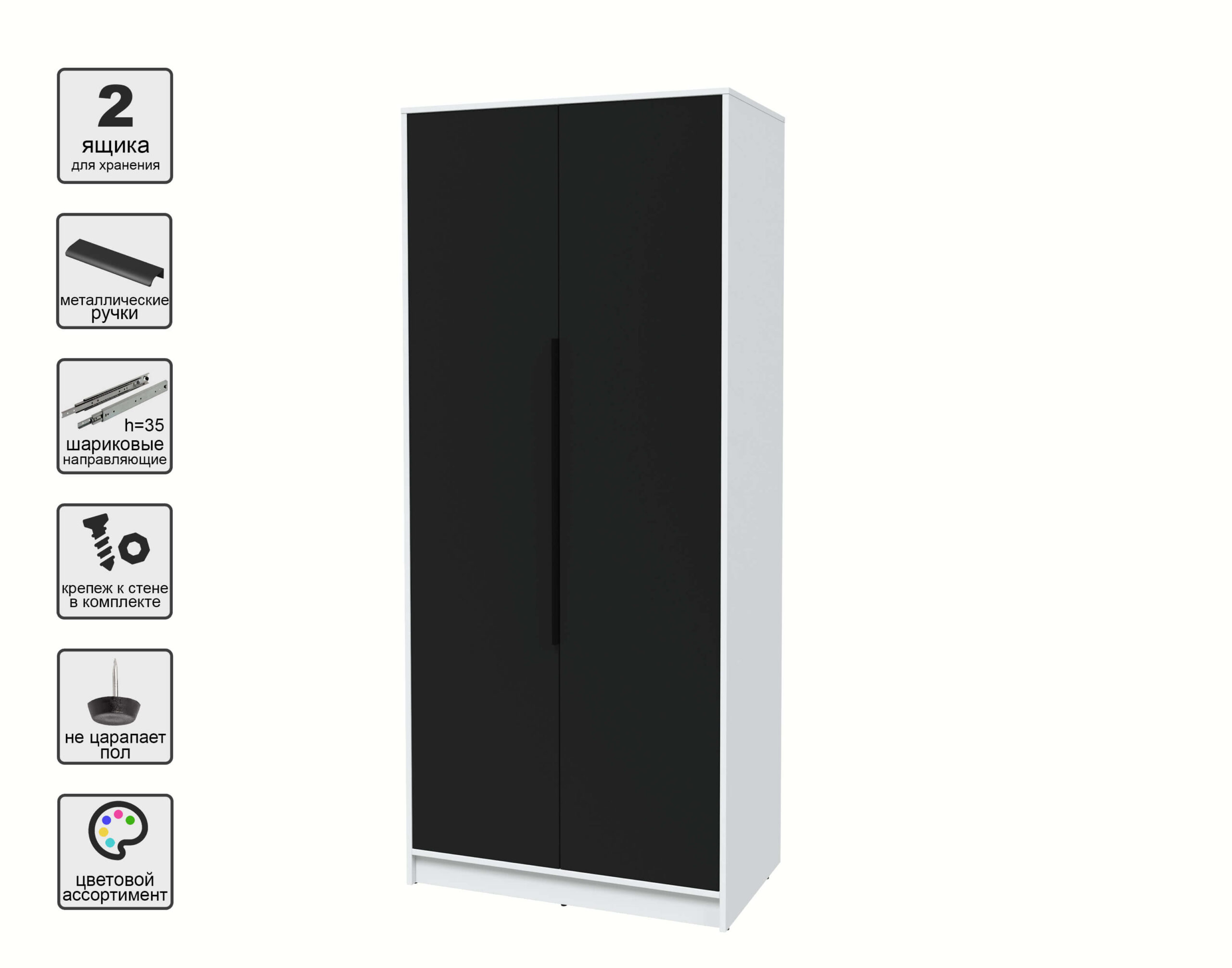 ШКАФ РАСПАШНОЙ КТ-Ш2 (БЕЛЫЙ ЛДСП/ ЧЕРНЫЙ ЛДСП) Ш918 В2128 Г547 - Yuta.by