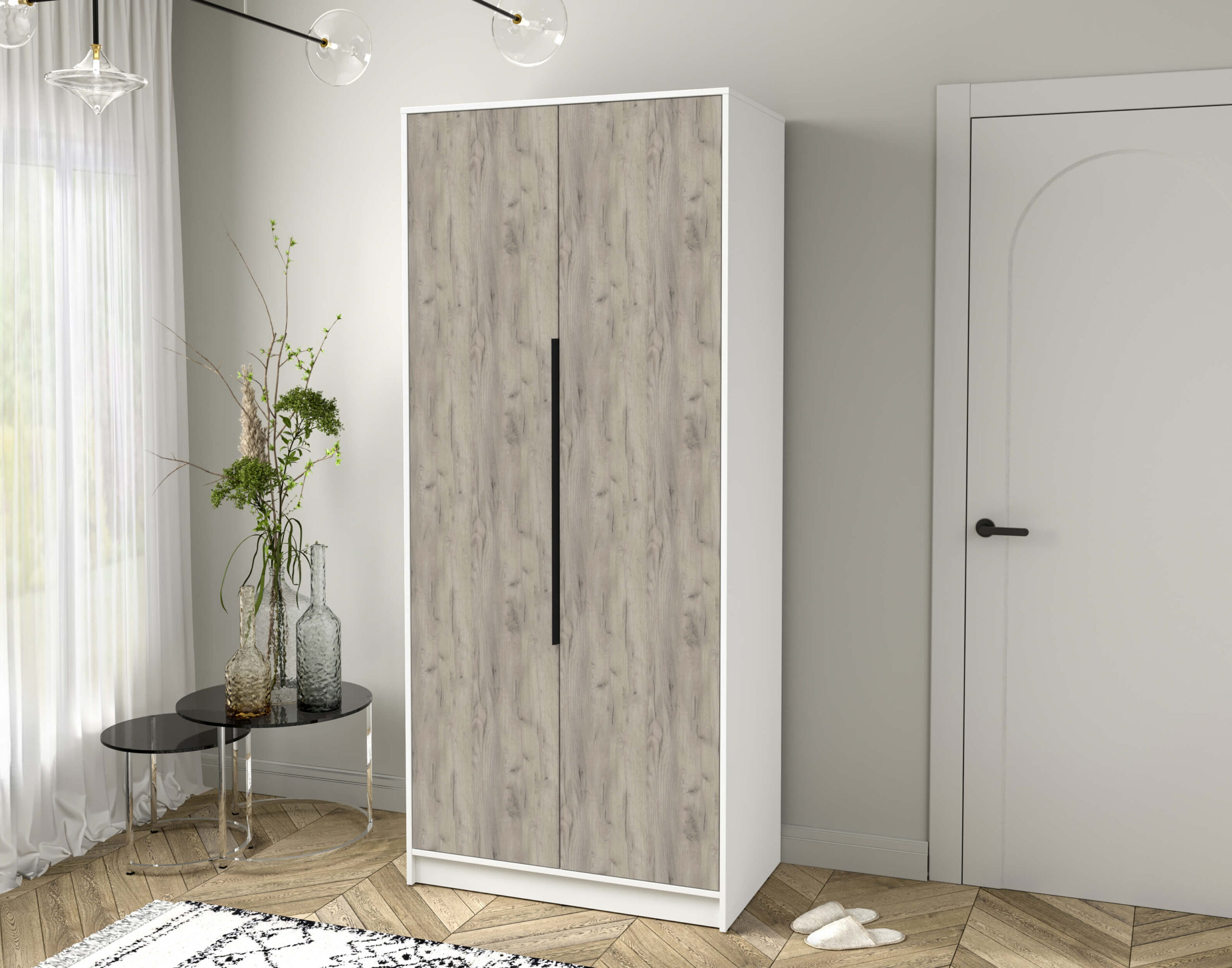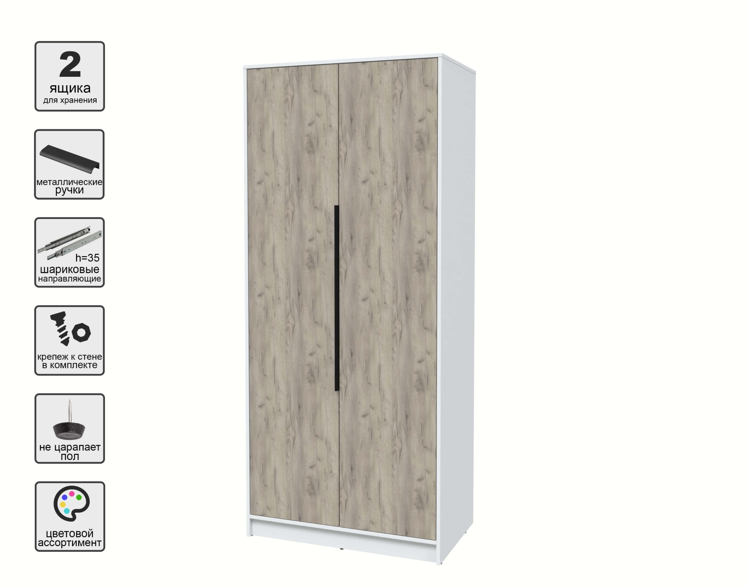 ШКАФ РАСПАШНОЙ КТ-Ш2 (БЕЛЫЙ ЛДСП/ ДУБ СЕРЫЙ ЛДСП) Ш918 В2128 Г547 - Yuta.by