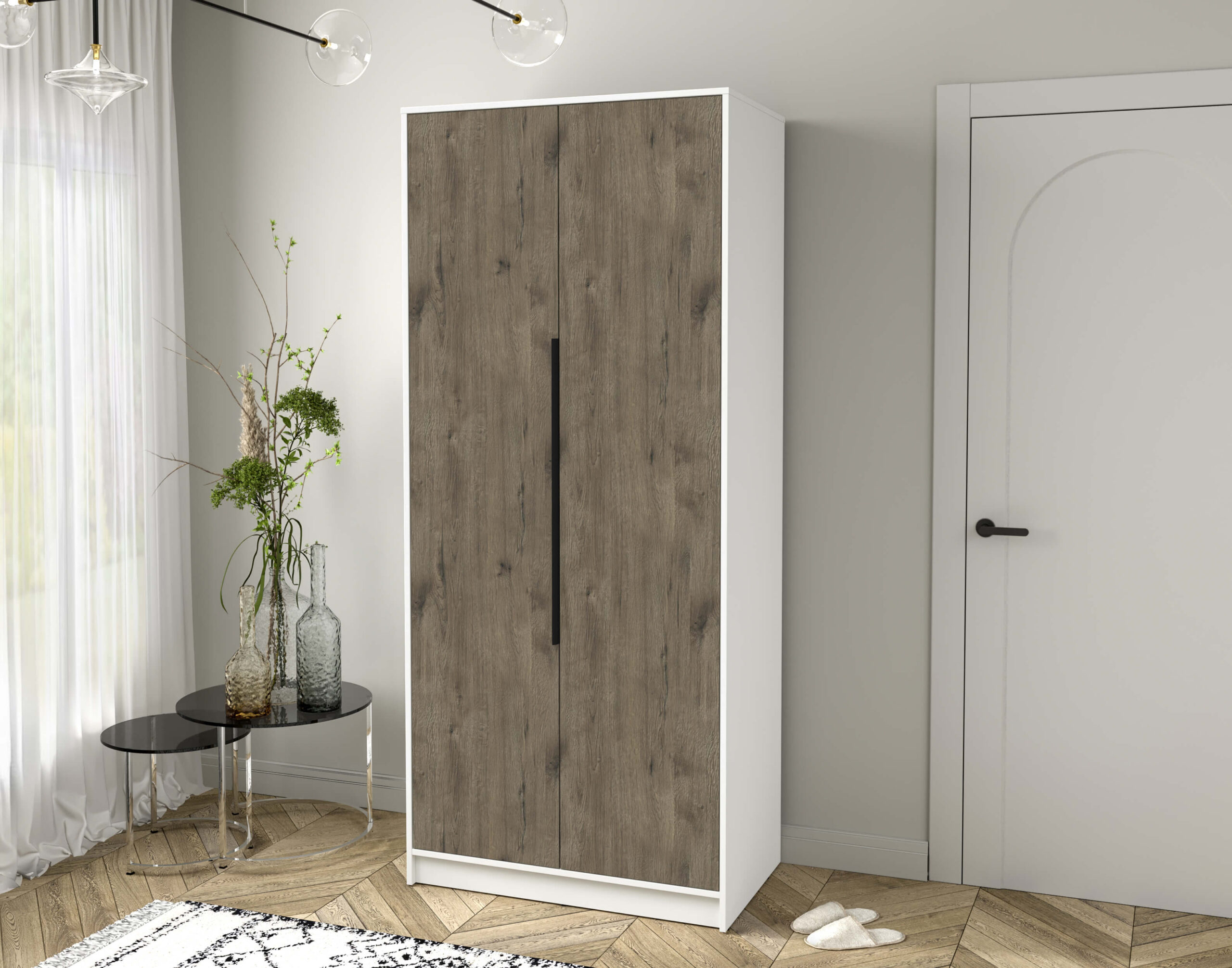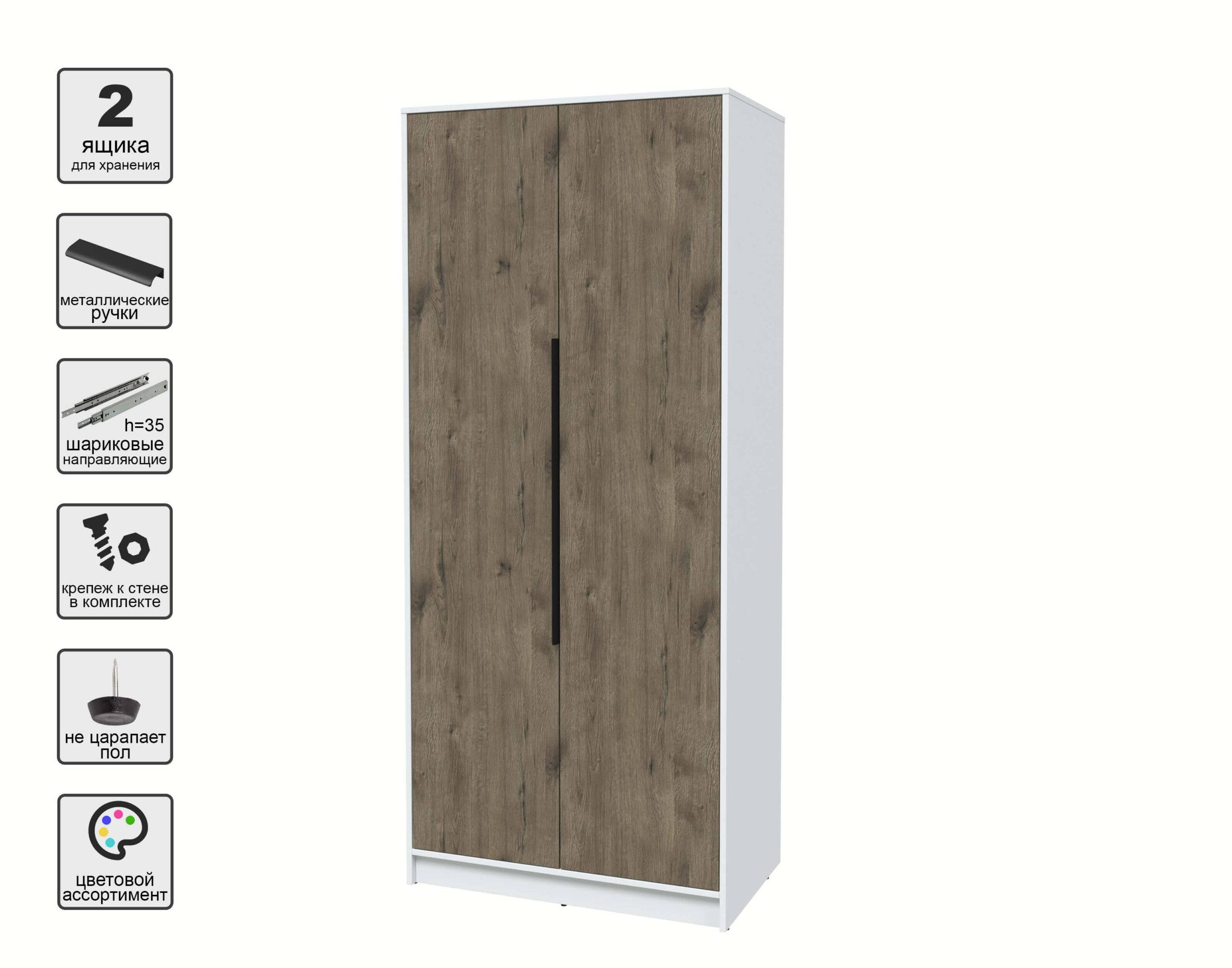 ШКАФ РАСПАШНОЙ КТ-Ш2 (БЕЛЫЙ ЛДСП/ ДУБ ВЕЛЛИНГТОН ЛДСП) Ш918 В2128 Г547 - Yuta.by