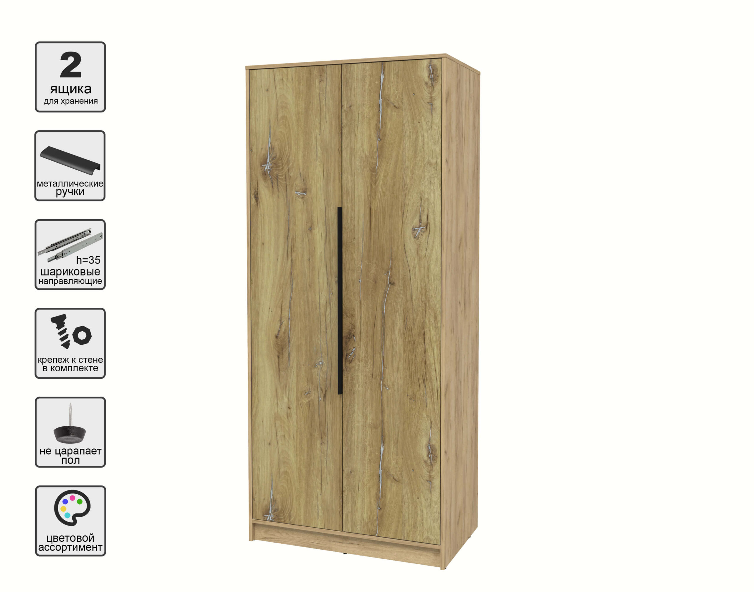 ШКАФ РАСПАШНОЙ КТ-Ш2 (ДУБ ЗОЛОТОЙ ЛДСП/ ДУБ НОКС ЛДСП) Ш918 В2128 Г547 - Yuta.by