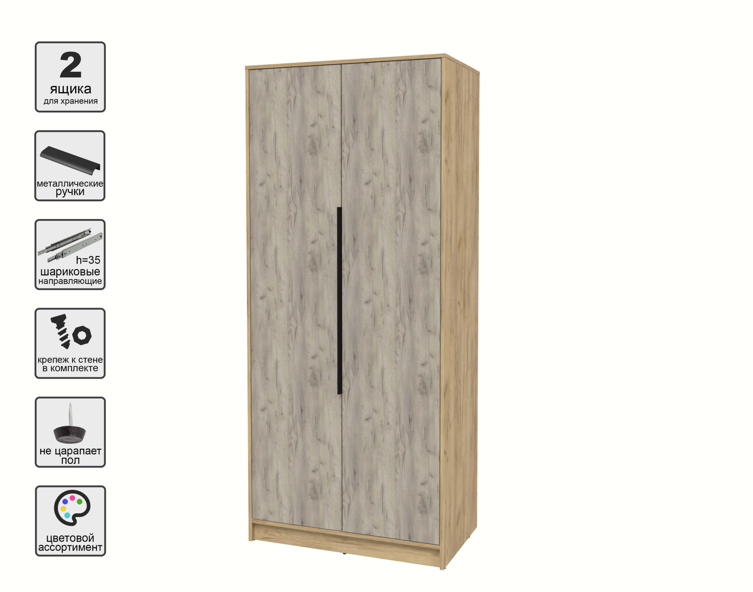 ШКАФ РАСПАШНОЙ КТ-Ш2 (ДУБ ЗОЛОТОЙ ЛДСП/ ДУБ СЕРЫЙ ЛДСП) Ш918 В2128 Г547 - Yuta.by
