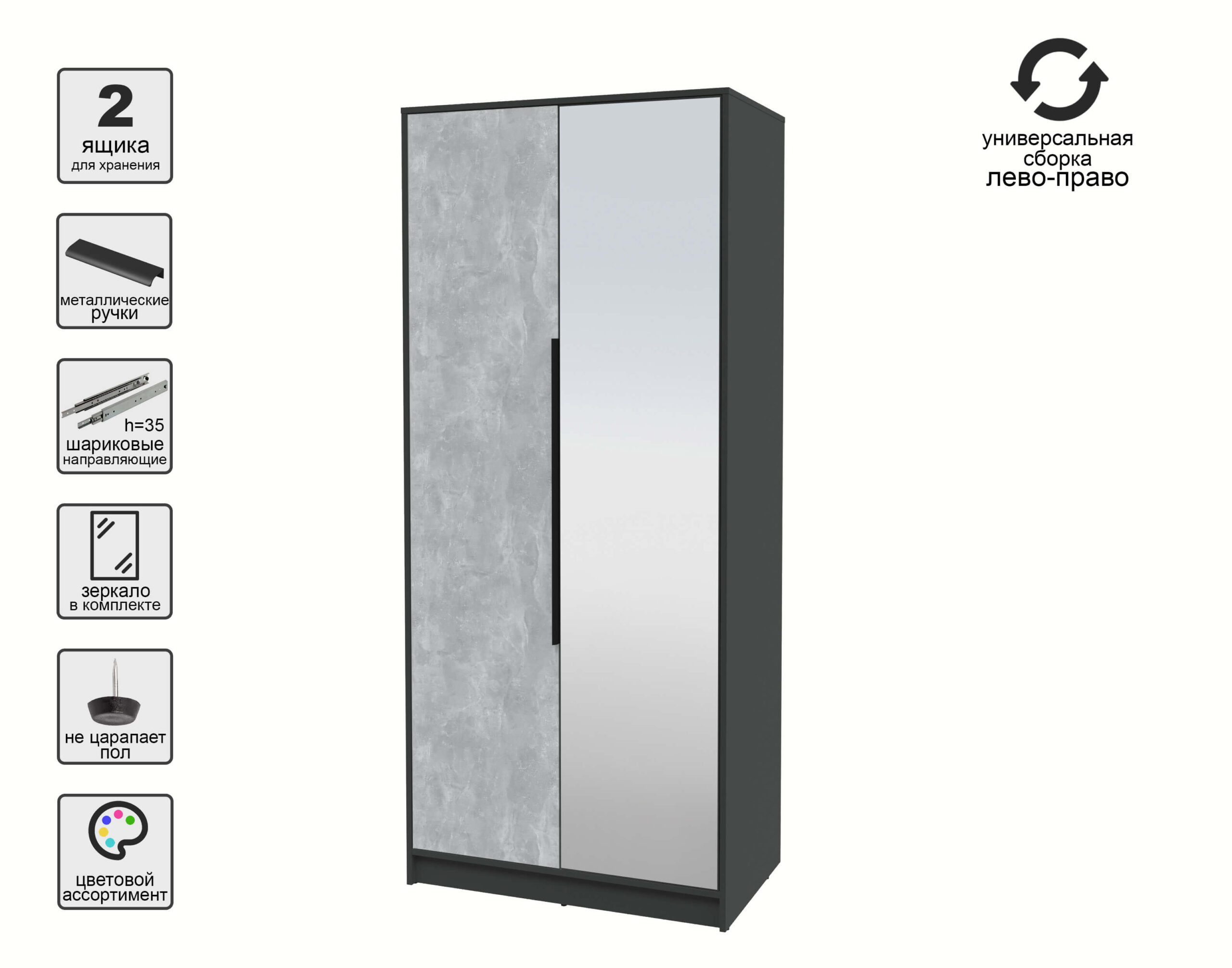 ШКАФ РАСПАШНОЙ КТ-Ш2(З) (АНТРАЦИТ ЛДСП/ БЕТОН ЛДСП) Ш918 В2128 Г547 - Yuta.by