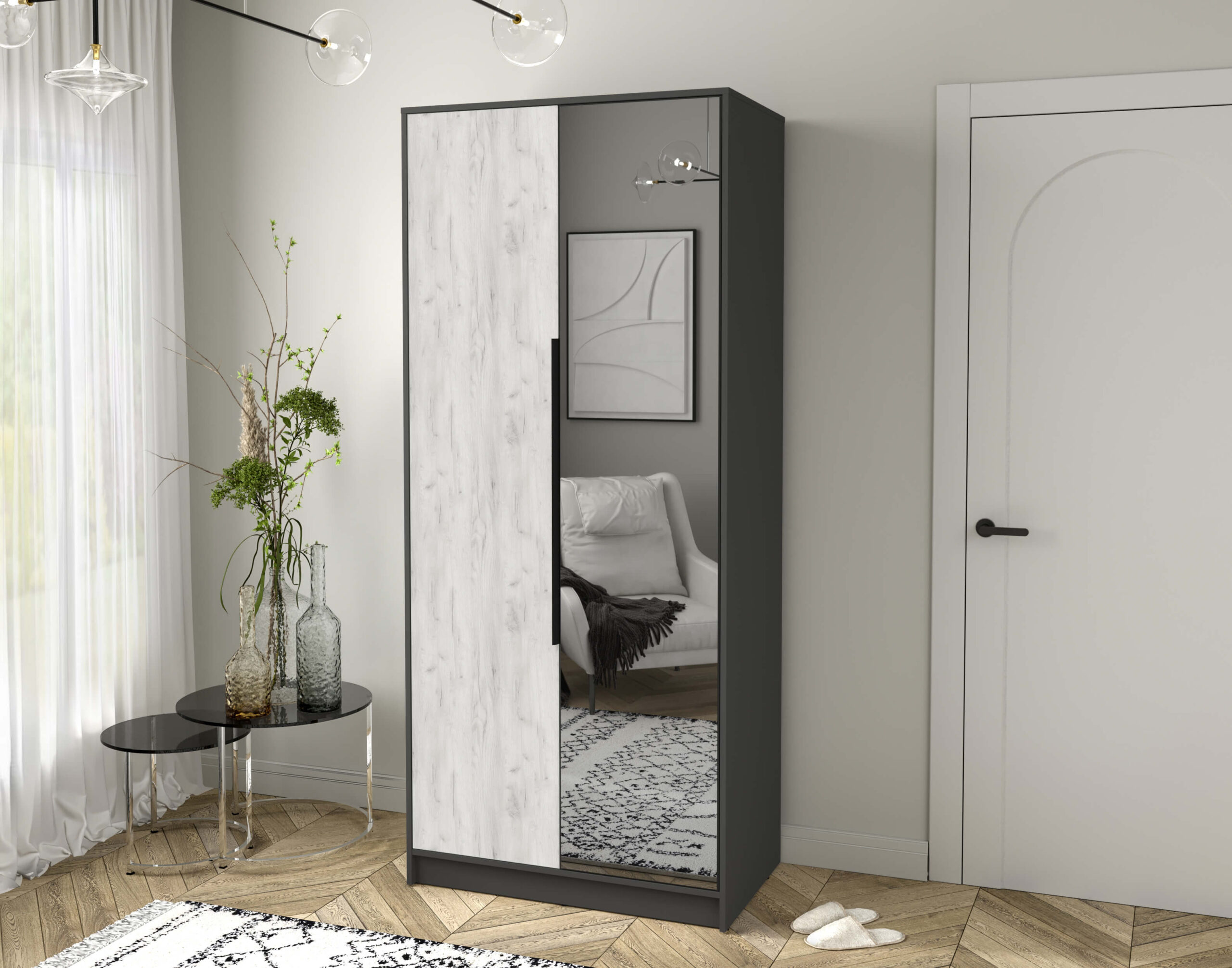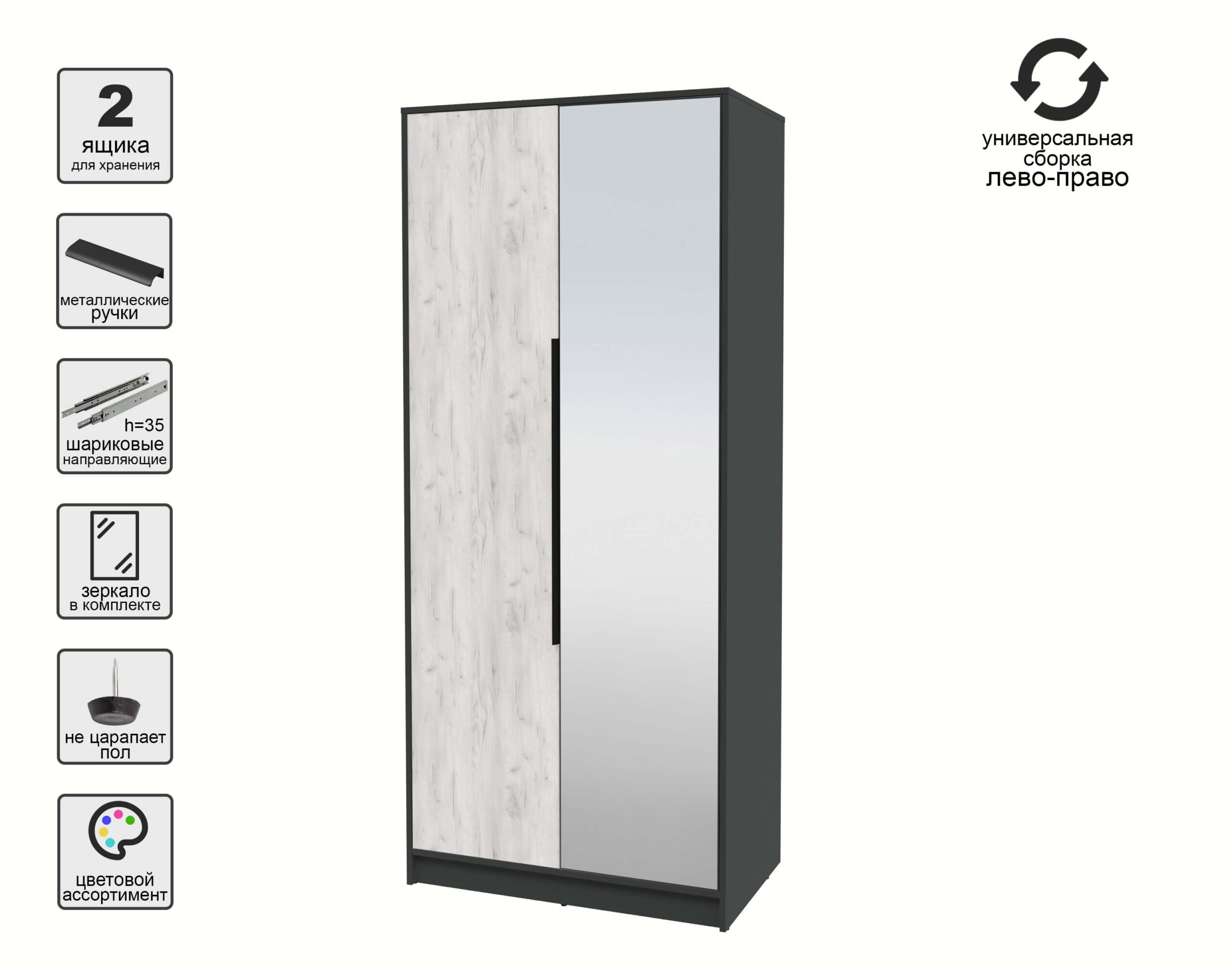 ШКАФ РАСПАШНОЙ КТ-Ш2(З) (АНТРАЦИТ ЛДСП/ ДУБ БЕЛЫЙ ЛДСП) Ш918 В2128 Г547 - Yuta.by