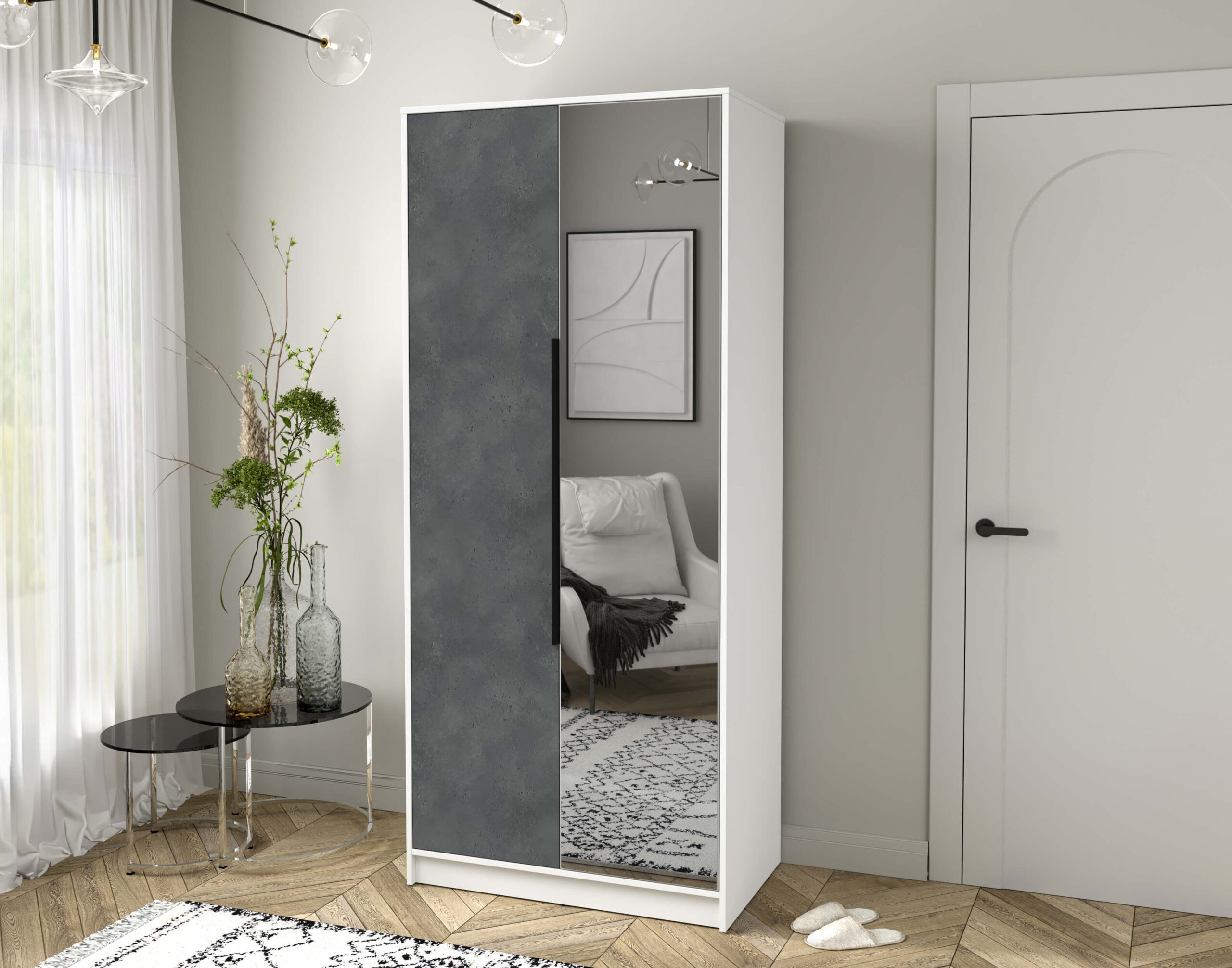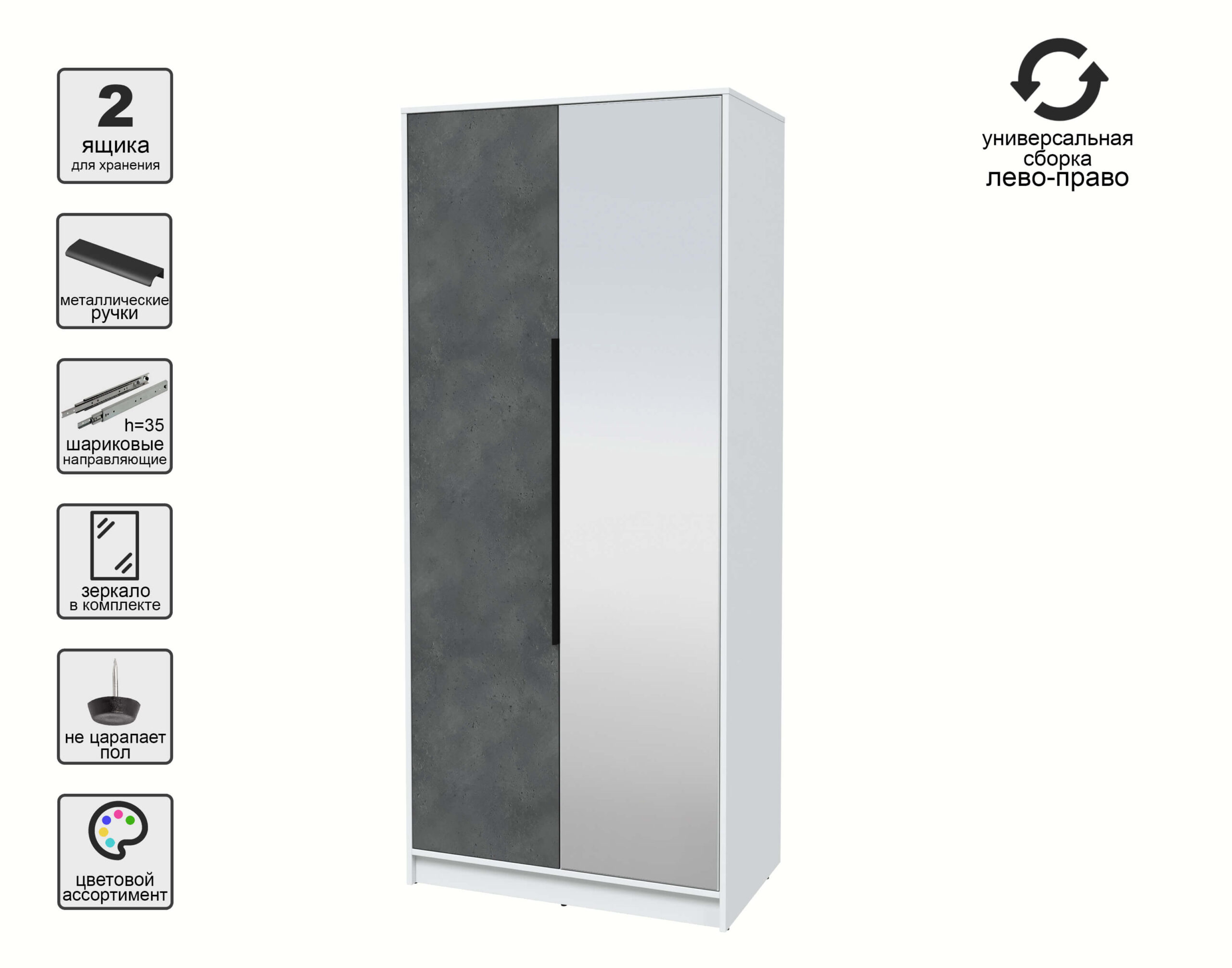 ШКАФ РАСПАШНОЙ КТ-Ш2(З) (БЕЛЫЙ ЛДСП/ БЕТОН ПОРТЛЕНД ЛДСП) Ш918 В2128 Г547 - Yuta.by