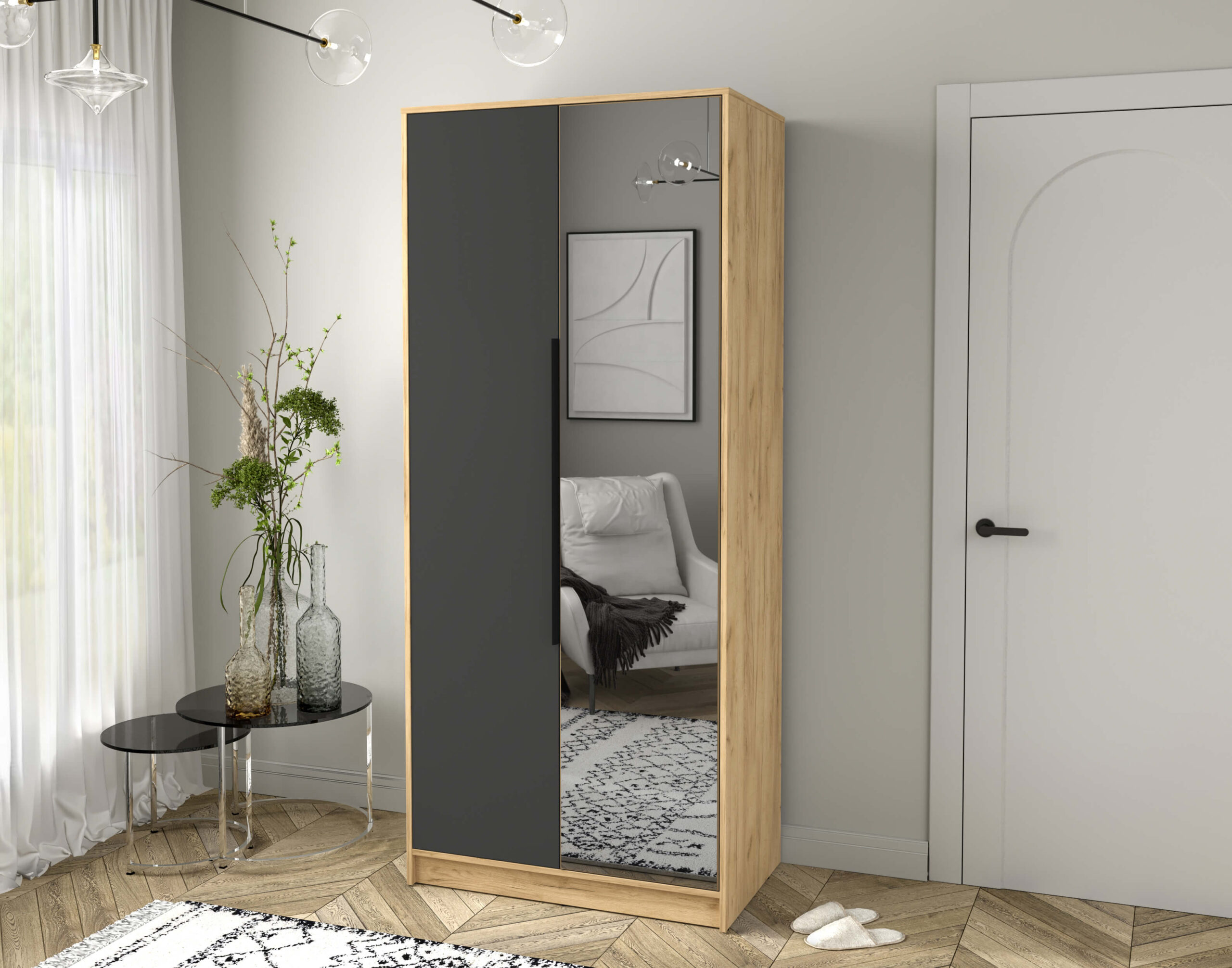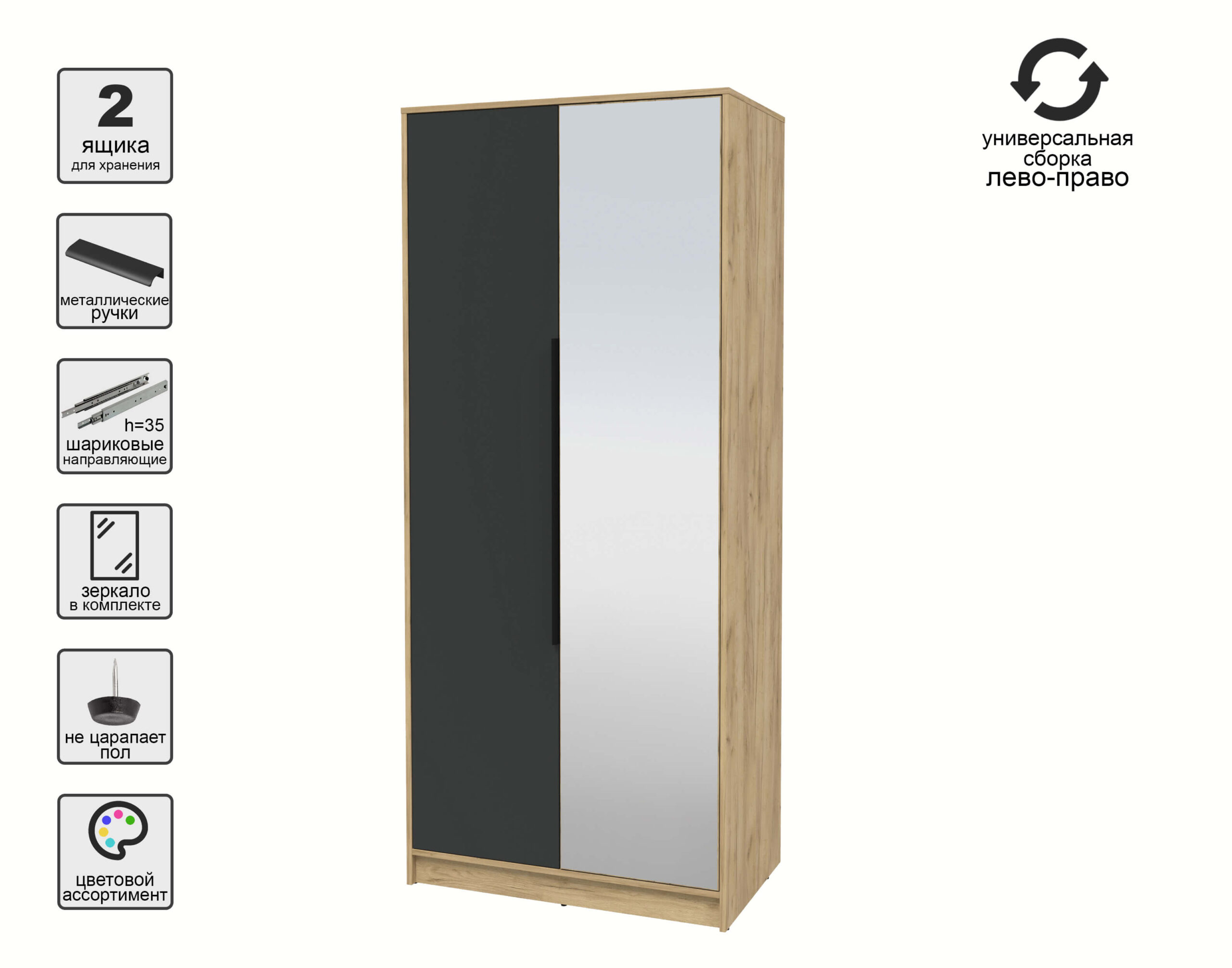ШКАФ РАСПАШНОЙ КТ-Ш2(З) (ДУБ ЗОЛОТОЙ ЛДСП/ АНТРАЦИТ ЛДСП) Ш918 В2128 Г547 - Yuta.by