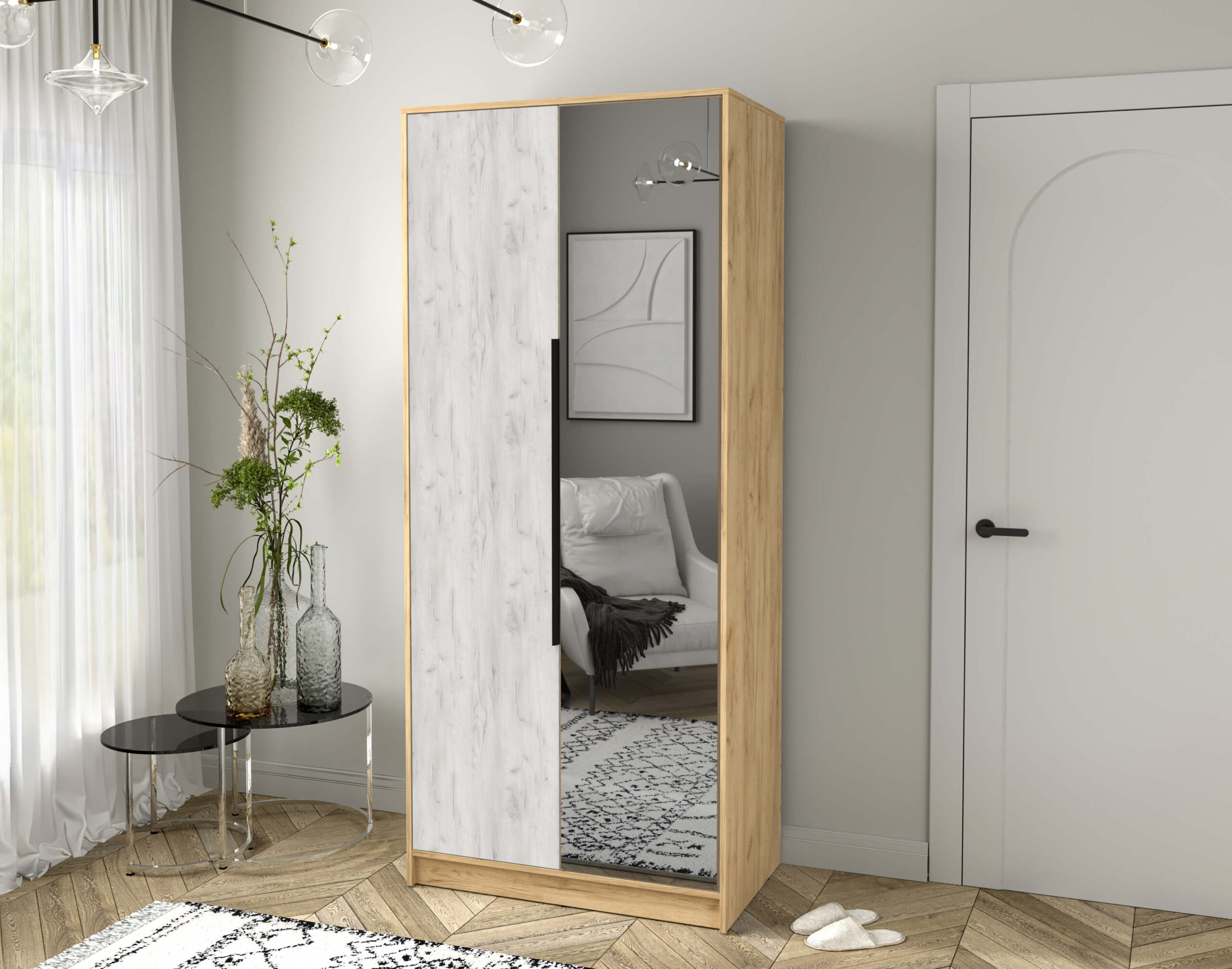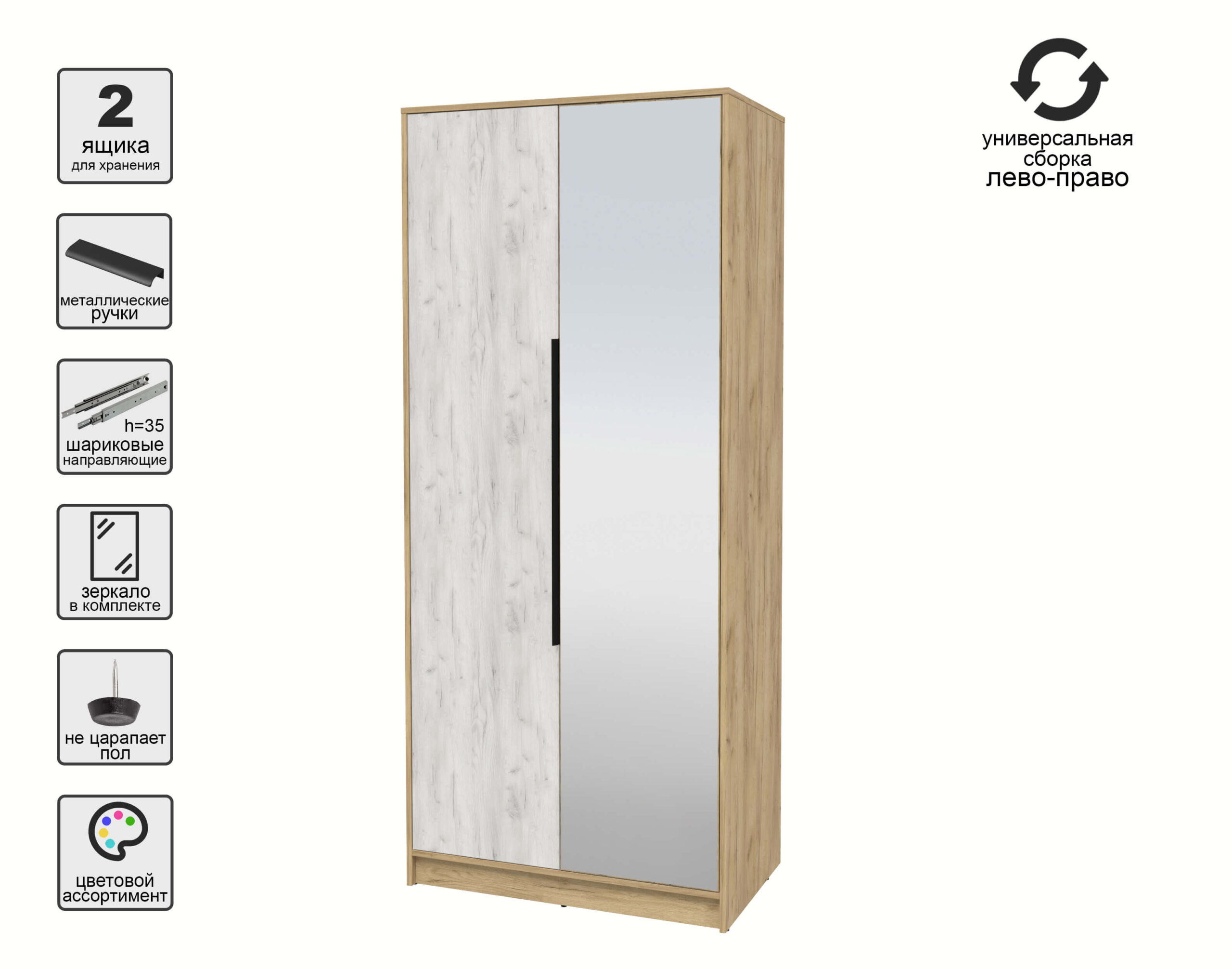 ШКАФ РАСПАШНОЙ КТ-Ш2(З) (ДУБ ЗОЛОТОЙ ЛДСП/ ДУБ БЕЛЫЙ ЛДСП) Ш918 В2128 Г547 - Yuta.by