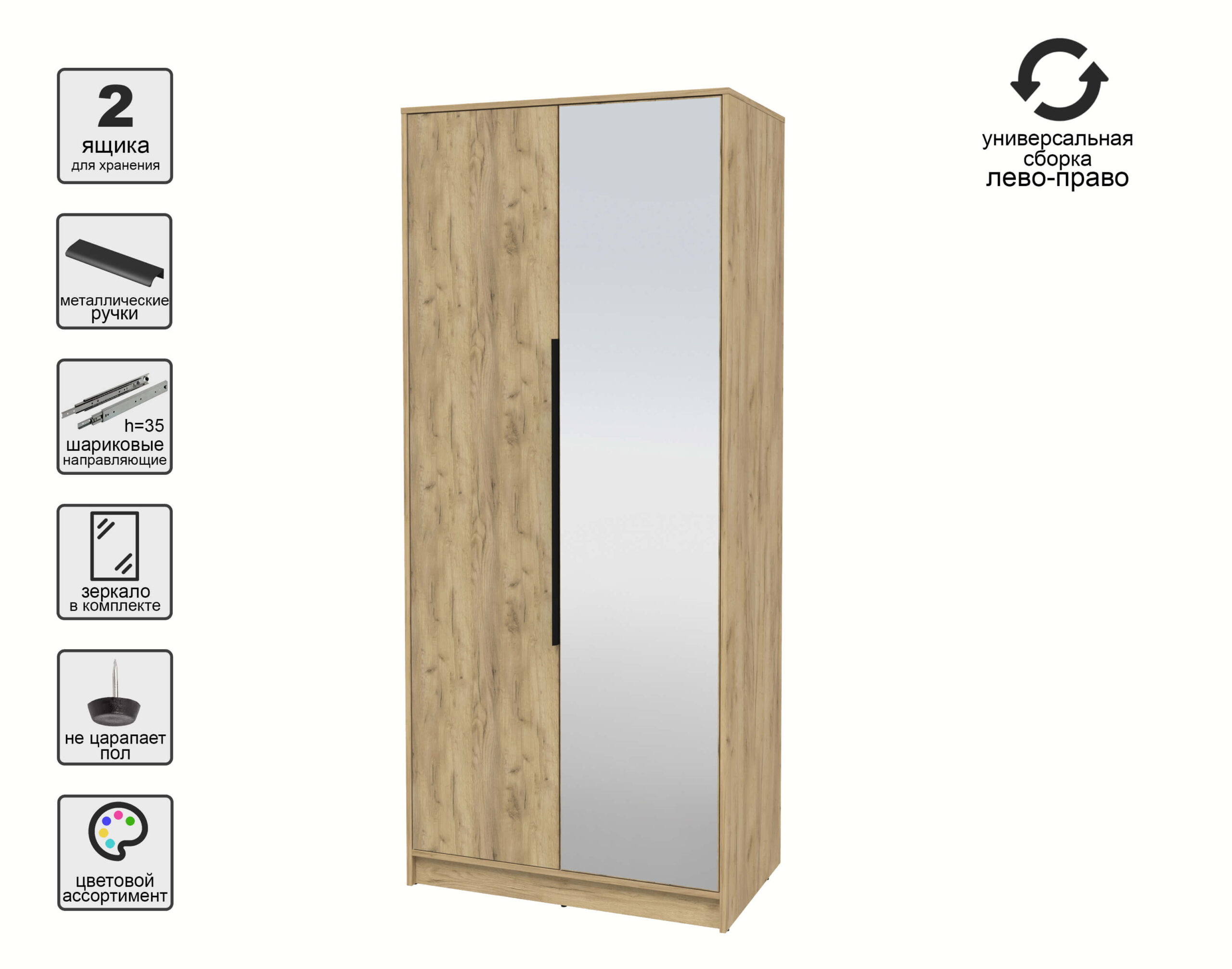 ШКАФ РАСПАШНОЙ КТ-Ш2(З) (ДУБ ЗОЛОТОЙ ЛДСП/ ДУБ ЗОЛОТОЙ ЛДСП) Ш918 В2128 Г547 - Yuta.by