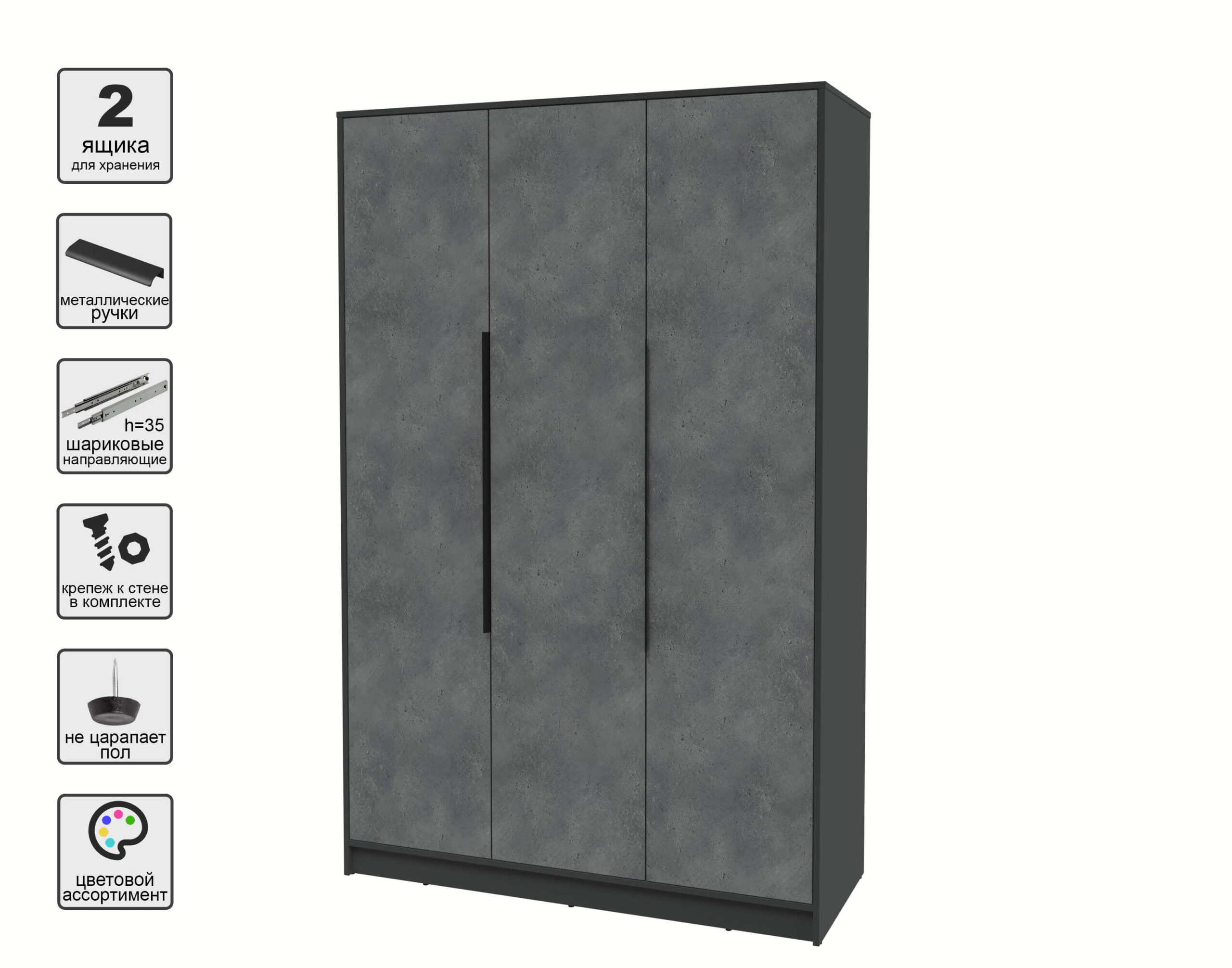 ШКАФ РАСПАШНОЙ КТ-Ш3 (АНТРАЦИТ ЛДСП/ БЕТОН ПОРТЛЕНД ЛДСП) Ш1360 В2128 Г547 - Yuta.by