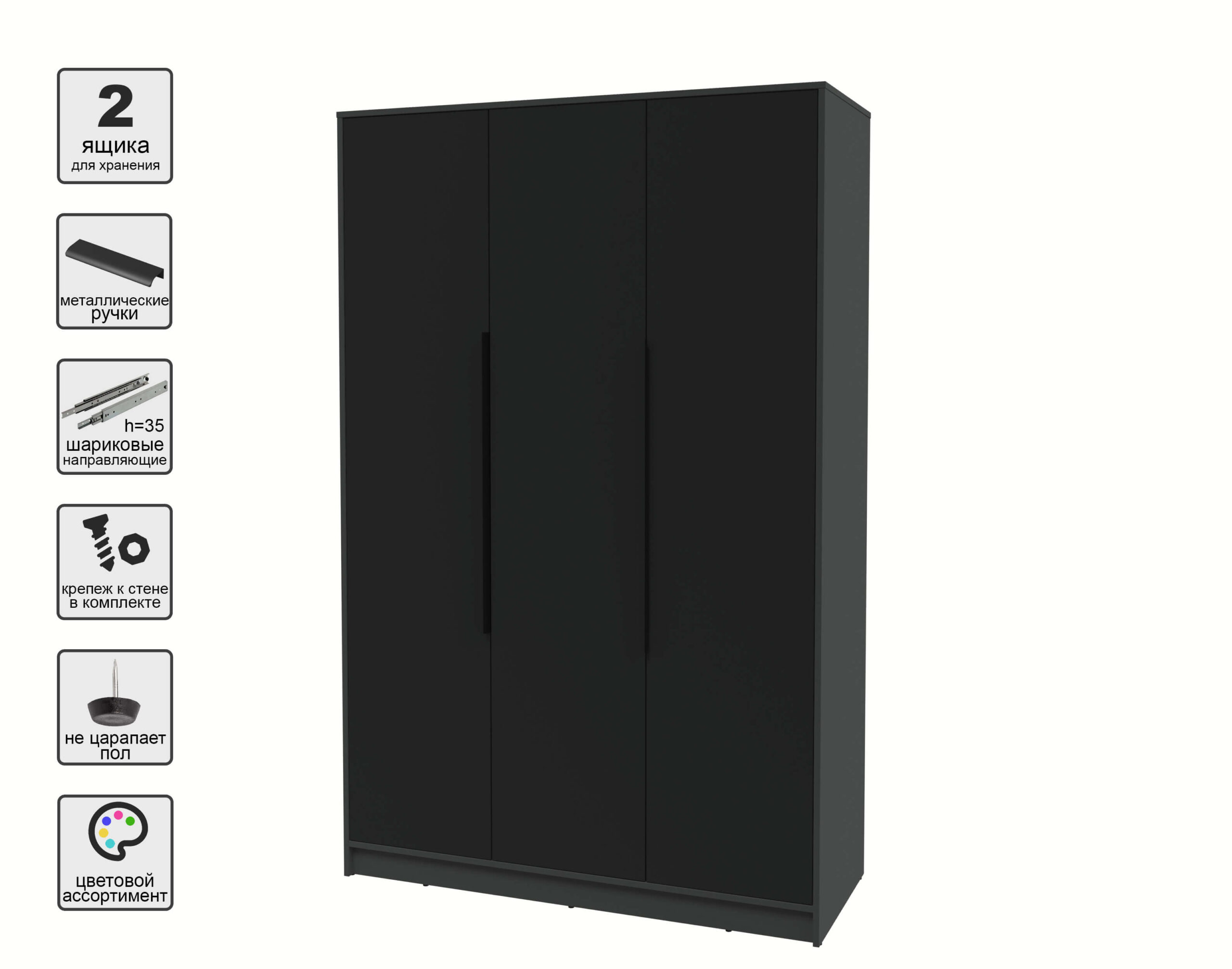 ШКАФ РАСПАШНОЙ КТ-Ш3 (АНТРАЦИТ ЛДСП/ ЧЕРНЫЙ ЛДСП) Ш1360 В2128 Г547 - Yuta.by