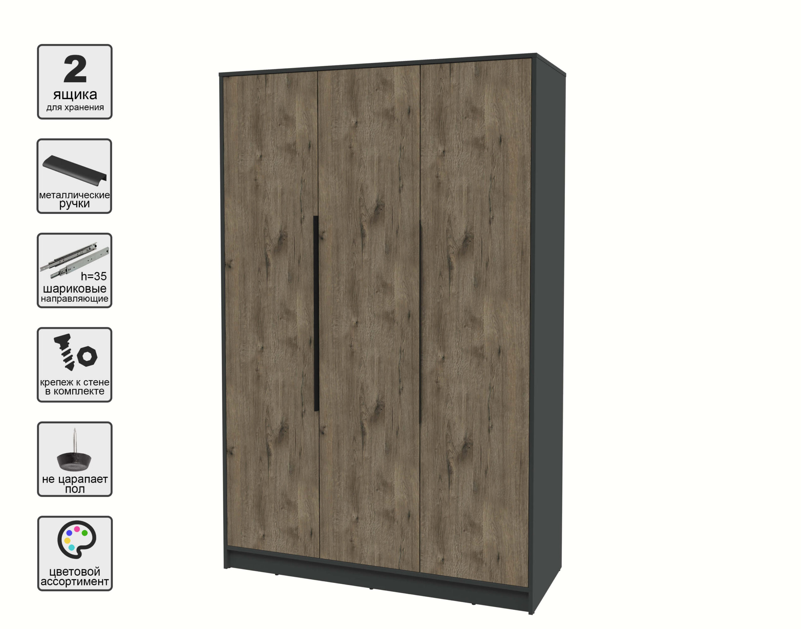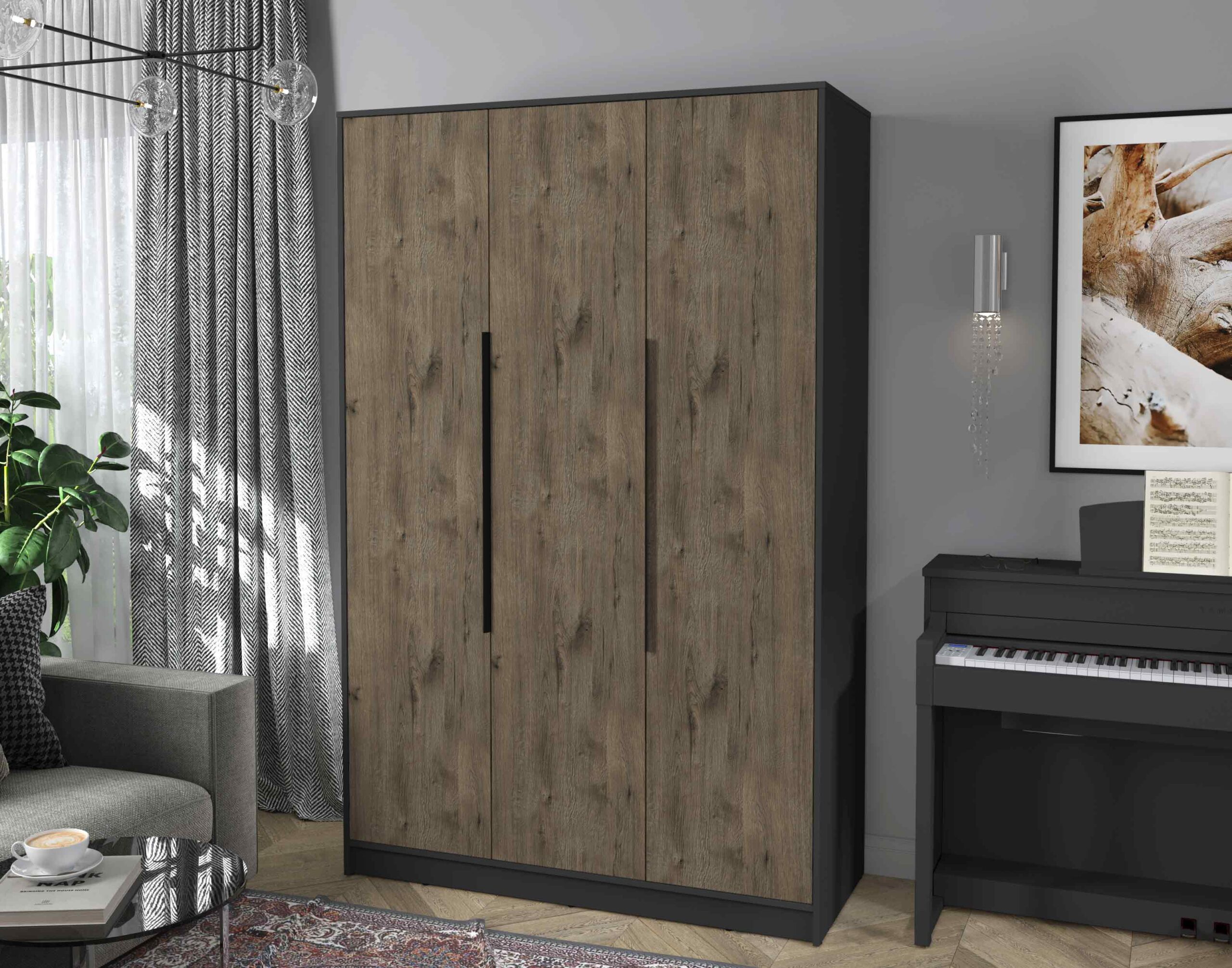 ШКАФ РАСПАШНОЙ КТ-Ш3 (АНТРАЦИТ ЛДСП/ ДУБ ВЕЛЛИНГТОН ЛДСП) Ш1360 В2128 Г547 - Yuta.by