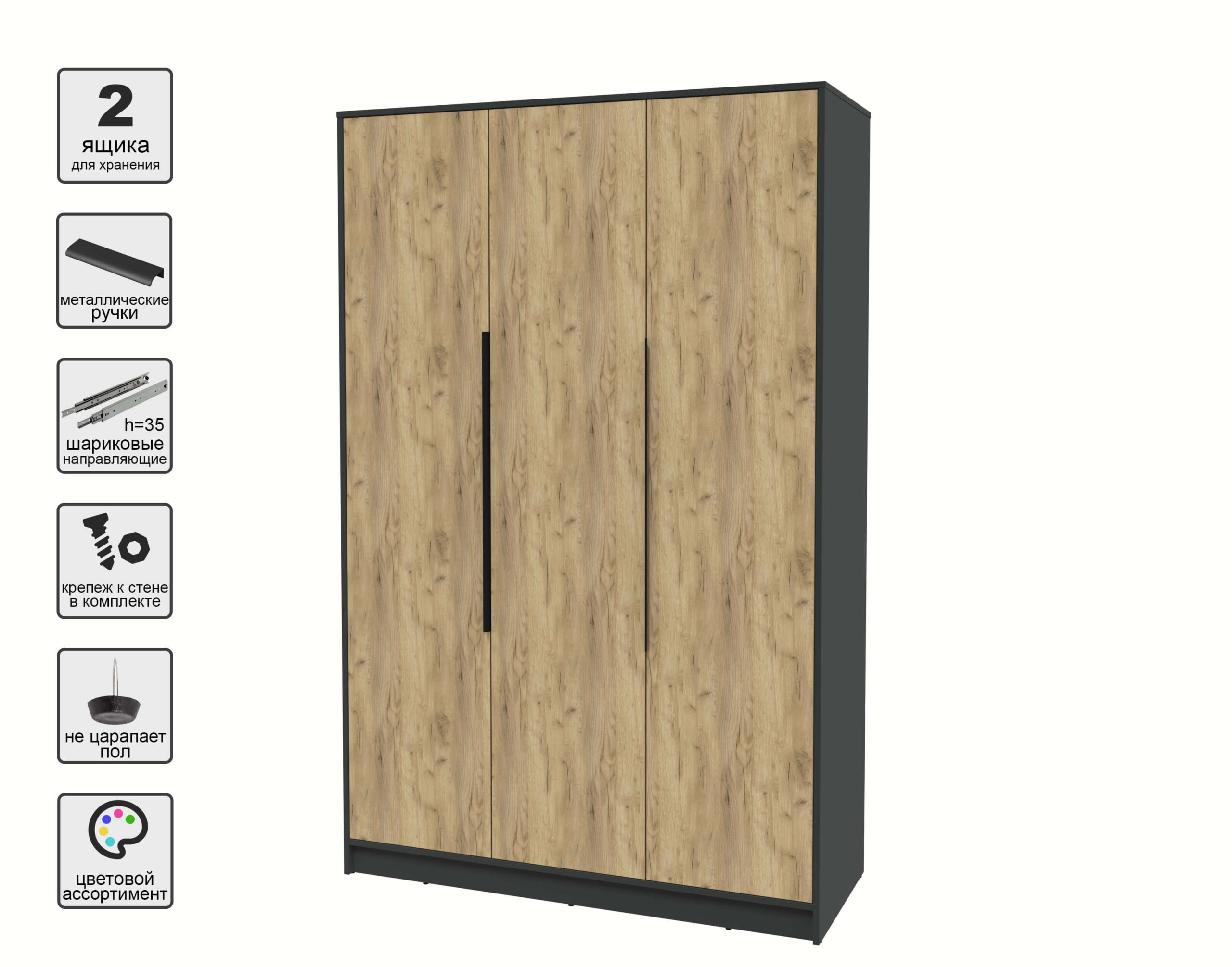 ШКАФ РАСПАШНОЙ КТ-Ш3 (АНТРАЦИТ ЛДСП/ ДУБ ЗОЛОТОЙ ЛДСП) Ш1360 В2128 Г547 - Yuta.by