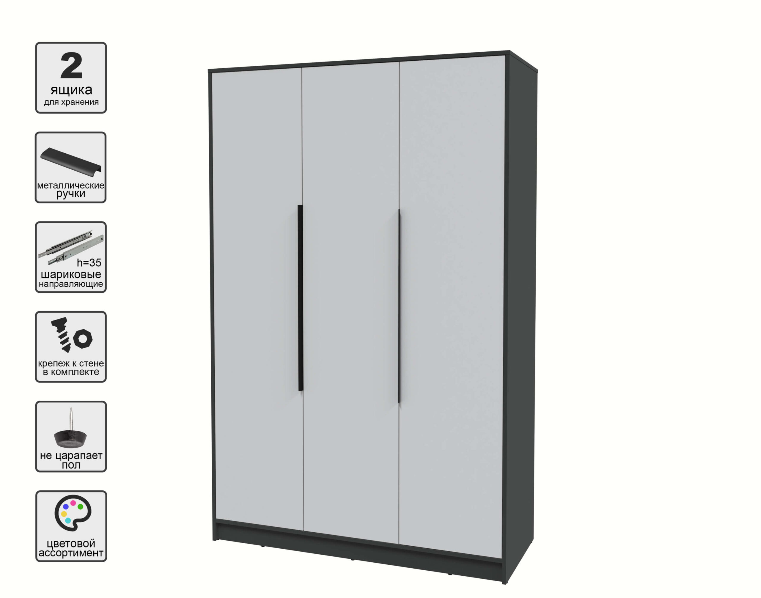ШКАФ РАСПАШНОЙ КТ-Ш3 (АНТРАЦИТ ЛДСП/ СЕРЫЙ ЛДСП) Ш1360 В2128 Г547 - Yuta.by