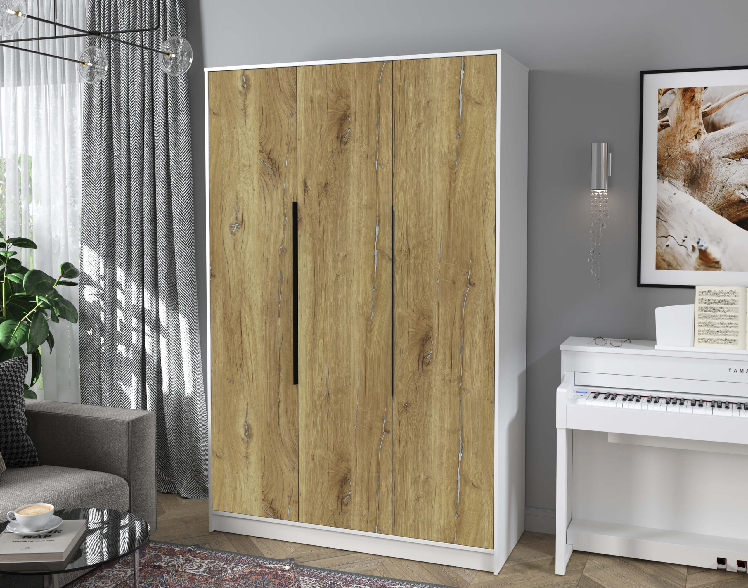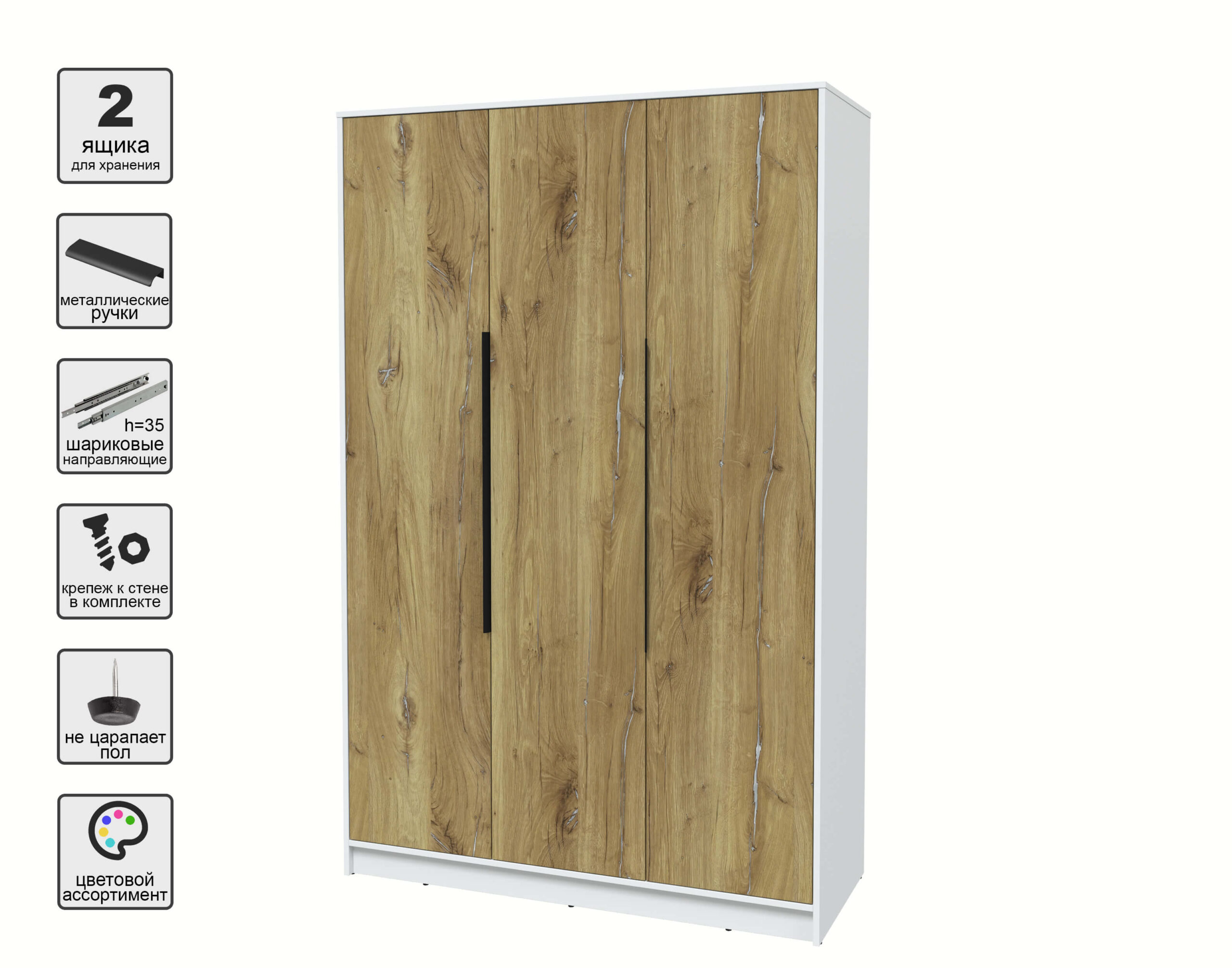 ШКАФ РАСПАШНОЙ КТ-Ш3 (БЕЛЫЙ ЛДСП/ ДУБ НОКС ЛДСП) Ш1360 В2128 Г547 - Yuta.by