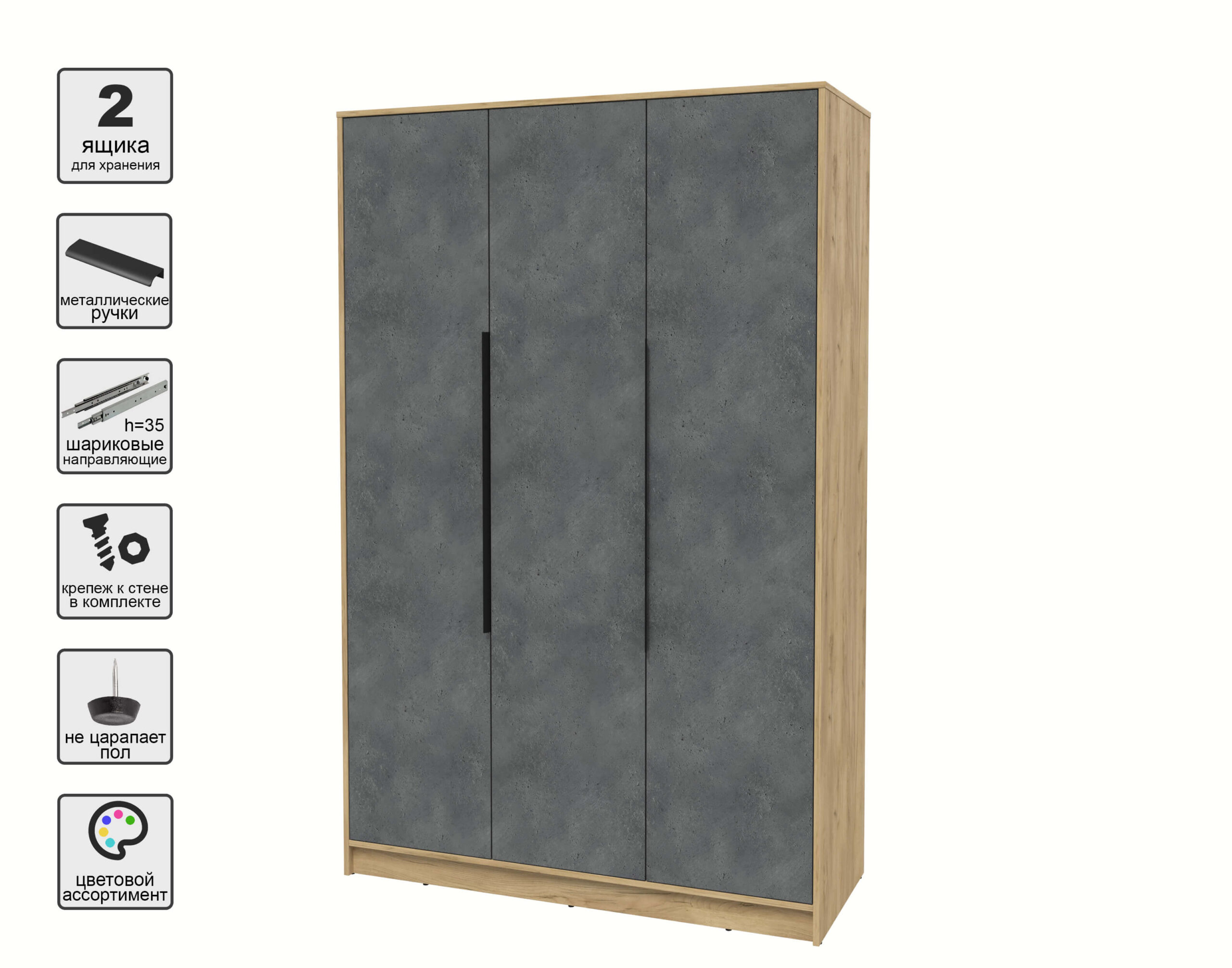 ШКАФ РАСПАШНОЙ КТ-Ш3 (ДУБ ЗОЛОТОЙ ЛДСП/ БЕТОН ПОРТЛЕНД ЛДСП) Ш1360 В2128 Г547 - Yuta.by