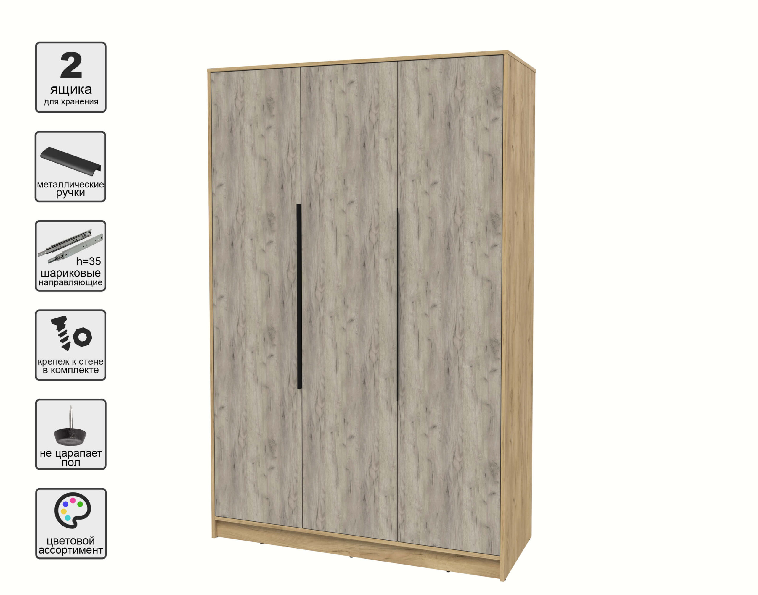 ШКАФ РАСПАШНОЙ КТ-Ш3 (ДУБ ЗОЛОТОЙ ЛДСП/ ДУБ СЕРЫЙ ЛДСП) Ш1360 В2128 Г547 - Yuta.by