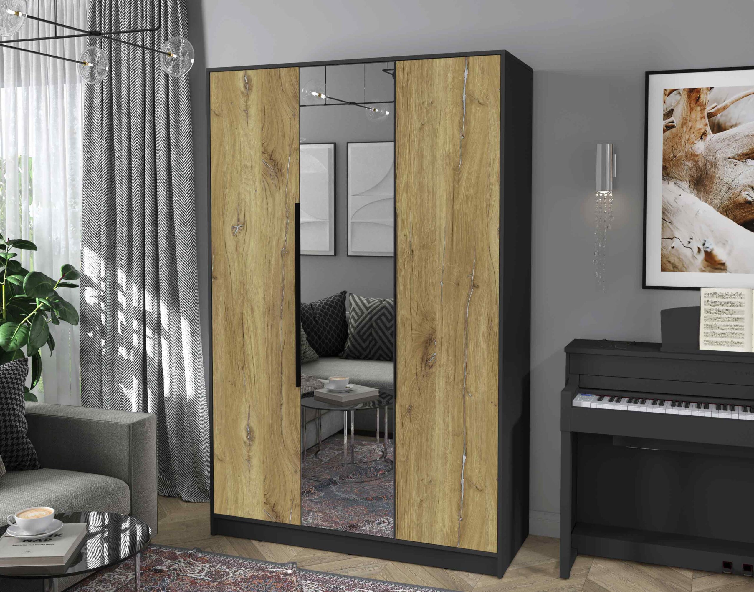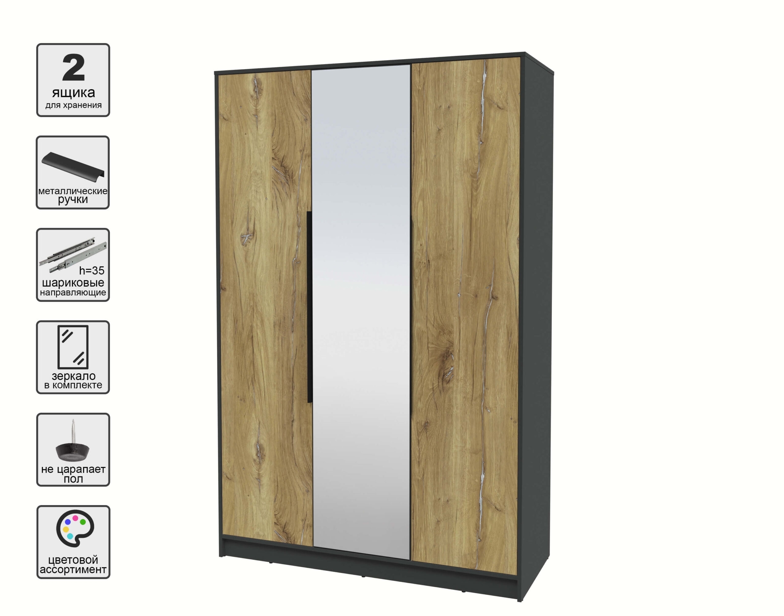 ШКАФ РАСПАШНОЙ КТ-Ш3(З) (АНТРАЦИТ ЛДСП/ ДУБ НОКС ЛДСП) Ш1360 В2128 Г547 - Yuta.by
