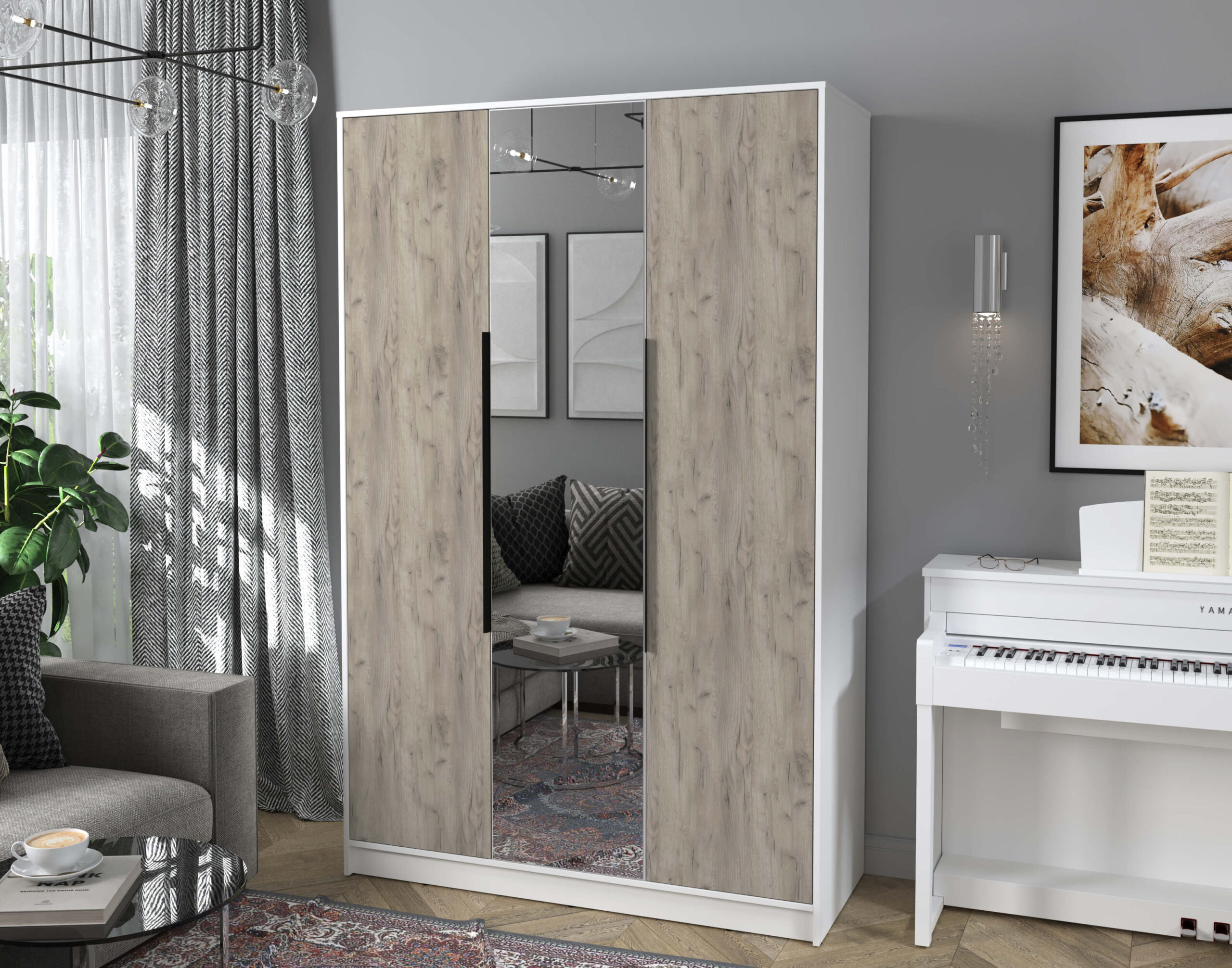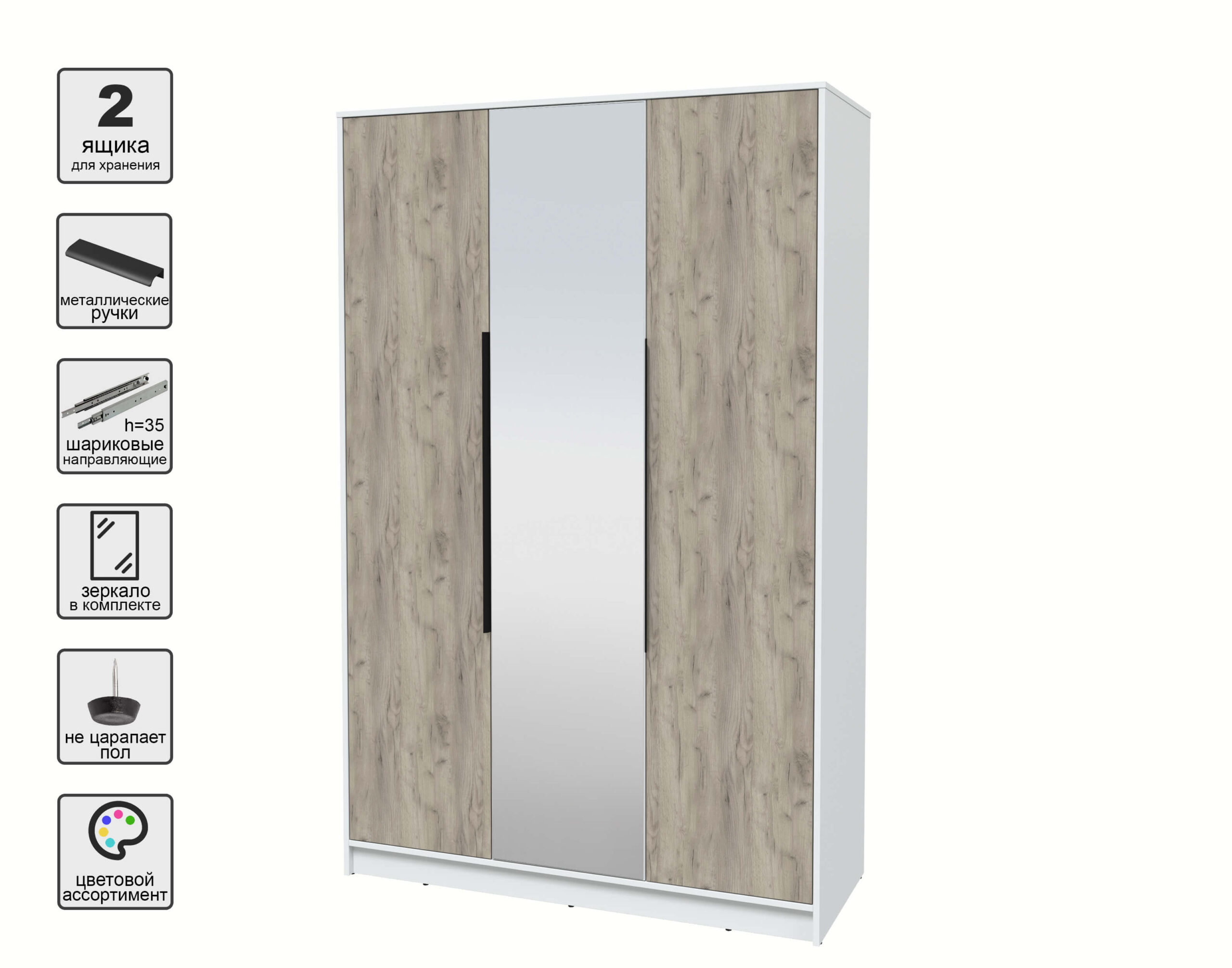 ШКАФ РАСПАШНОЙ КТ-Ш3(З) (БЕЛЫЙ ЛДСП/ ДУБ СЕРЫЙ ЛДСП) Ш1360 В2128 Г547 - Yuta.by