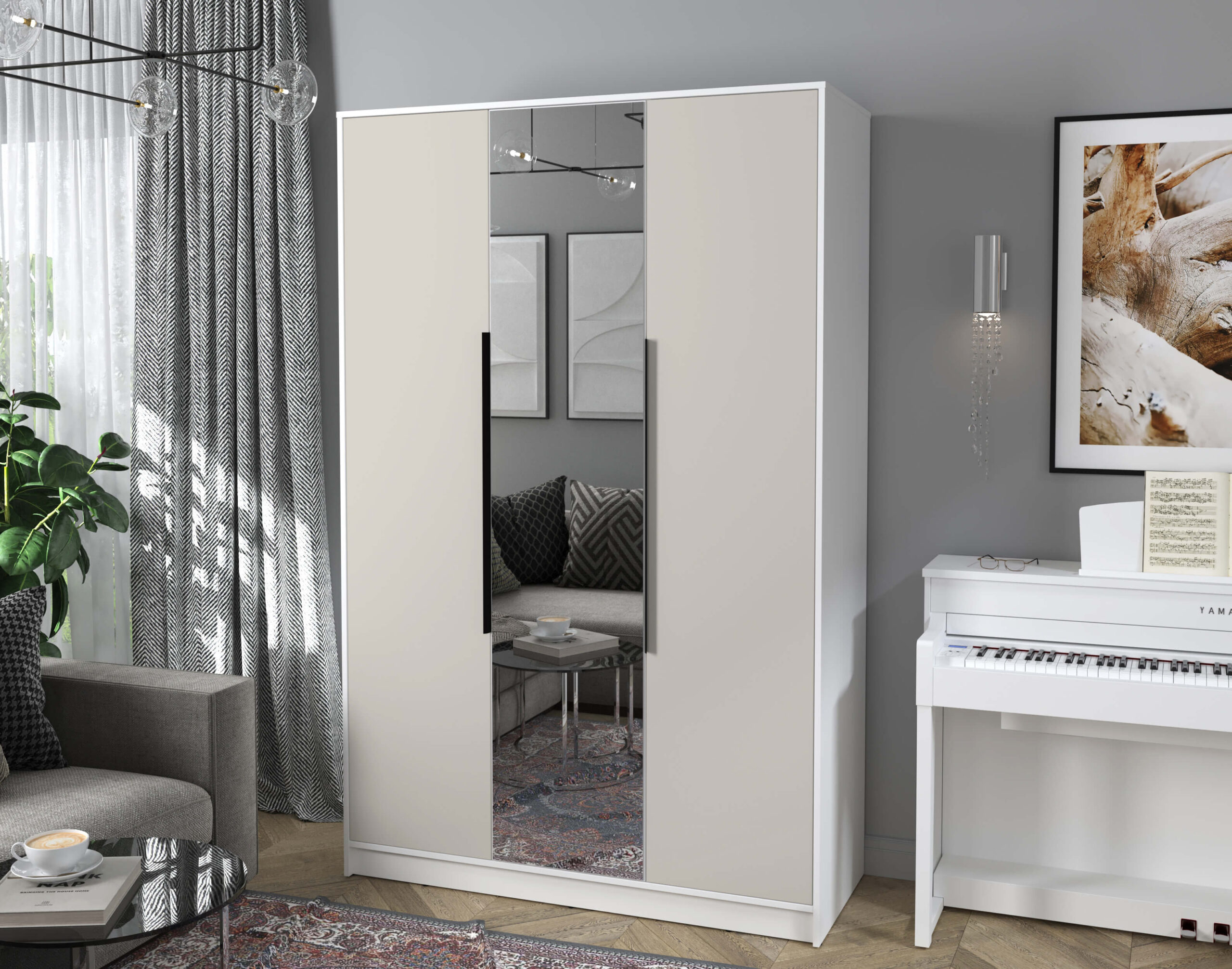 ШКАФ РАСПАШНОЙ КТ-Ш3(З) (БЕЛЫЙ ЛДСП/ ПЕРСИДСКИЙ ЖЕМЧУГ ЛДСП) Ш1360 В2128 Г547
