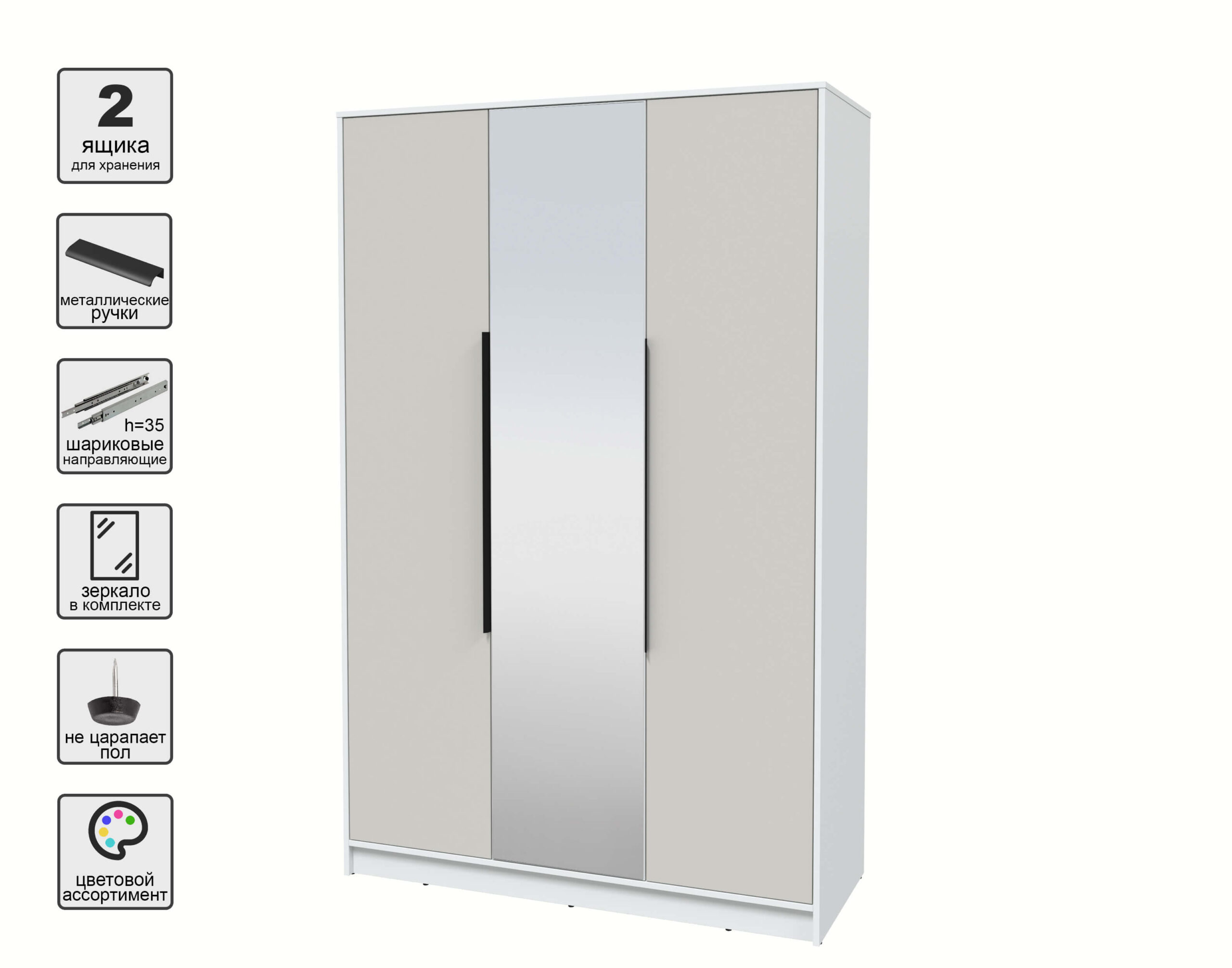 ШКАФ РАСПАШНОЙ КТ-Ш3(З) (БЕЛЫЙ ЛДСП/ ПЕРСИДСКИЙ ЖЕМЧУГ ЛДСП) Ш1360 В2128 Г547 - Yuta.by