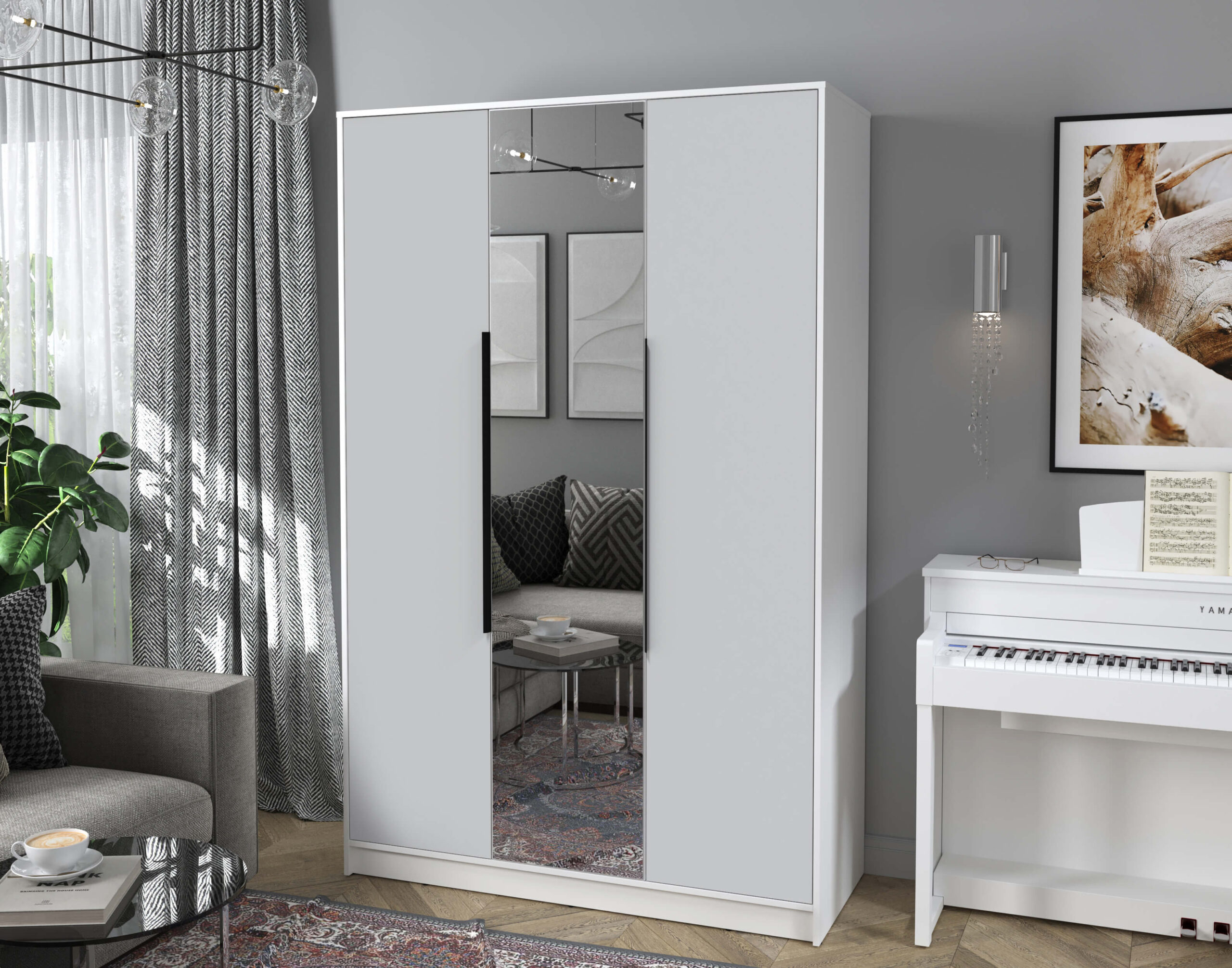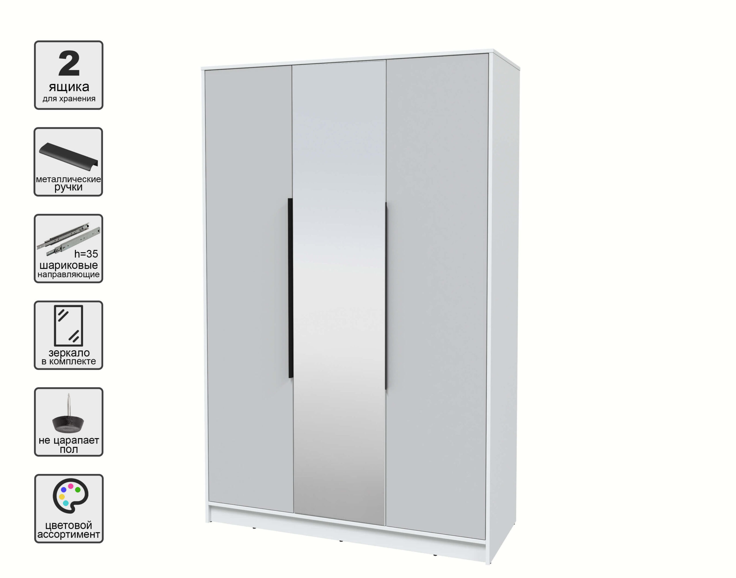 ШКАФ РАСПАШНОЙ КТ-Ш3(З) (БЕЛЫЙ ЛДСП/ СЕРЫЙ ЛДСП) Ш1360 В2128 Г547 - Yuta.by