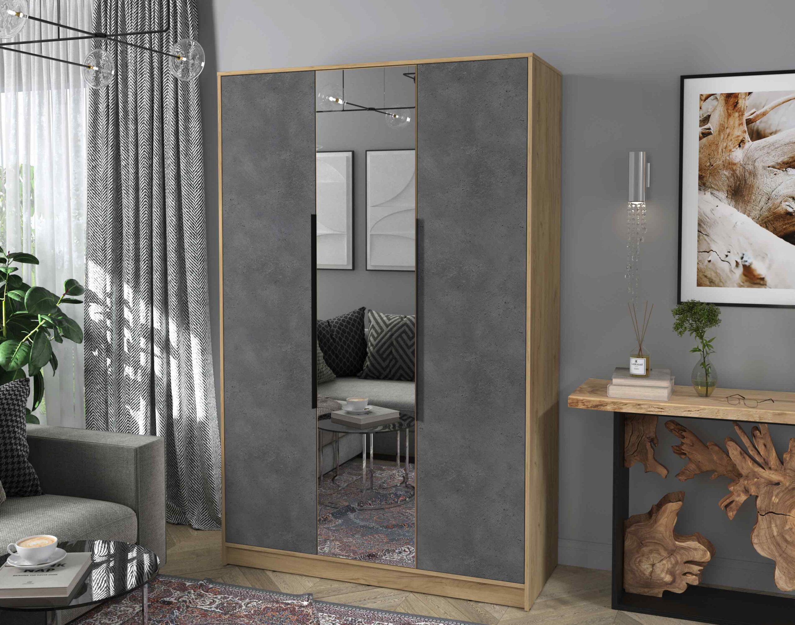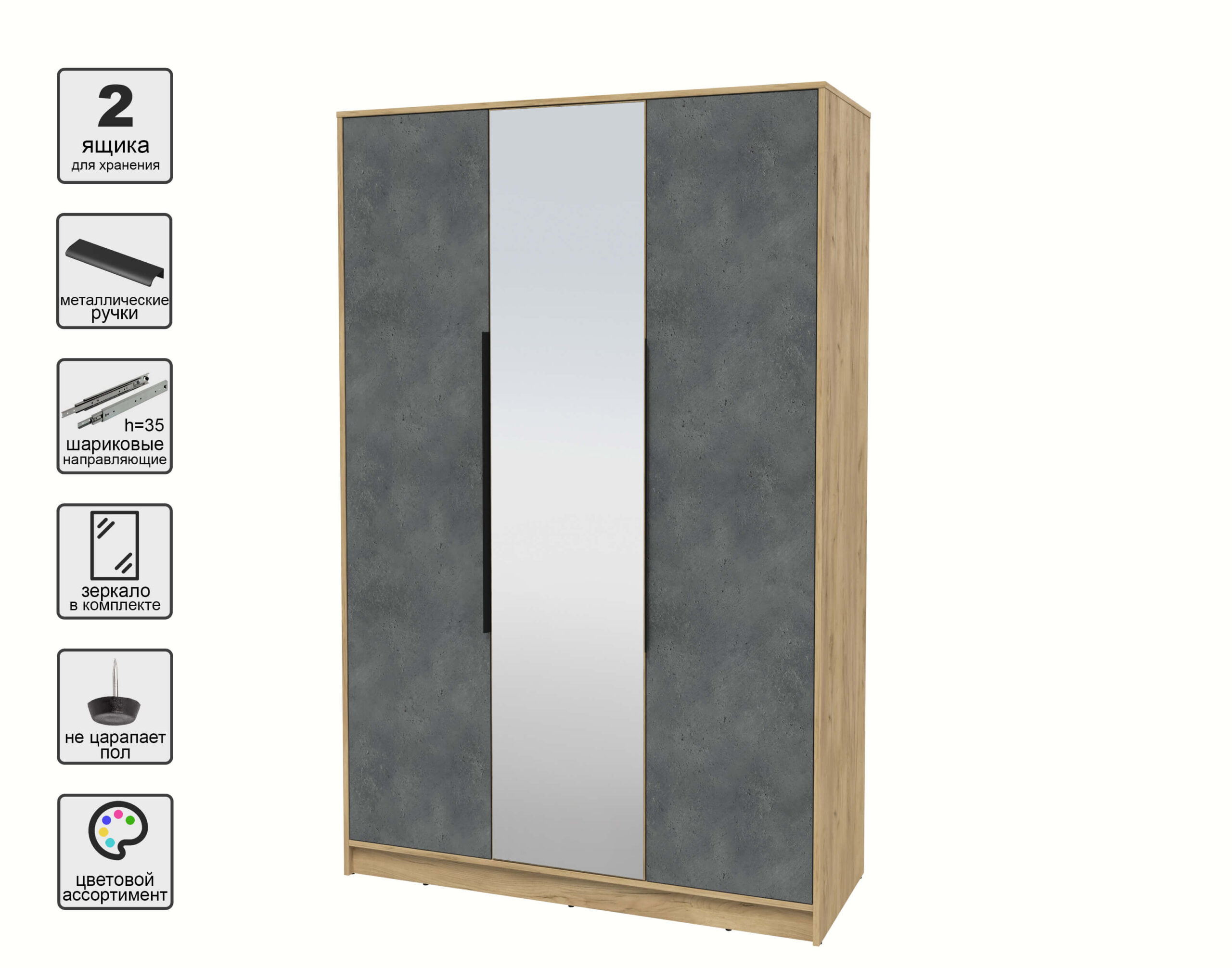 ШКАФ РАСПАШНОЙ КТ-Ш3(З) (ДУБ ЗОЛОТОЙ ЛДСП/ БЕТОН ПОРТЛЕНД ЛДСП) Ш1360 В2128 Г547 - Yuta.by