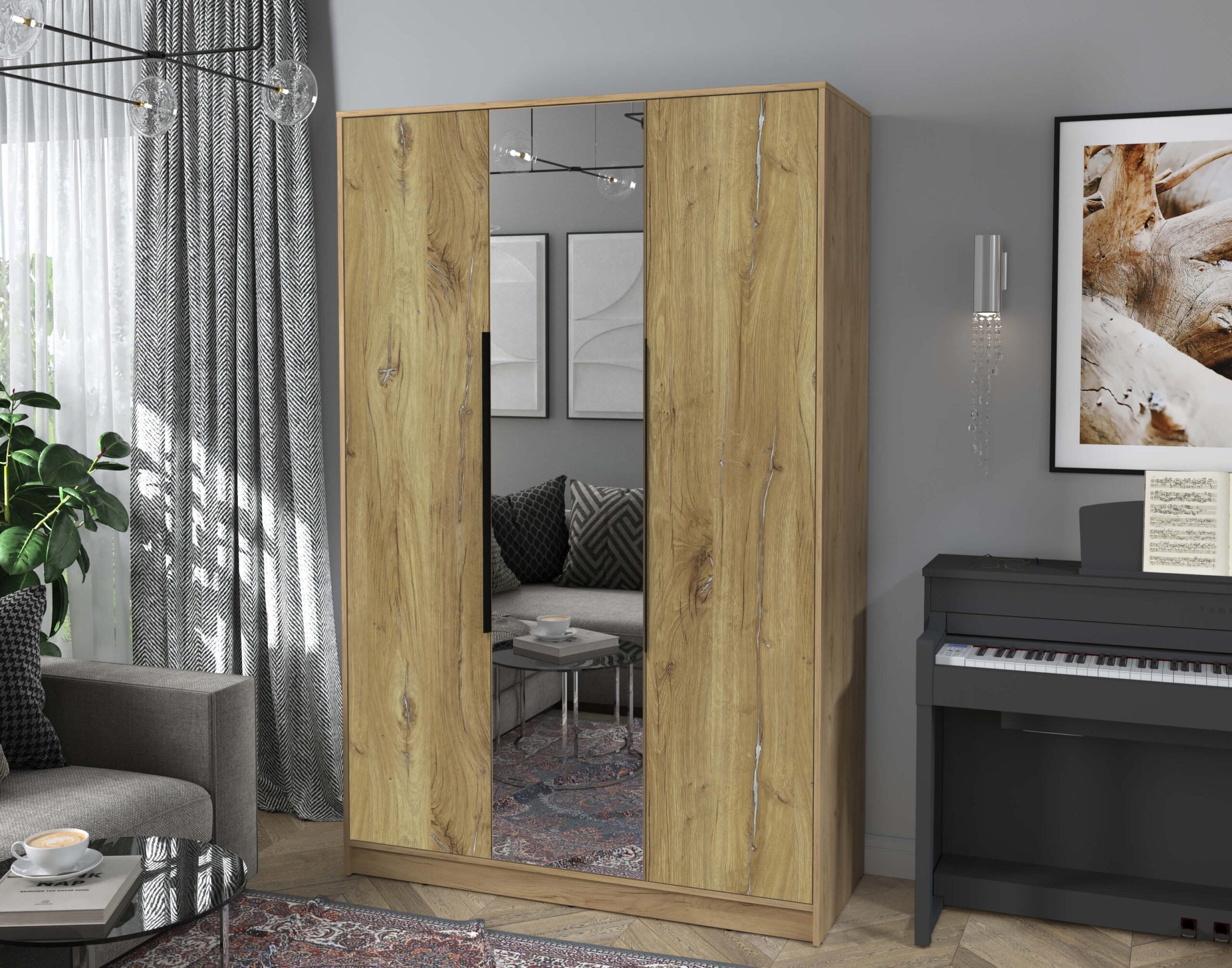 ШКАФ РАСПАШНОЙ КТ-Ш3(З) (ДУБ ЗОЛОТОЙ ЛДСП/ ДУБ НОКС ЛДСП) Ш1360 В2128 Г547 - Yuta.by