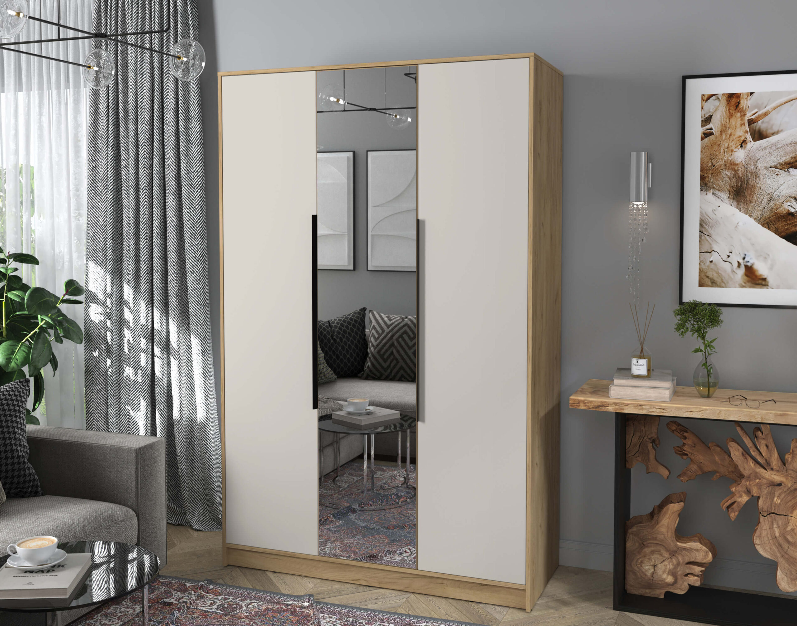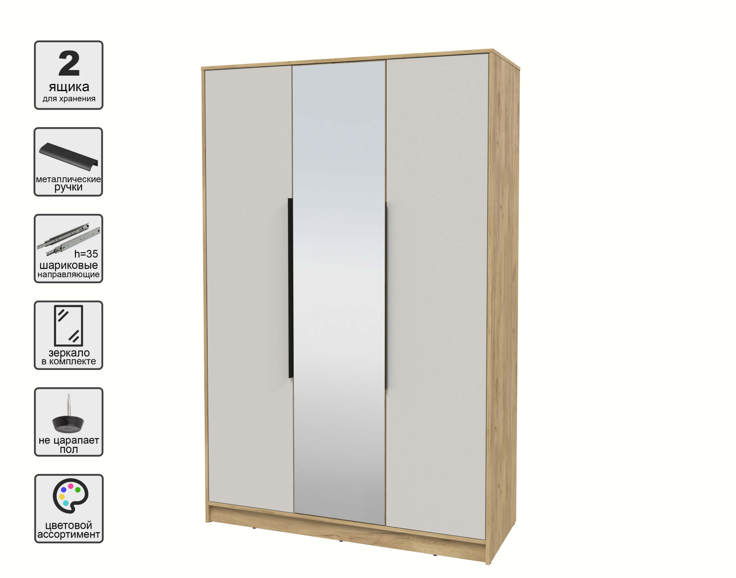 ШКАФ РАСПАШНОЙ КТ-Ш3(З) (ДУБ ЗОЛОТОЙ ЛДСП/ ПЕРСИДСКИЙ ЖЕМЧУГ ЛДСП) Ш1360 В2128 Г547 - Yuta.by