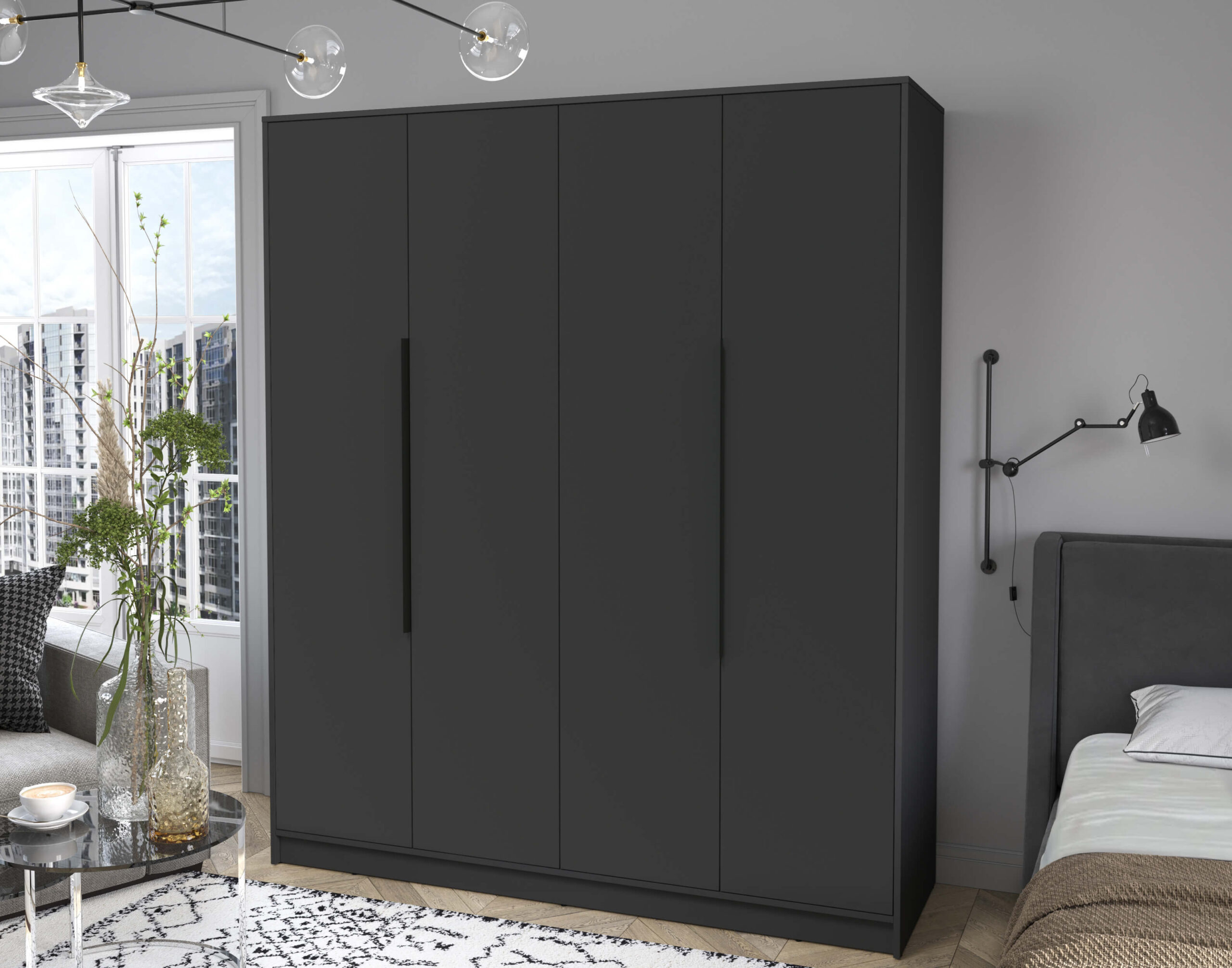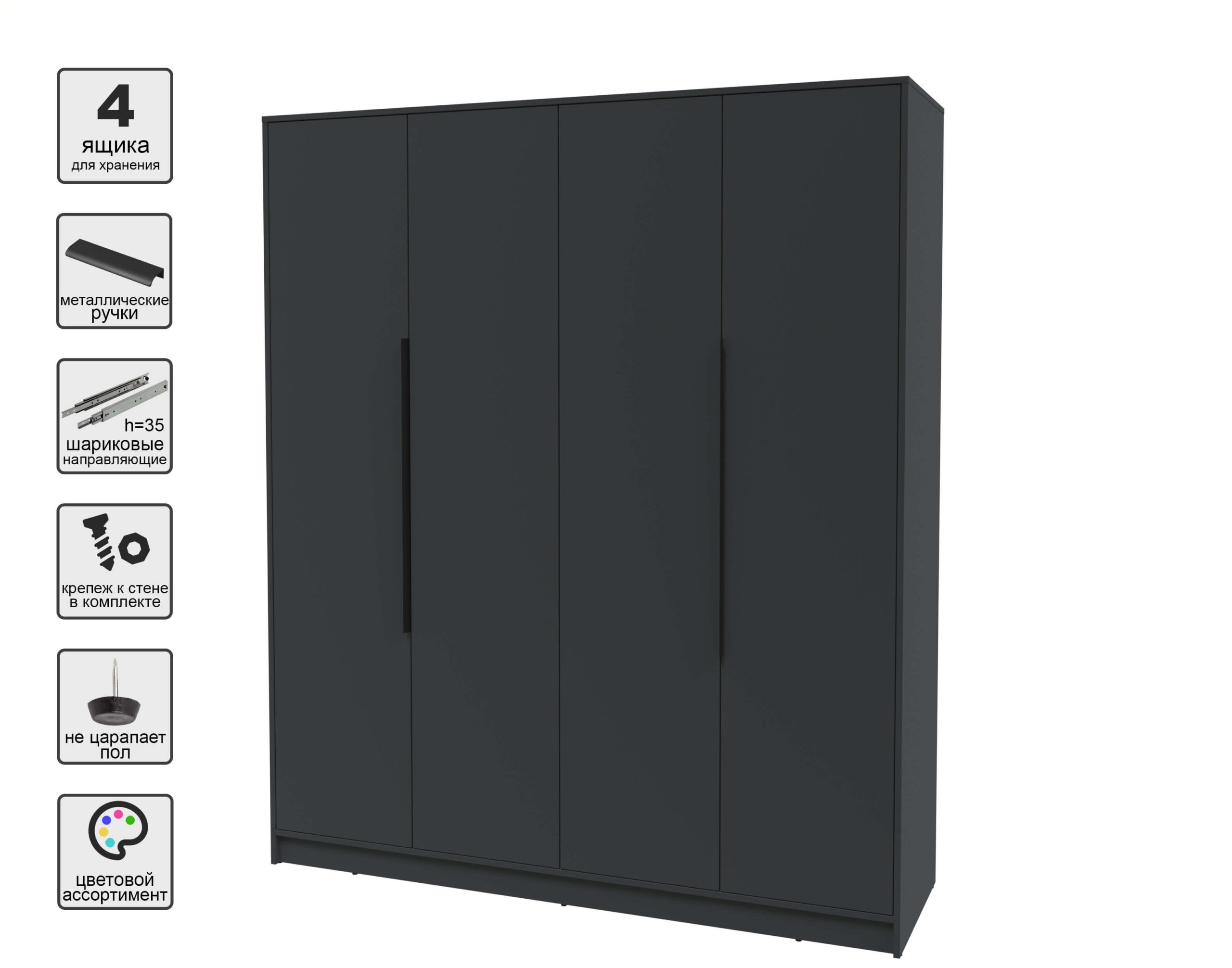 ШКАФ РАСПАШНОЙ КТ-Ш4 (АНТРАЦИТ ЛДСП/ АНТРАЦИТ ЛДСП) Ш1800 В2128 Г547 - Yuta.by