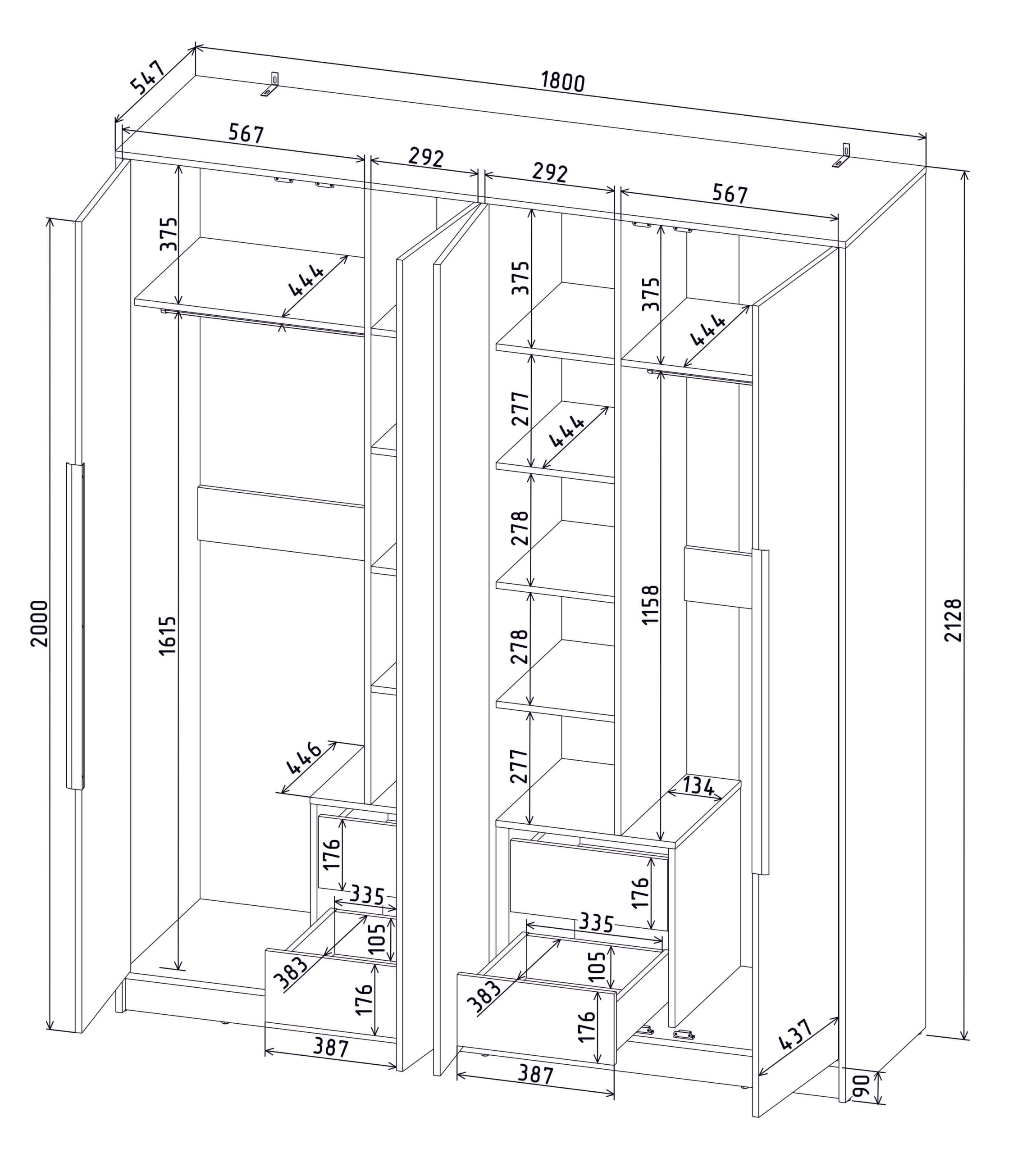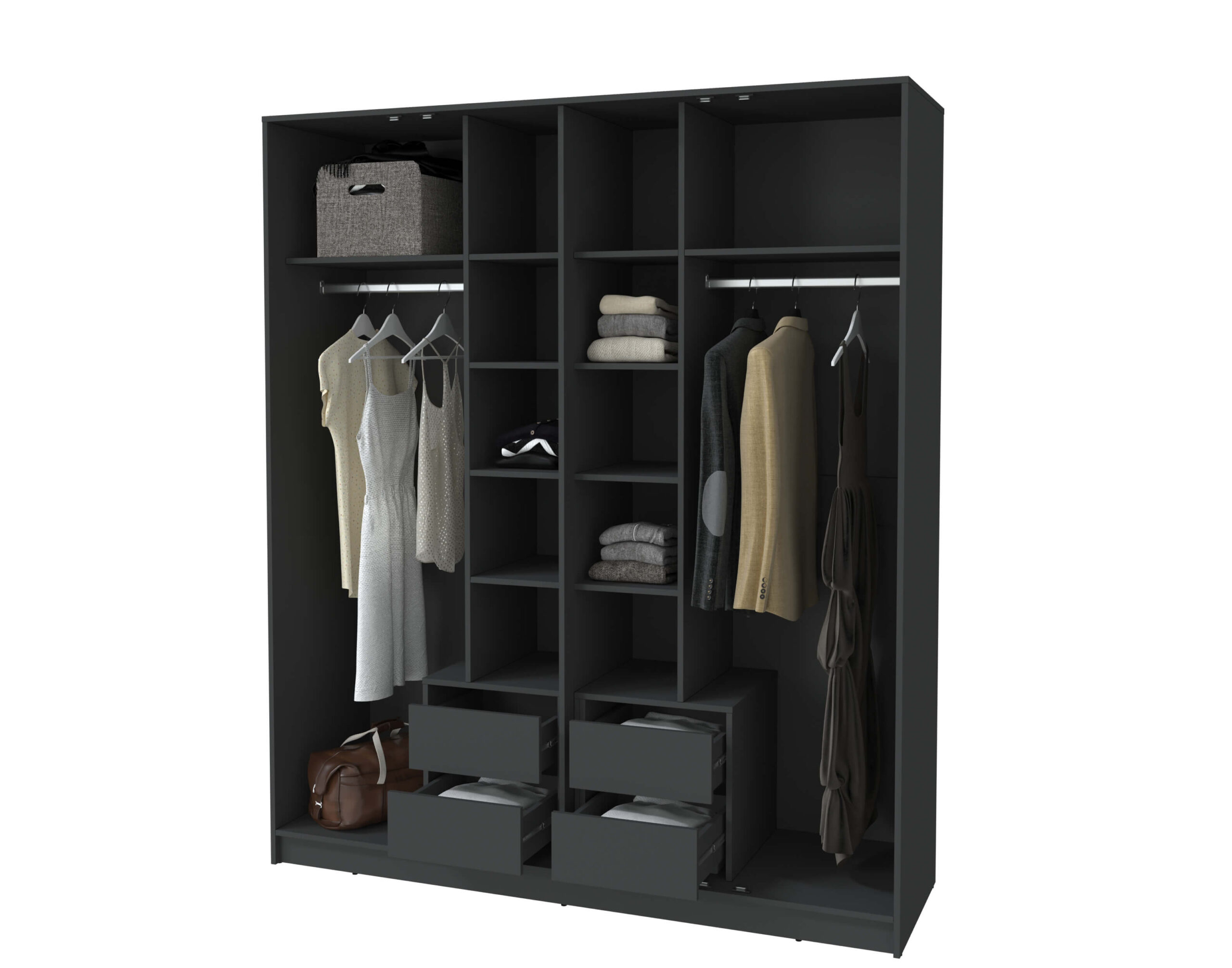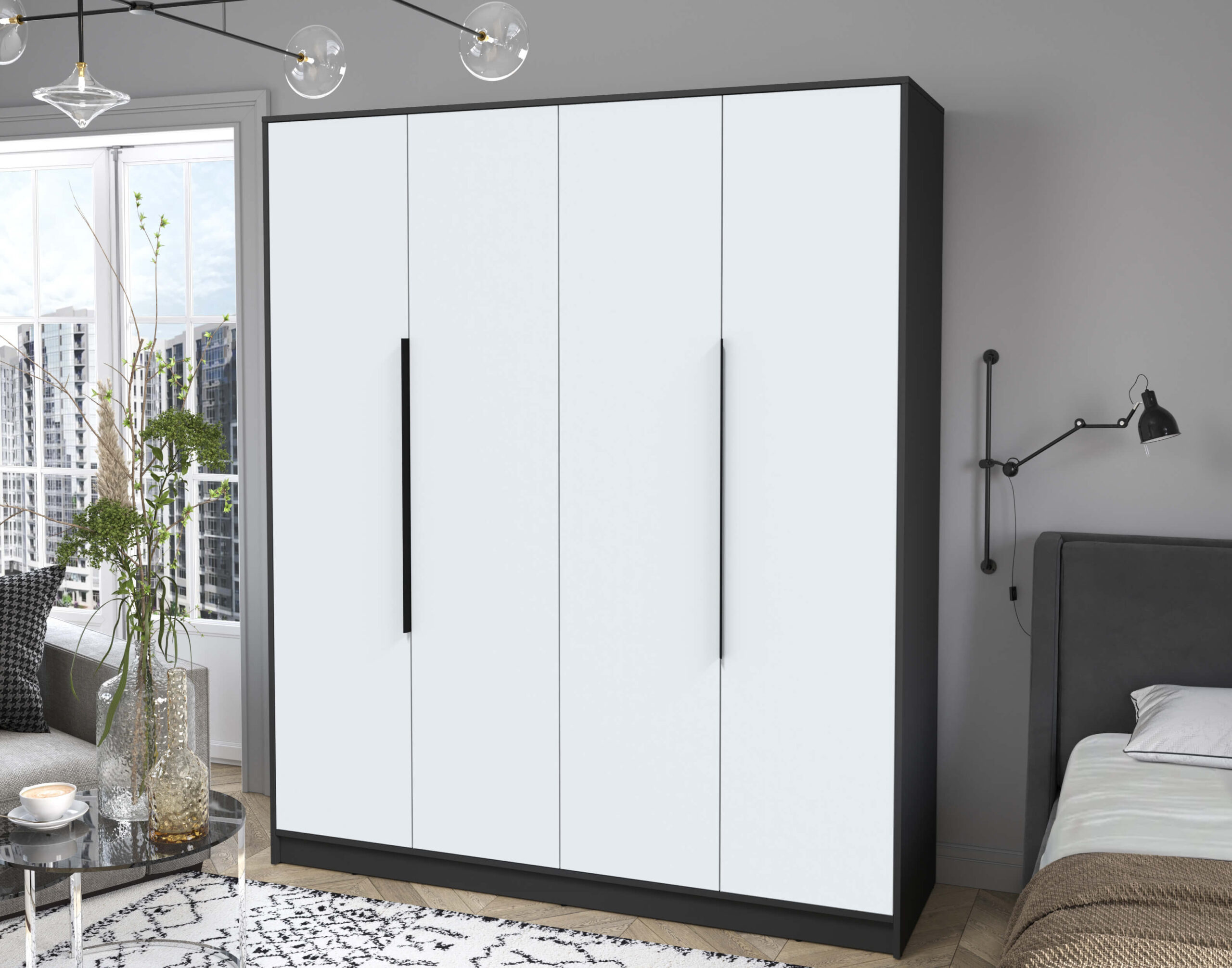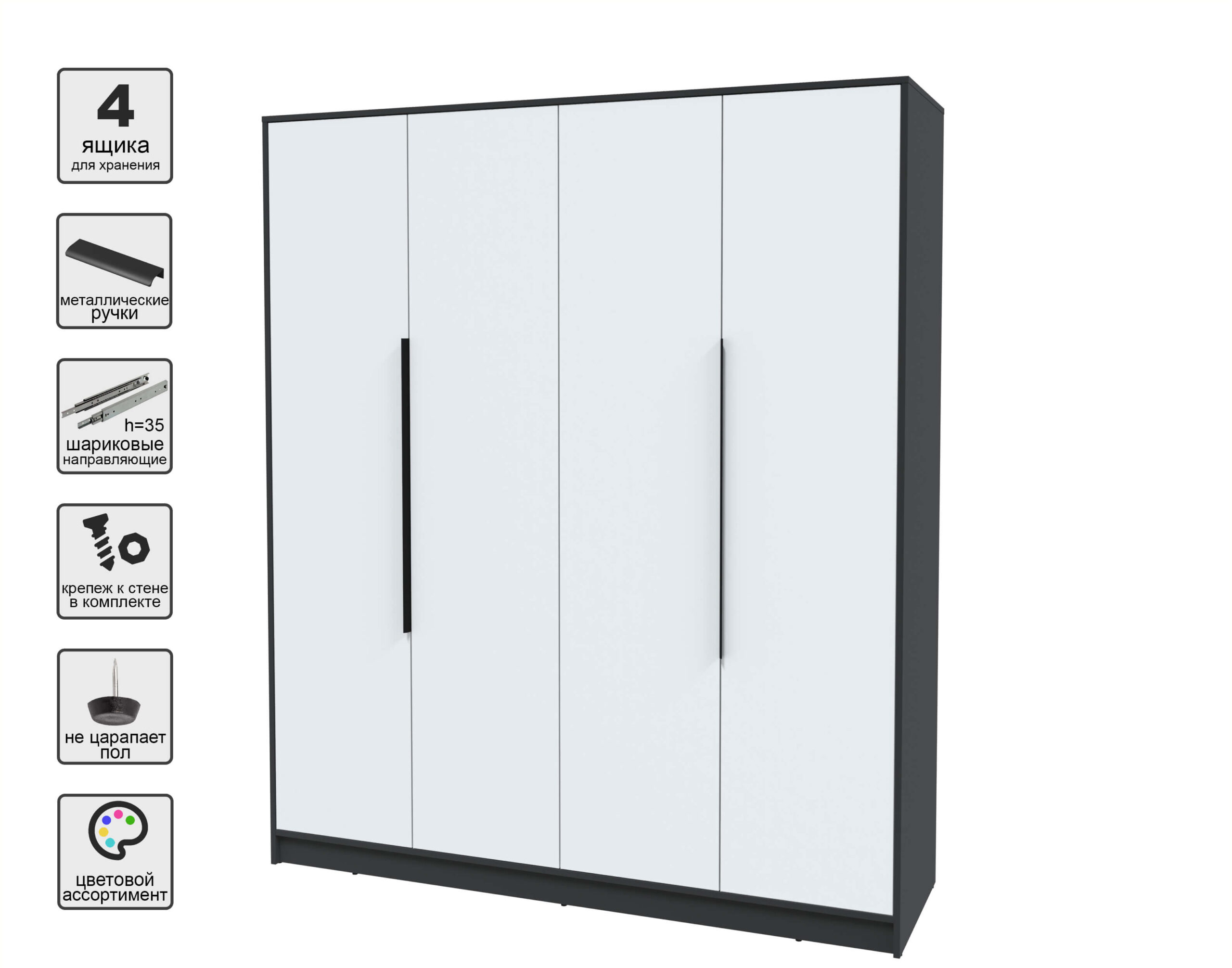 ШКАФ РАСПАШНОЙ КТ-Ш4 (АНТРАЦИТ ЛДСП/ БЕЛЫЙ ПЛАТИНУМ ЛДСП) Ш1800 В2128 Г547 - Yuta.by