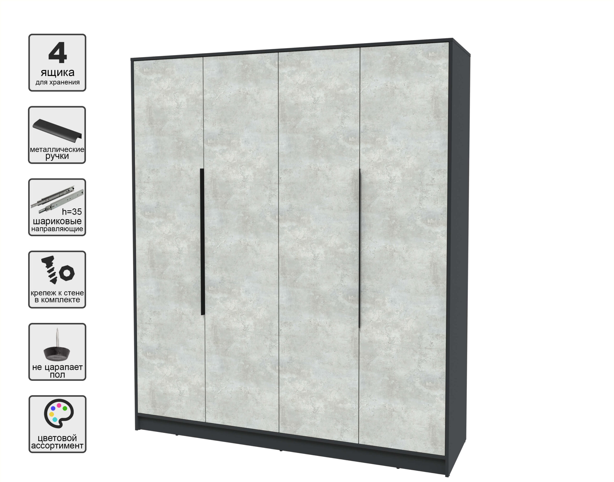 ШКАФ РАСПАШНОЙ КТ-Ш4 (АНТРАЦИТ ЛДСП/ БЕТОН ЛАЙТ ЛДСП) Ш1800 В2128 Г547 - Yuta.by