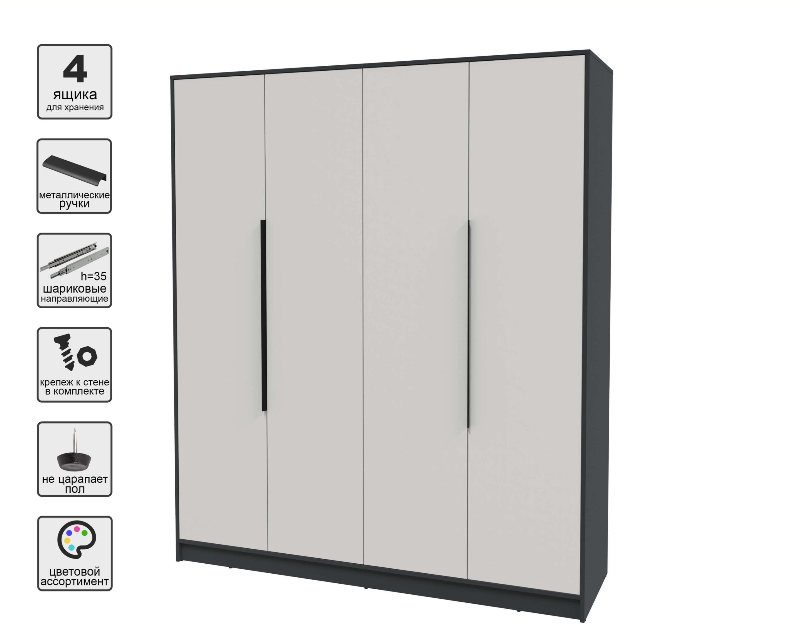 ШКАФ РАСПАШНОЙ КТ-Ш4 (АНТРАЦИТ ЛДСП/ ПЕРСИДСКИЙ ЖЕМЧУГ ЛДСП) Ш1800 В2128 Г547 - Yuta.by