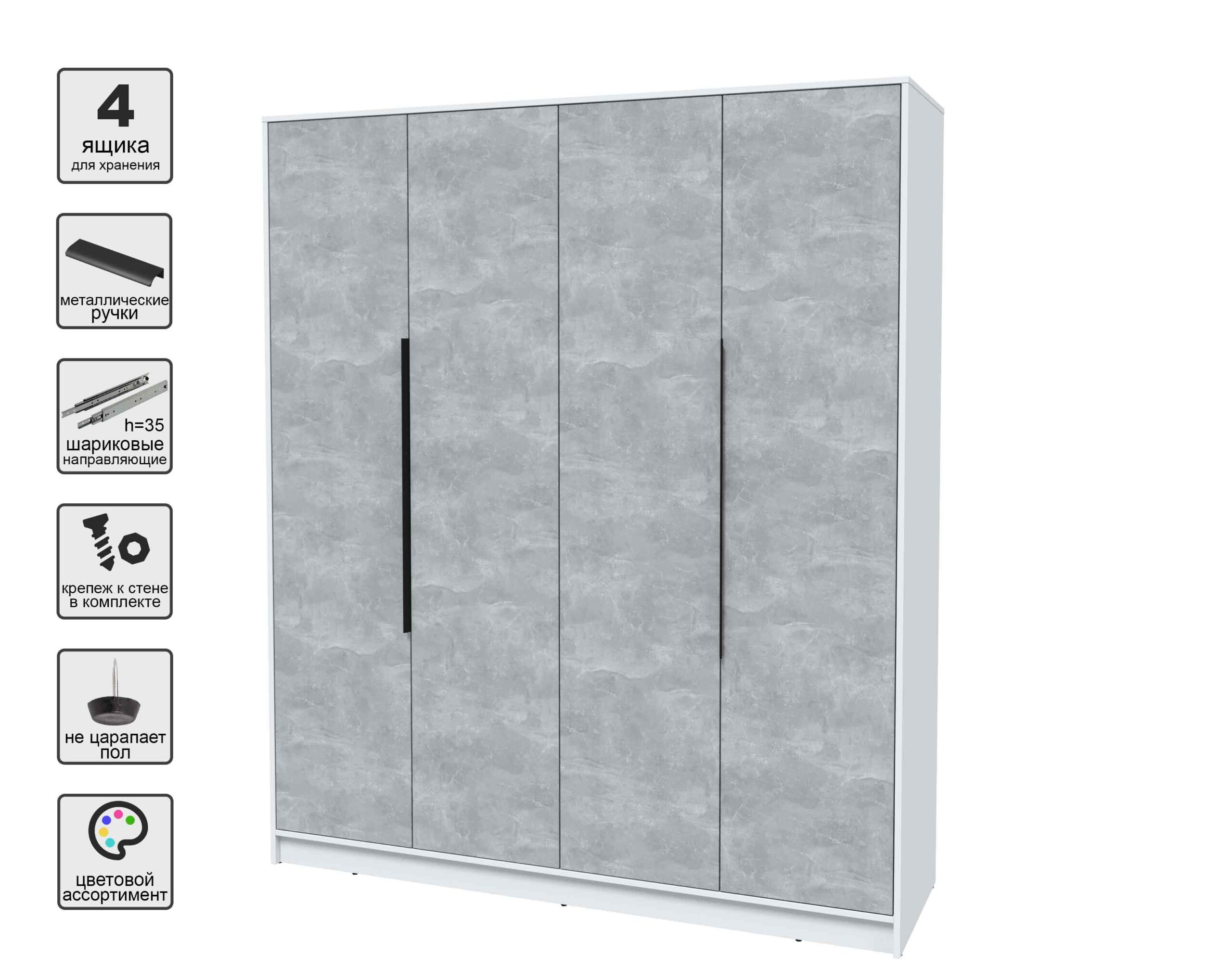 ШКАФ РАСПАШНОЙ КТ-Ш4 (БЕЛЫЙ ЛДСП/ БЕТОН ЛДСП) Ш1800 В2128 Г547 - Yuta.by