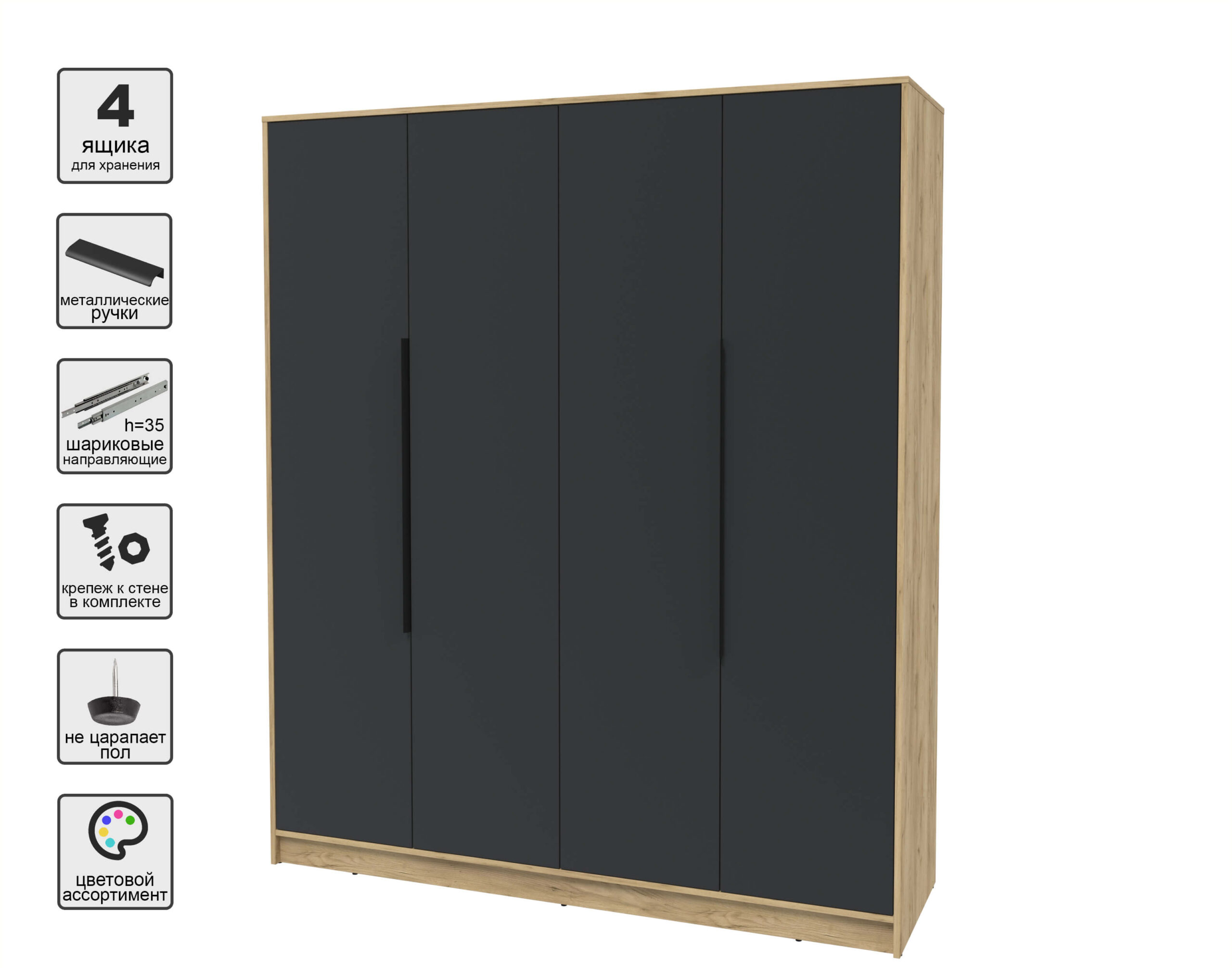ШКАФ РАСПАШНОЙ КТ-Ш4 (ДУБ ЗОЛОТОЙ ЛДСП/ АНТРАЦИТ ЛДСП) Ш1800 В2128 Г547 - Yuta.by