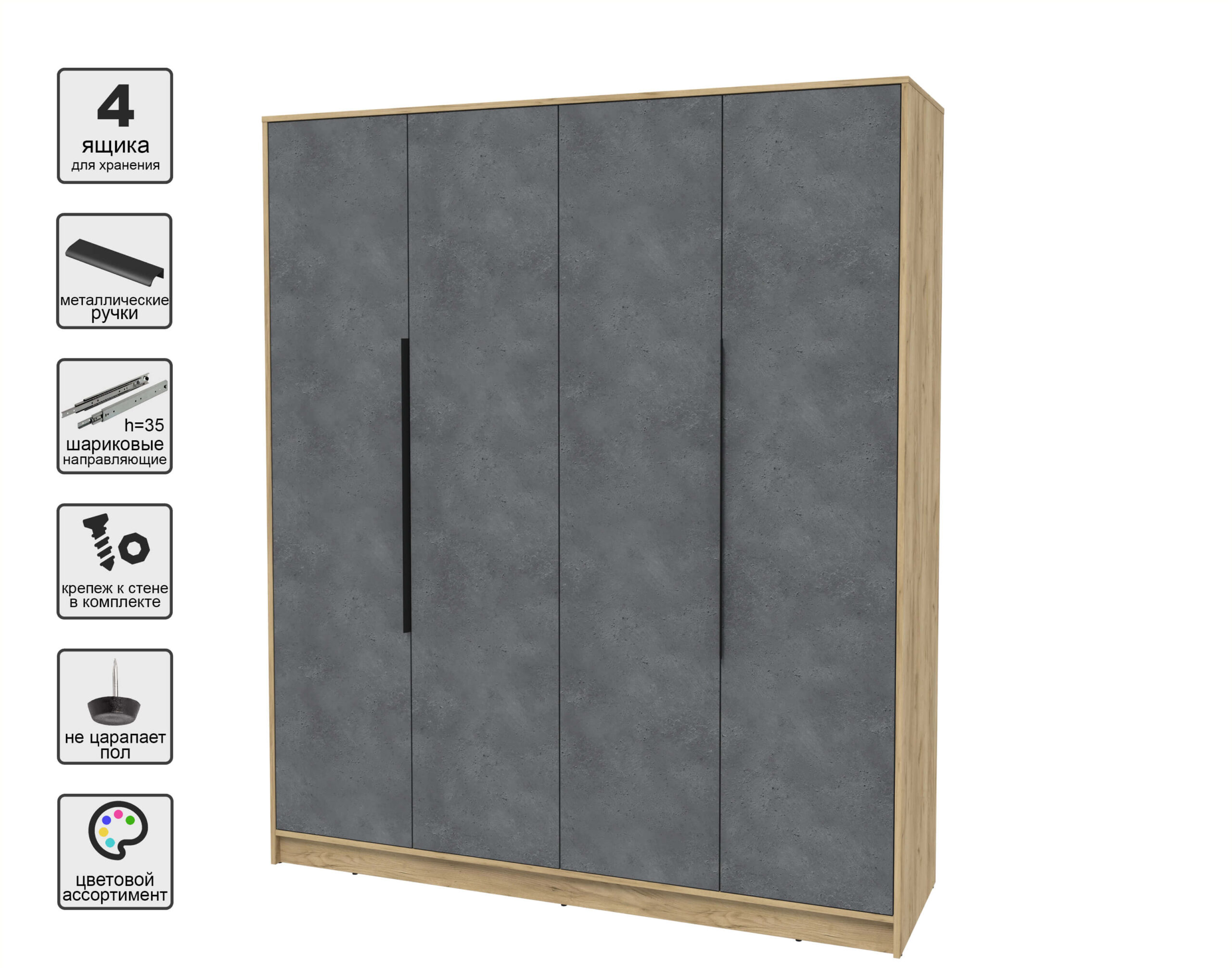 ШКАФ РАСПАШНОЙ КТ-Ш4 (ДУБ ЗОЛОТОЙ ЛДСП/ БЕТОН ПОРТЛЕНД ЛДСП) Ш1800 В2128 Г547 - Yuta.by