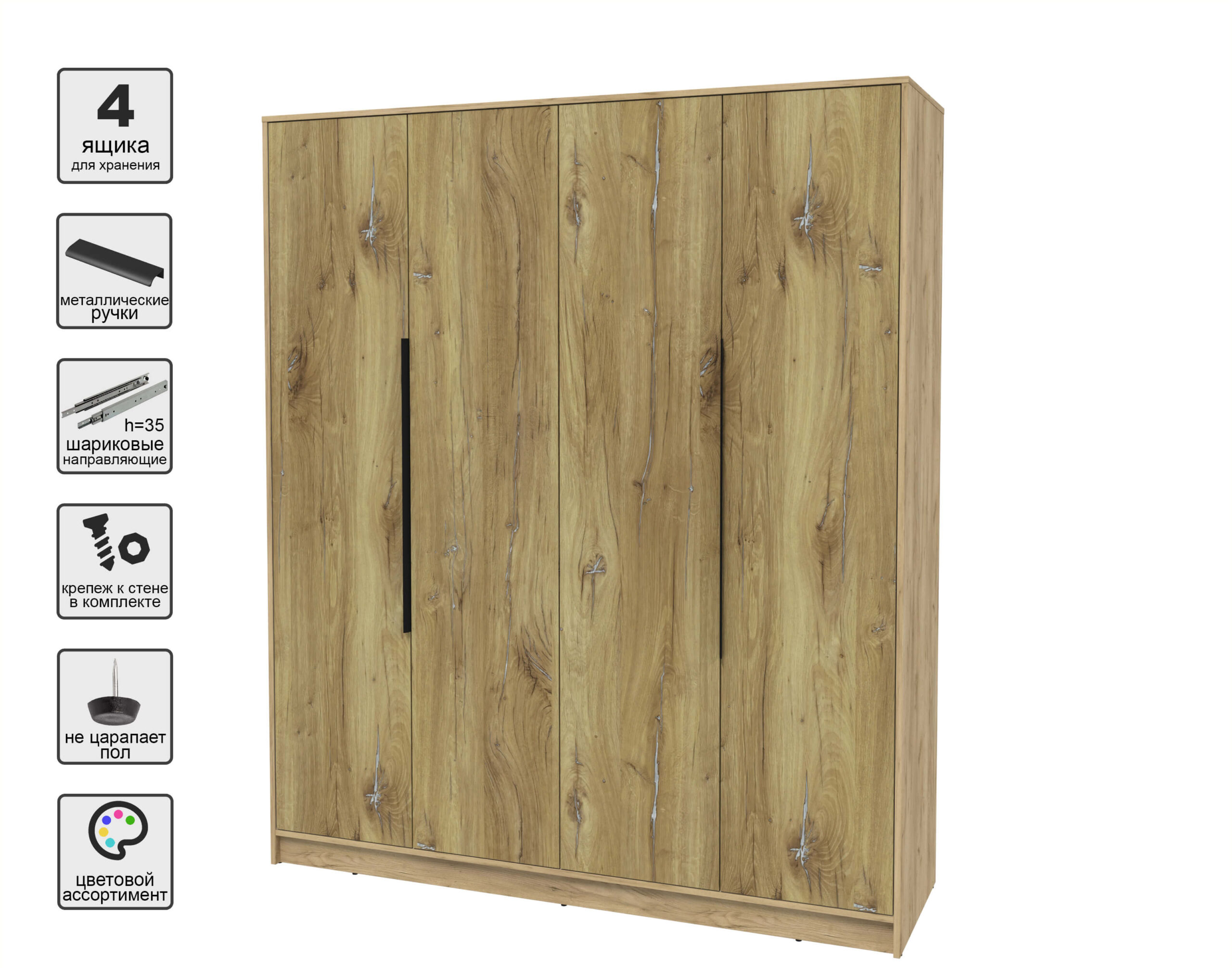 ШКАФ РАСПАШНОЙ КТ-Ш4 (ДУБ ЗОЛОТОЙ ЛДСП/ ДУБ НОКС ЛДСП) Ш1800 В2128 Г547 - Yuta.by