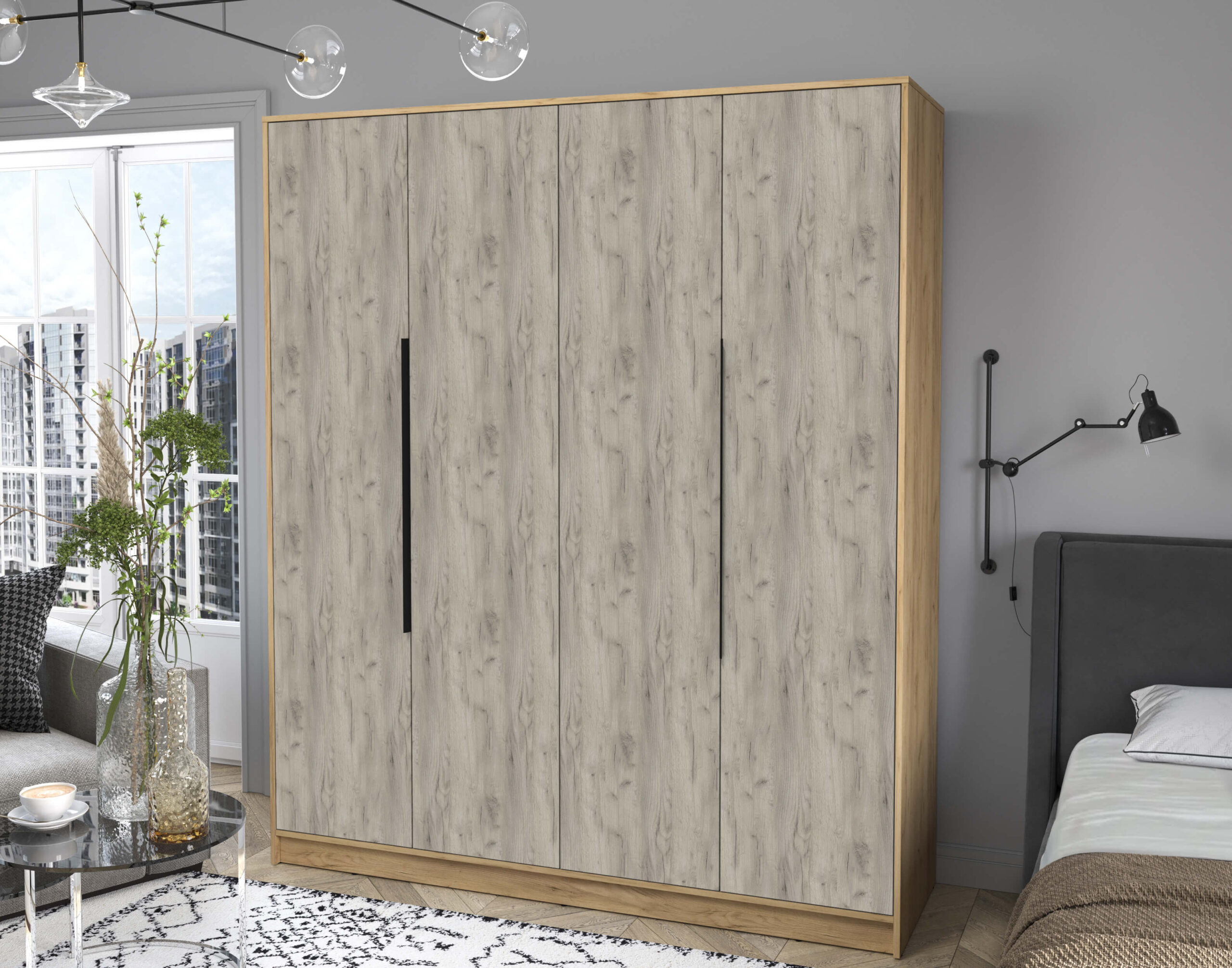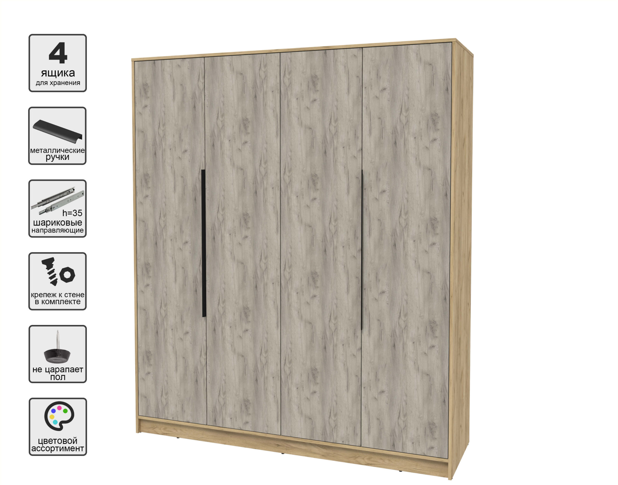 ШКАФ РАСПАШНОЙ КТ-Ш4 (ДУБ ЗОЛОТОЙ ЛДСП/ ДУБ СЕРЫЙ ЛДСП) Ш1800 В2128 Г547 - Yuta.by