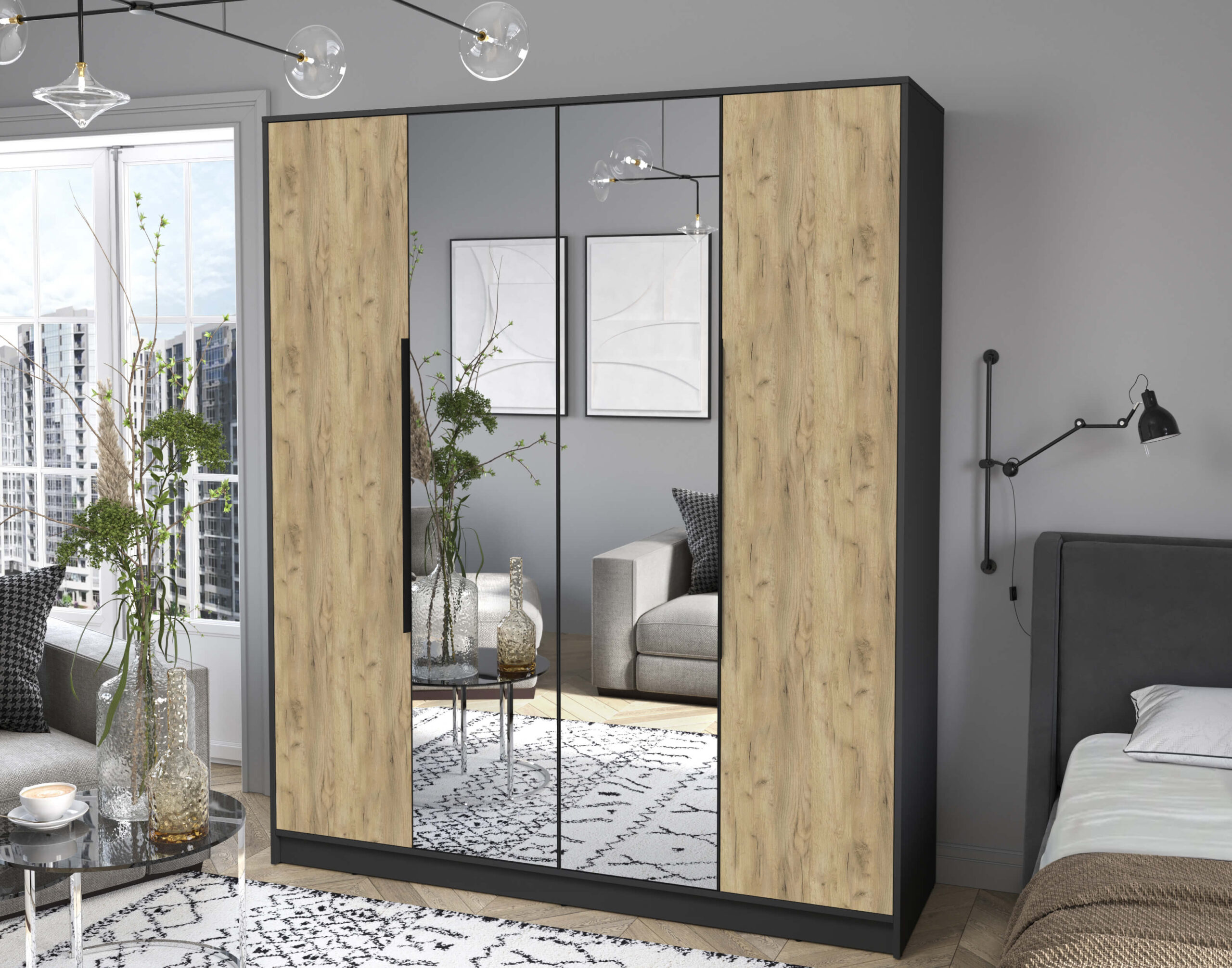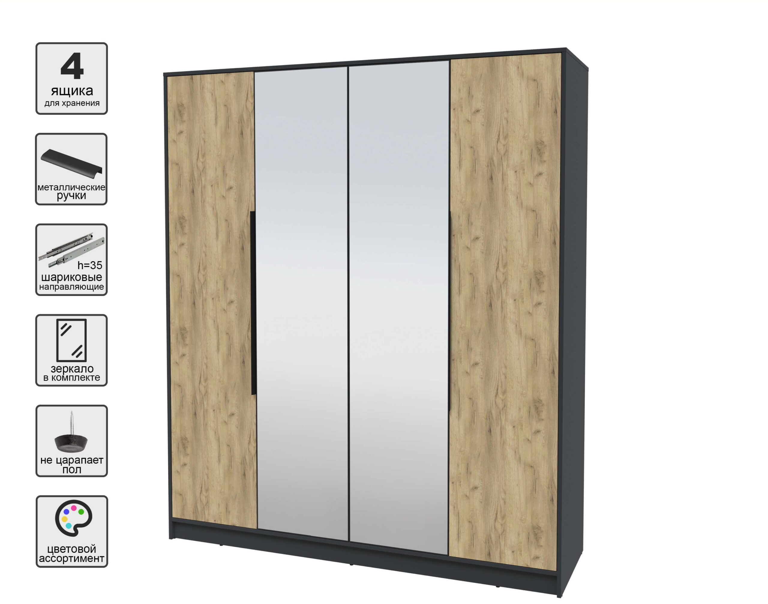 ШКАФ РАСПАШНОЙ КТ-Ш4(З) (АНТРАЦИТ ЛДСП/ ДУБ ЗОЛОТОЙ ЛДСП) Ш1800 В2128 Г547 - Yuta.by