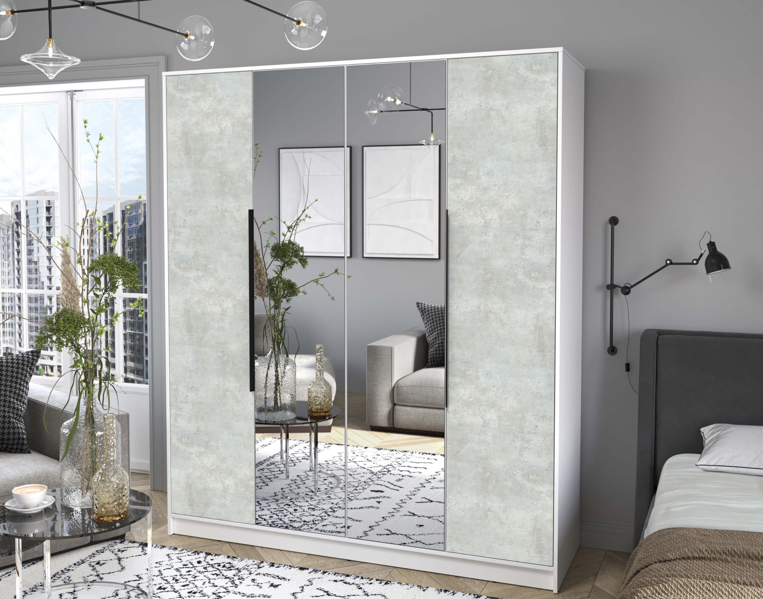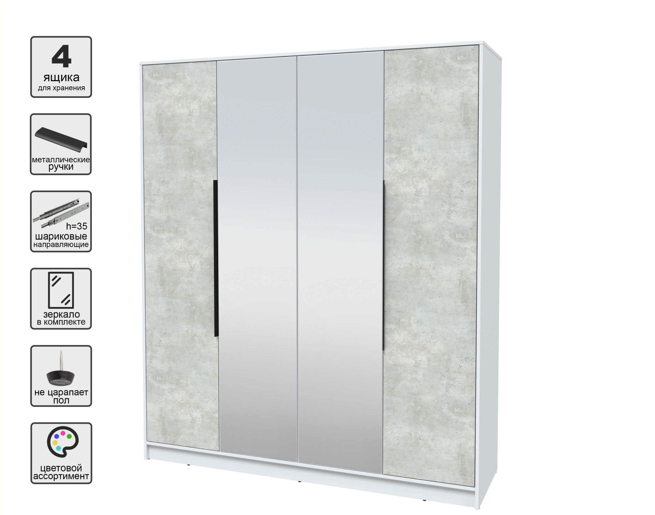 ШКАФ РАСПАШНОЙ КТ-Ш4(З) (БЕЛЫЙ ЛДСП/ БЕТОН ЛАЙТ ЛДСП) Ш1800 В2128 Г547 - Yuta.by