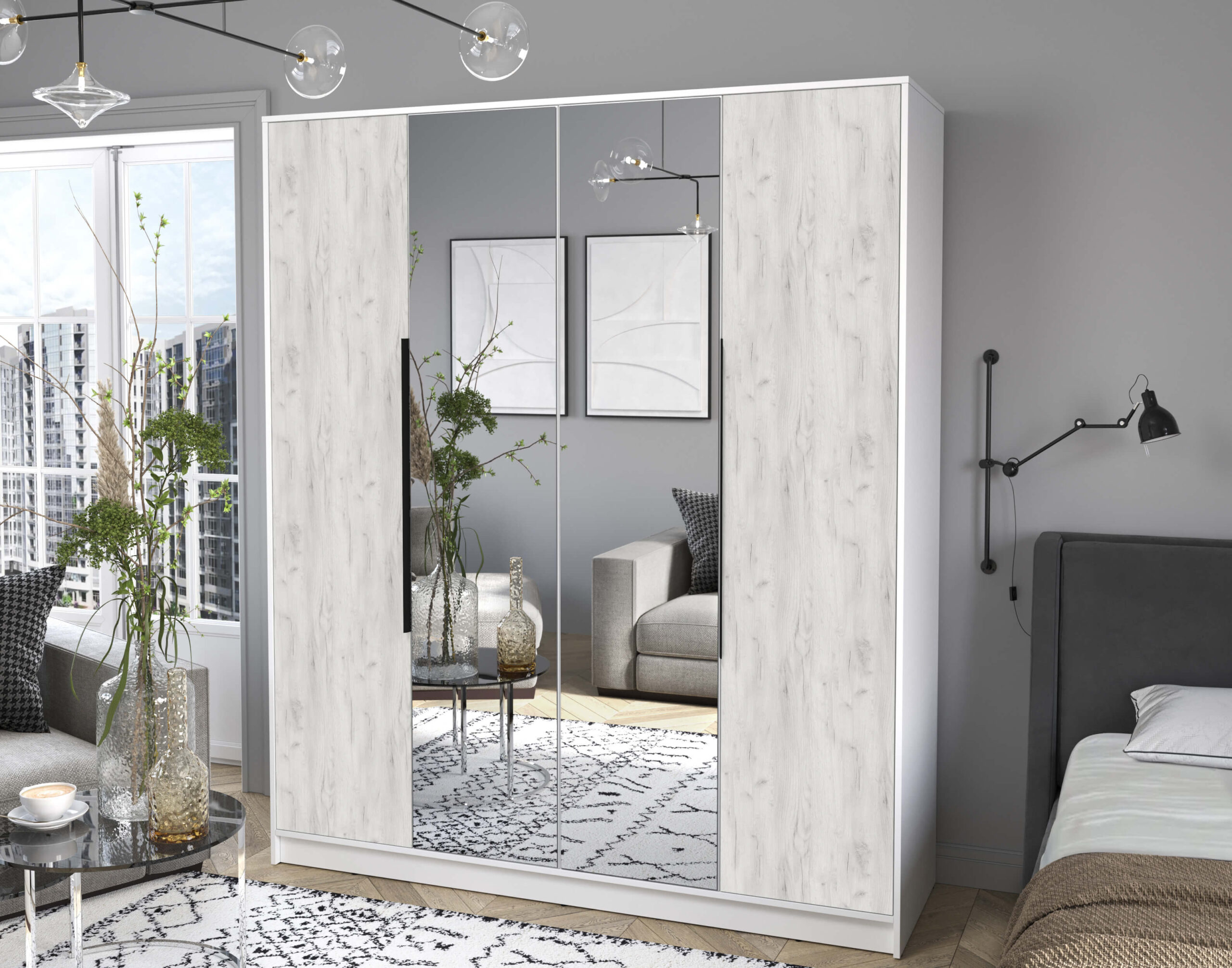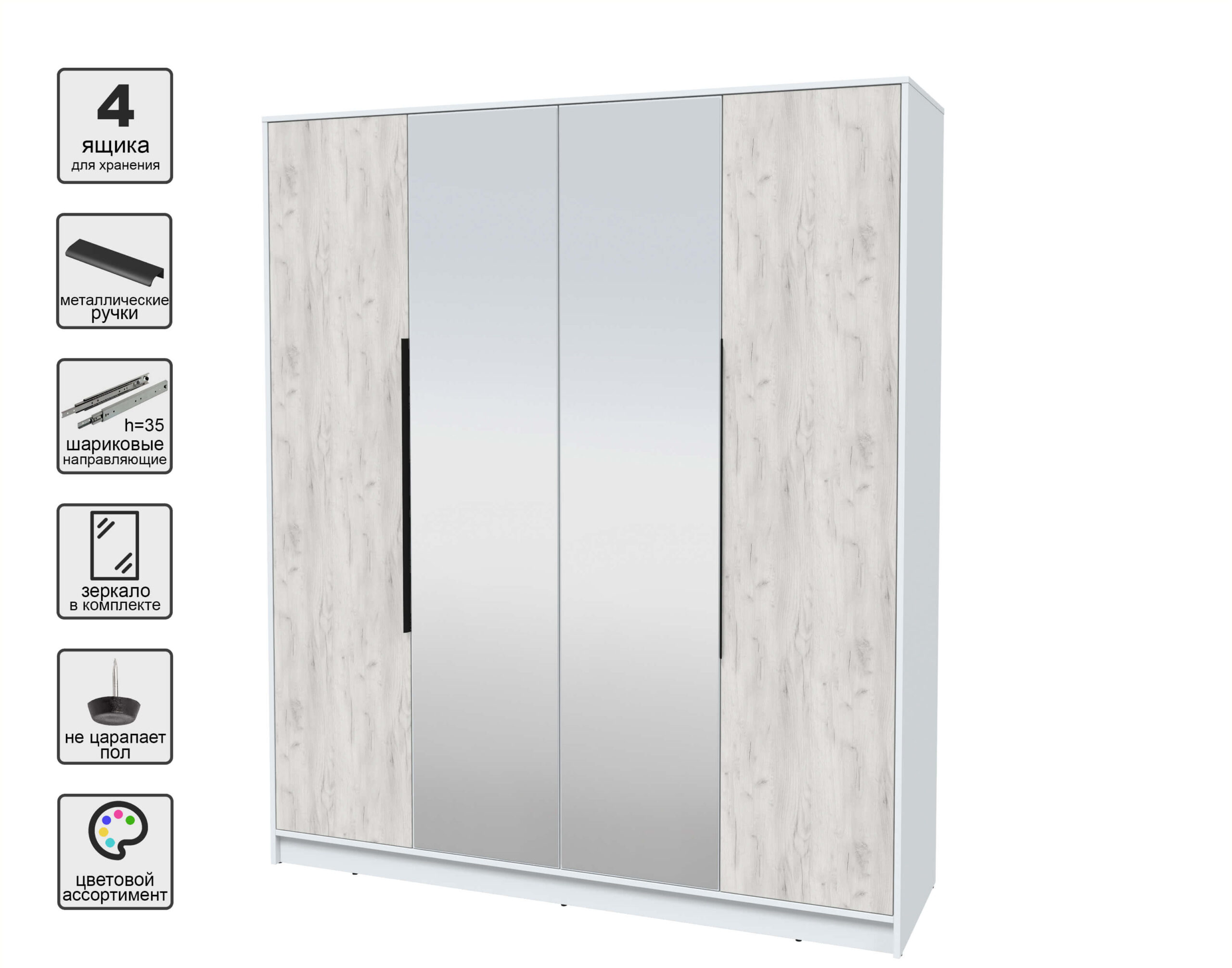 ШКАФ РАСПАШНОЙ КТ-Ш4(З) (БЕЛЫЙ ЛДСП/ ДУБ БЕЛЫЙ ЛДСП) Ш1800 В2128 Г547 - Yuta.by