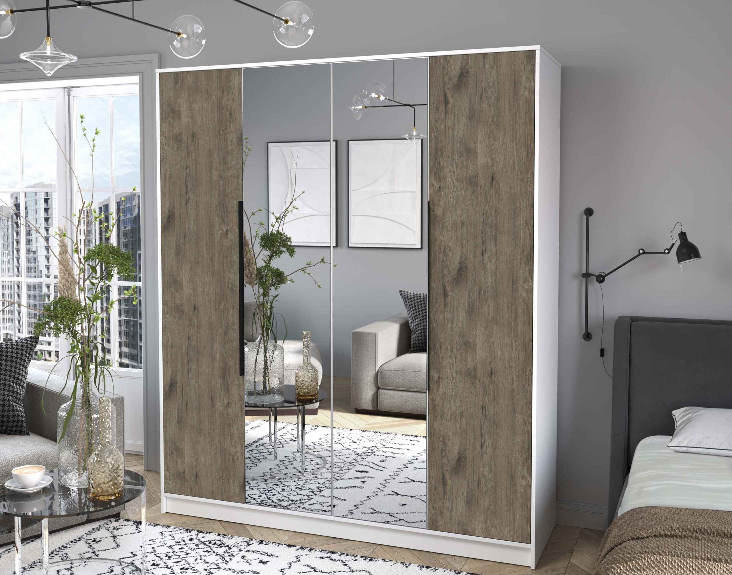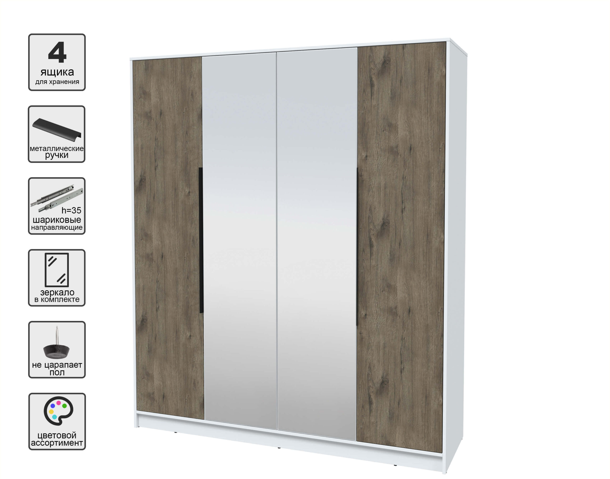 ШКАФ РАСПАШНОЙ КТ-Ш4(З) (БЕЛЫЙ ЛДСП/ ДУБ ВЕЛЛИНГТОН ЛДСП) Ш1800 В2128 Г547