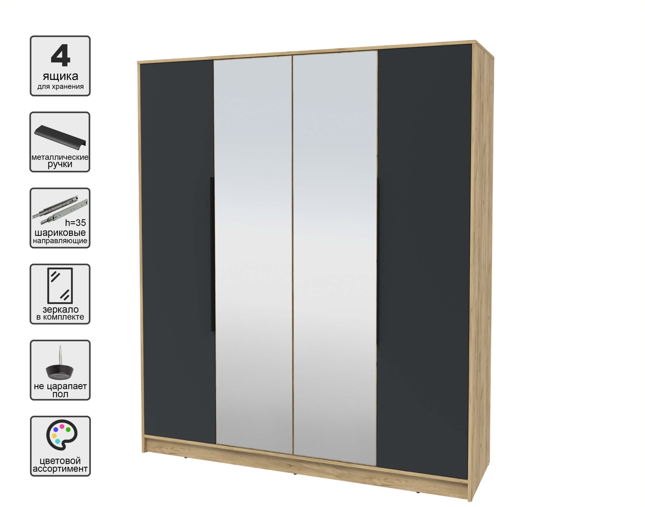 ШКАФ РАСПАШНОЙ КТ-Ш4(З) (ДУБ ЗОЛОТОЙ ЛДСП/ АНТРАЦИТ ЛДСП) Ш1800 В2128 Г547 - Yuta.by