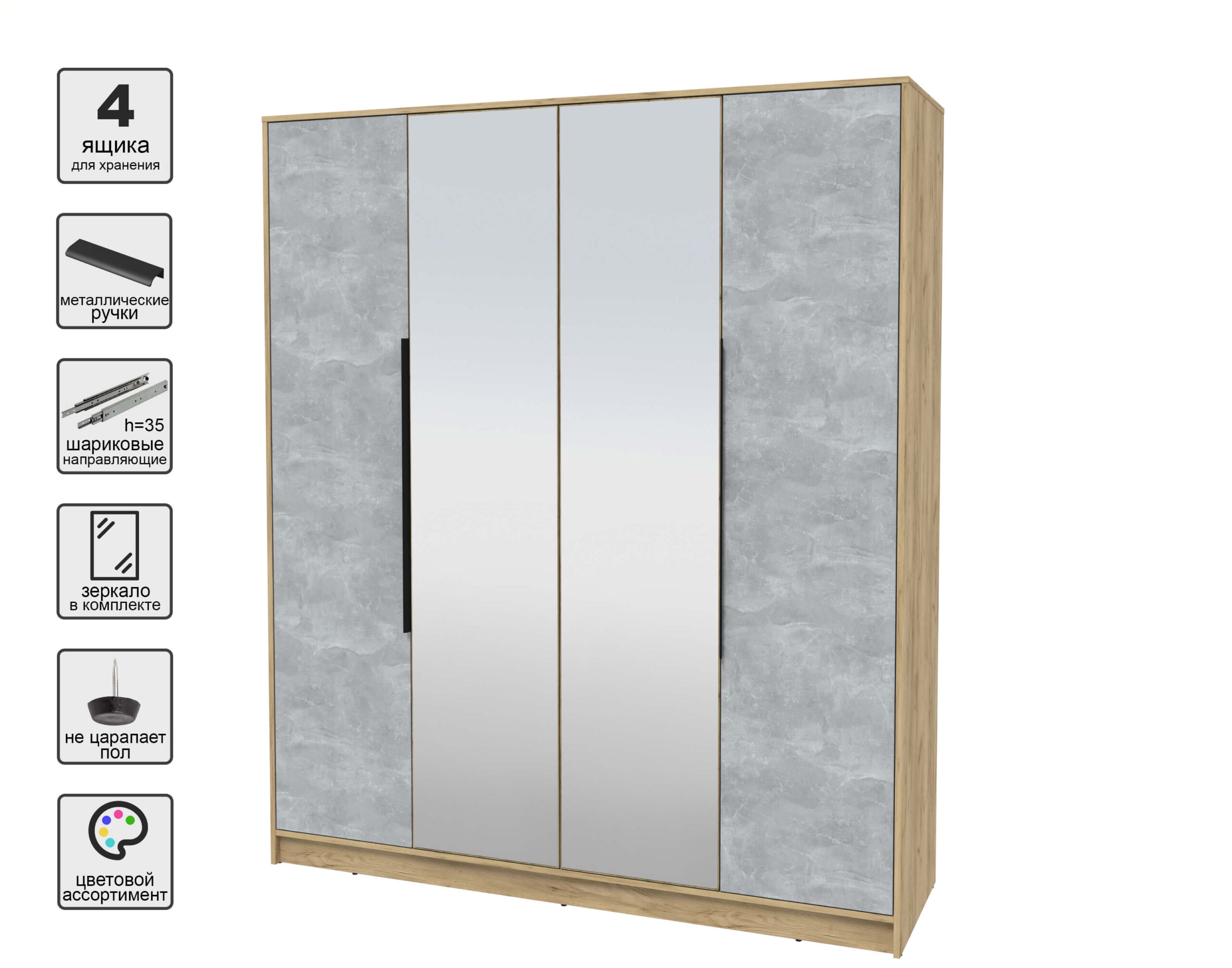 ШКАФ РАСПАШНОЙ КТ-Ш4(З) (ДУБ ЗОЛОТОЙ ЛДСП/ БЕТОН ЛДСП) Ш1800 В2128 Г547 - Yuta.by