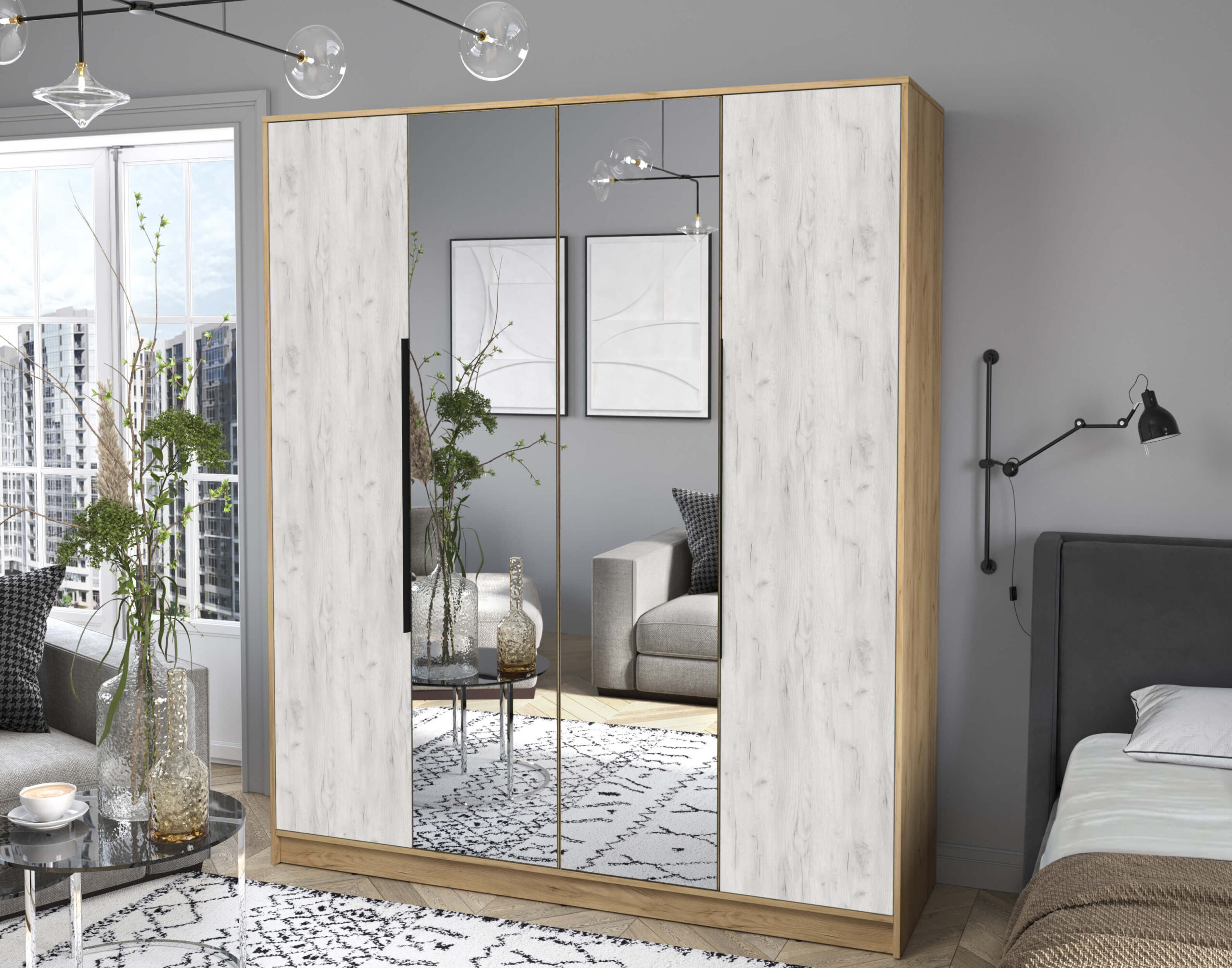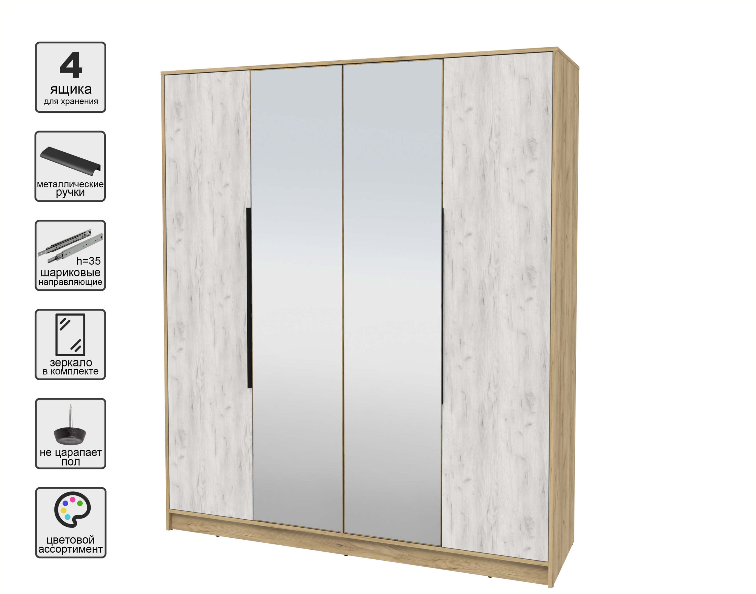 ШКАФ РАСПАШНОЙ КТ-Ш4(З) (ДУБ ЗОЛОТОЙ ЛДСП/ ДУБ БЕЛЫЙ ЛДСП) Ш1800 В2128 Г547 - Yuta.by