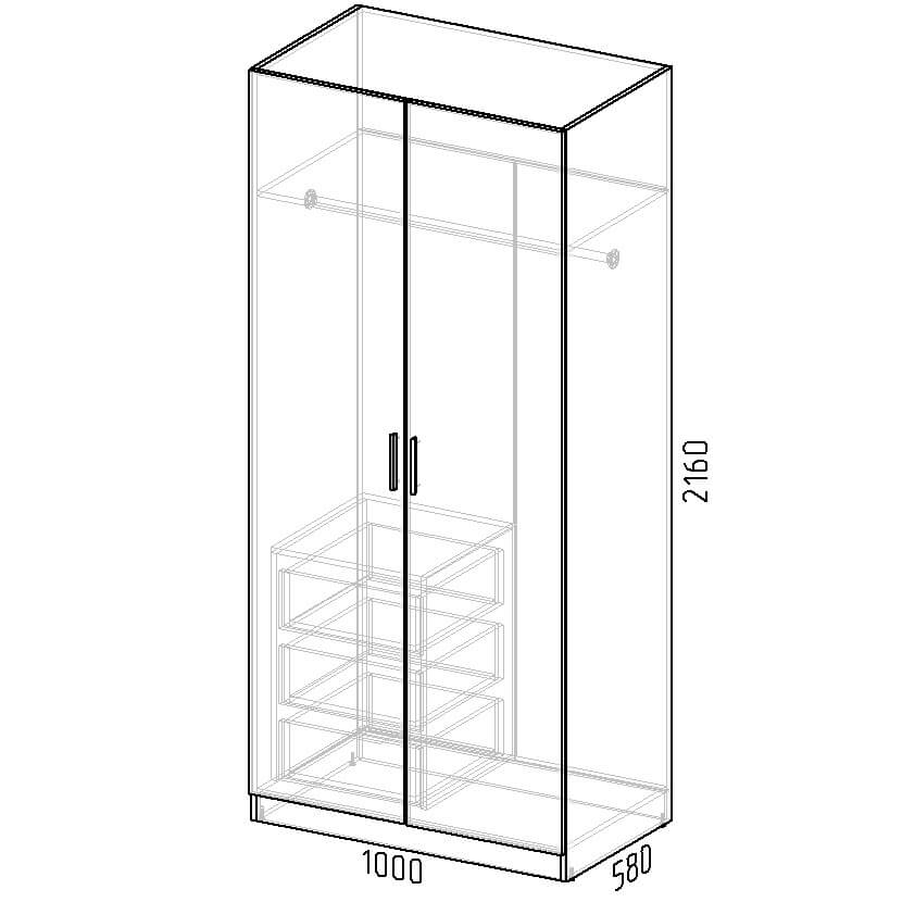 ШКАФ РАСПАШНОЙ МАРСЕЛЬ МР 09 MN (МДФ ГРАФИТ СОФТ) Ш1000 В2160 Г580