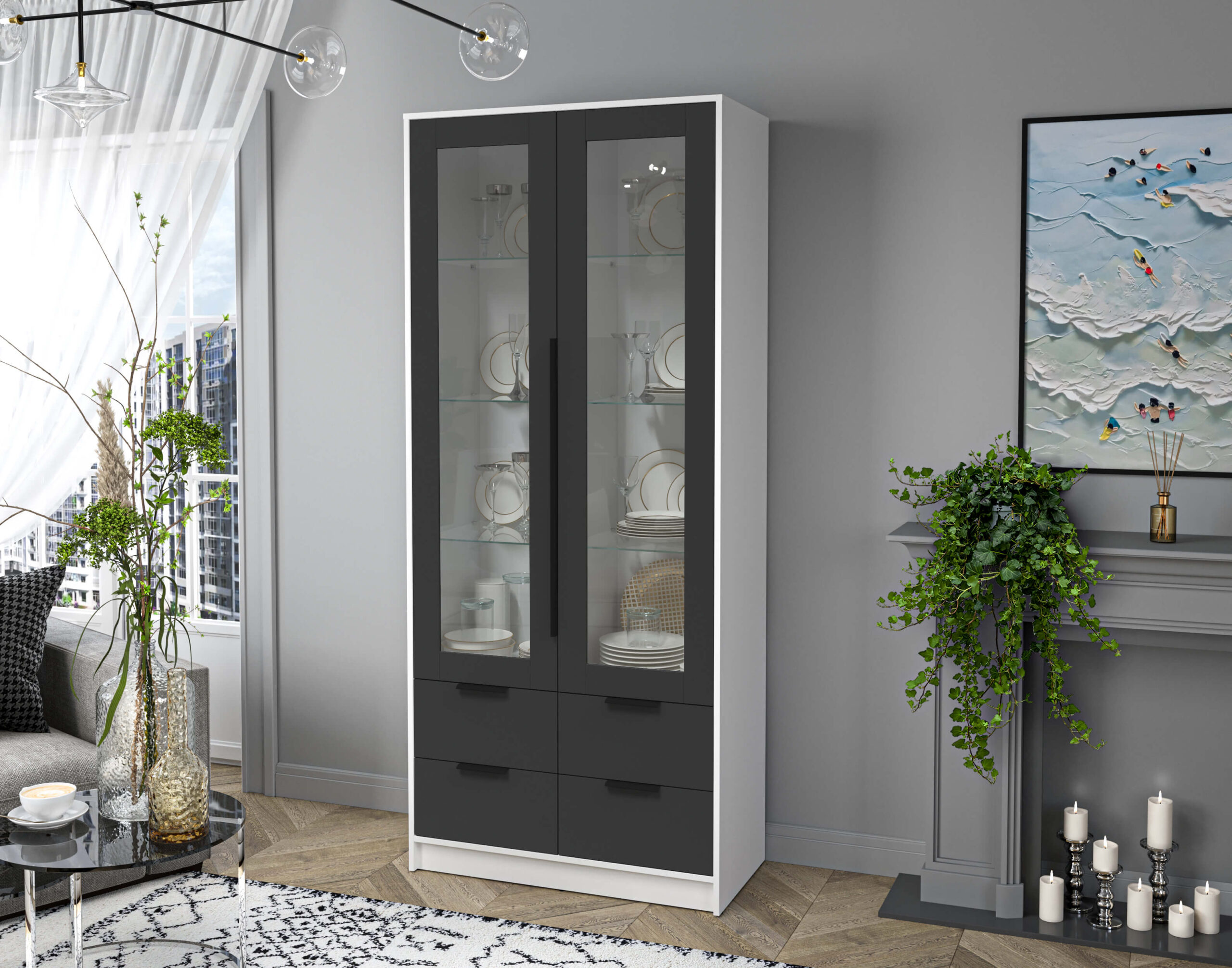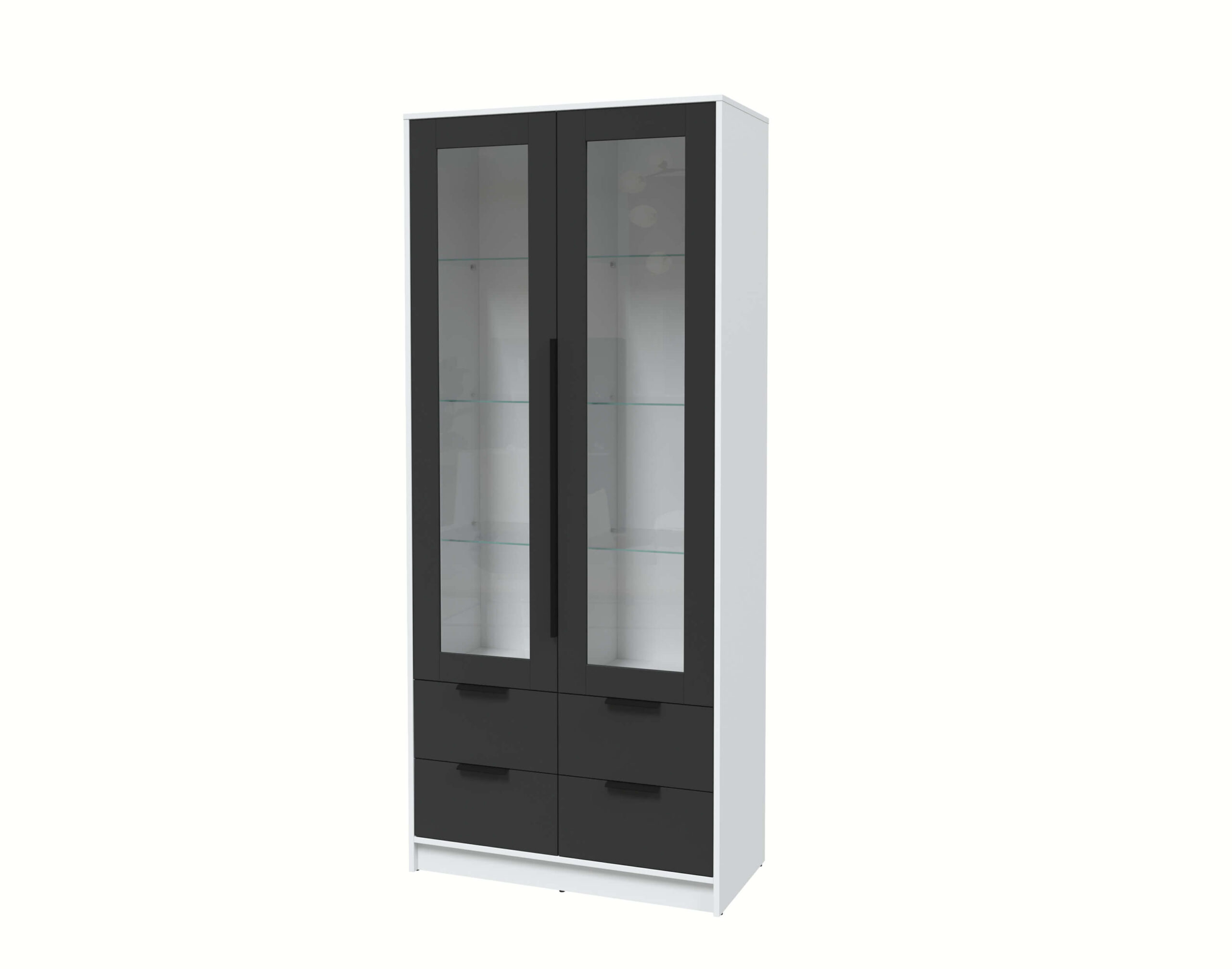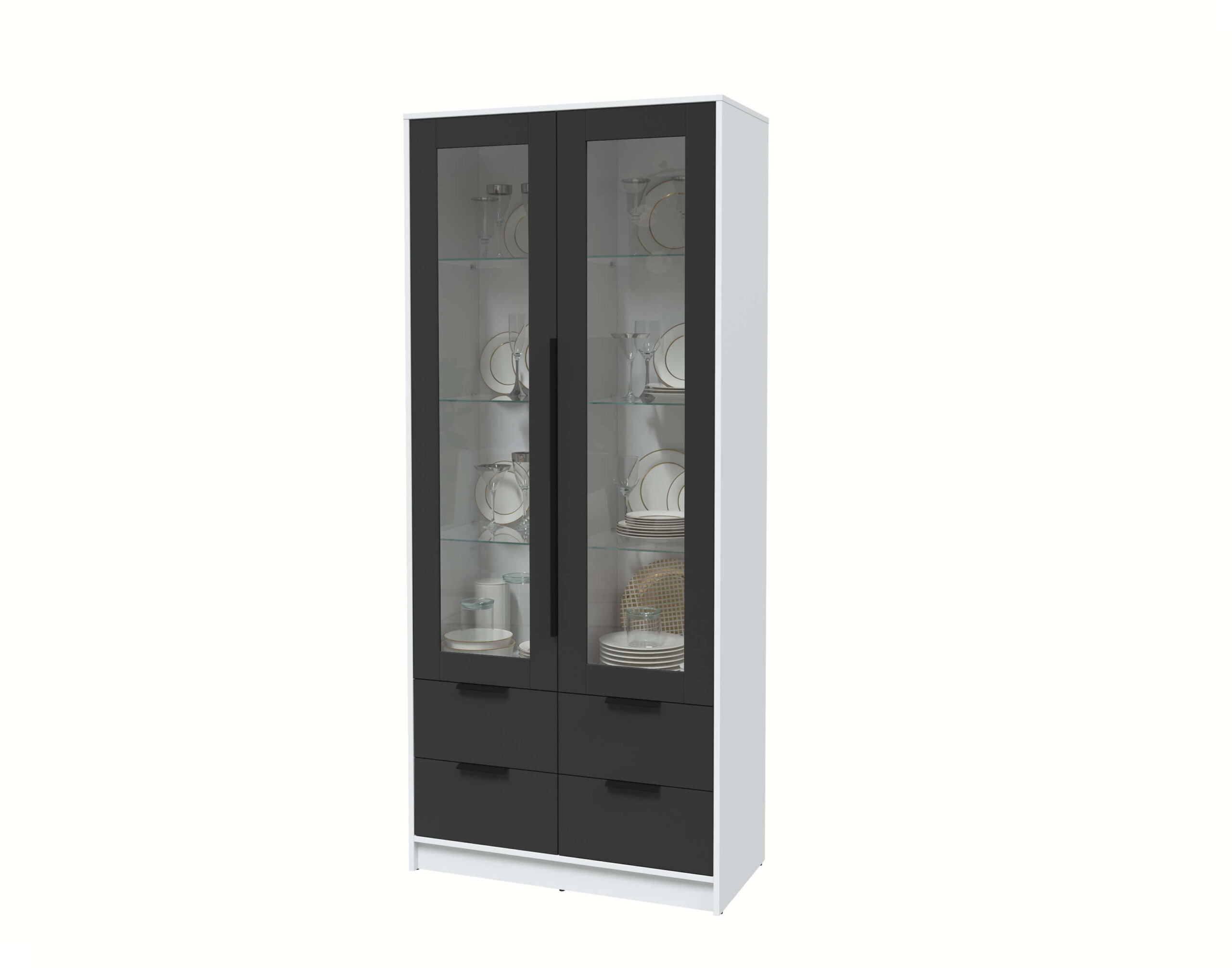 ШКАФ С ВИТРИНОЙ КТ-ШВ2 (БЕЛЫЙ ЛДСП/ АНТРАЦИТ ЛДСП) Ш918 В2128 Г451