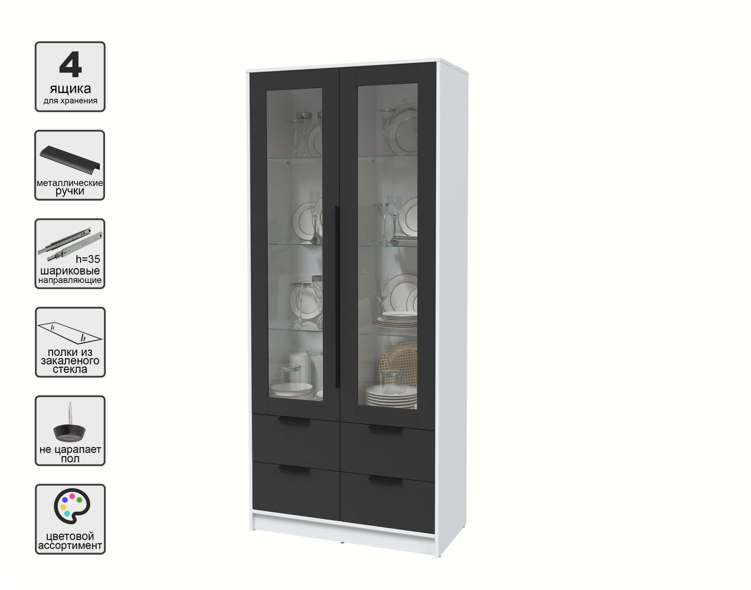 ШКАФ С ВИТРИНОЙ КТ-ШВ2 (БЕЛЫЙ ЛДСП/ АНТРАЦИТ ЛДСП) Ш918 В2128 Г451 - Yuta.by