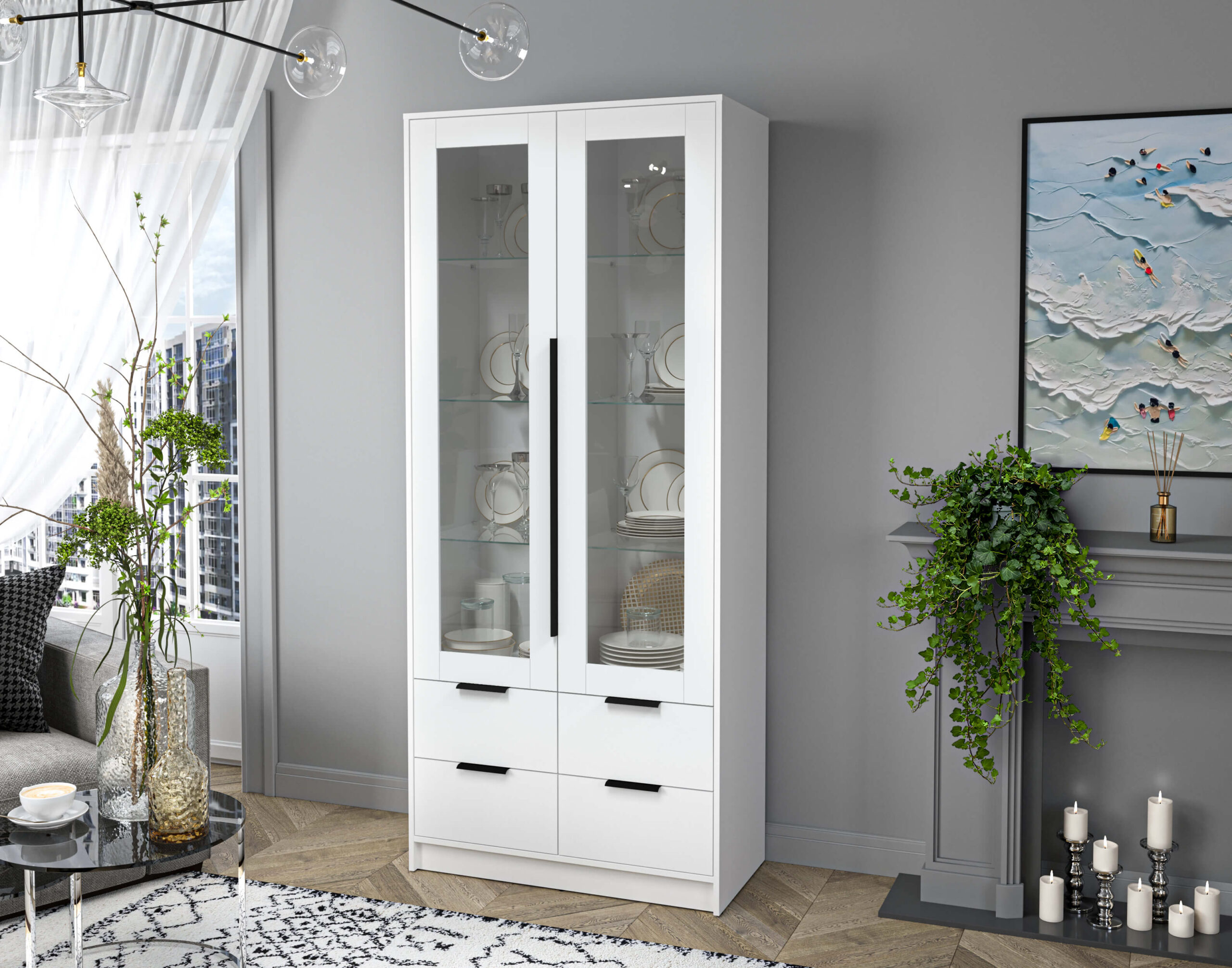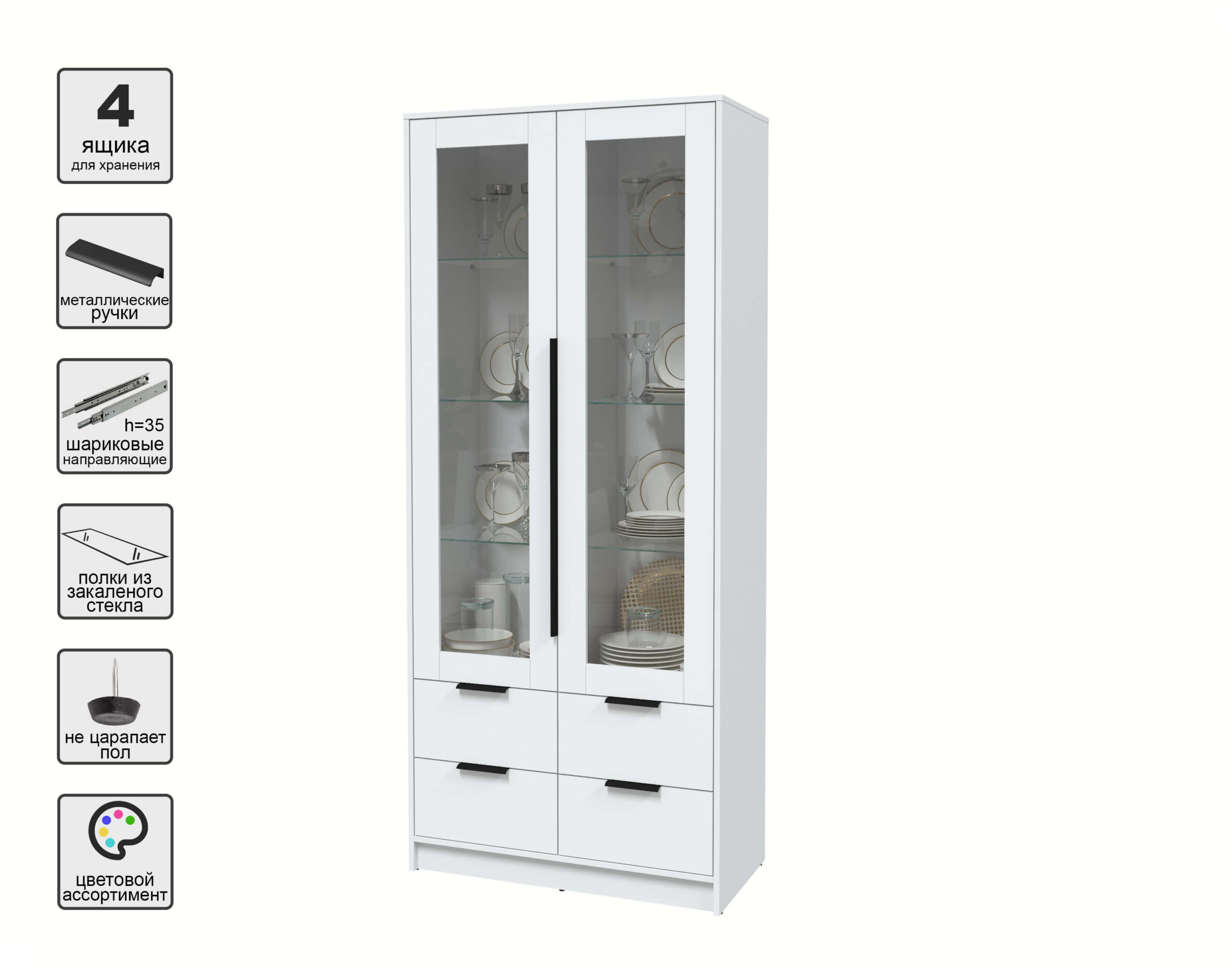 ШКАФ С ВИТРИНОЙ КТ-ШВ2 (БЕЛЫЙ ЛДСП/ БЕЛЫЙ ПЛАТИНУМ ЛДСП) Ш918 В2128 Г451 - Yuta.by